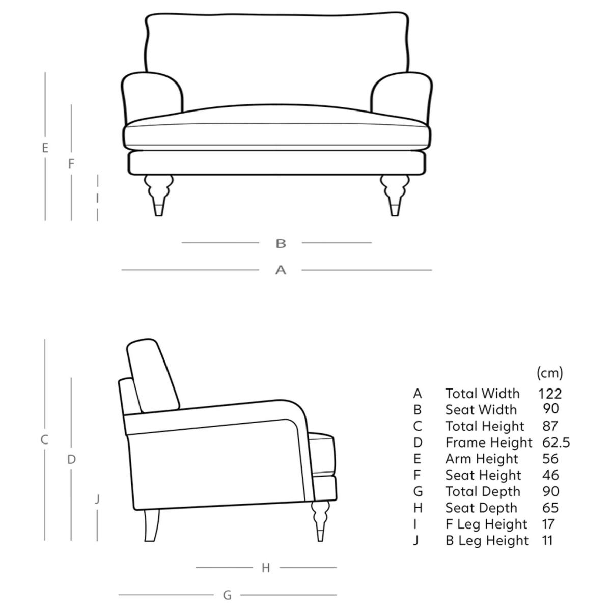 The Charlbury is so elegantly classic – an English roll arm sofa with pleating on the arms, hook cushions, brass leg caps and charm. In absolute abundance. Deep and shapely sink-into cushions on a base that's crisp and slender, the best blend of comfort and refinement. Want more? Have a look at designs from Swoon's Charlbury Classic sofa range. See the collection of ottomans, armchairs, love seats, 2, 3 and 4-seater couches, chaise and corner sofas. Don't forget to order a free fabric swatch. Part of the Charlbury collection. Material: Made from 100% polyester. Wooden feet. Removable seat with foam and fibre filling. Dimensions: Size H87, W122, D90cm. Floor to seat height: 46cm. Depth of seat: 65cm. Height of seat back: 41cm. Width of seating area between arms: 90cm. Height of arm rest: 56cm. Weight: 35kg. Packaged dimensions: Package size H60, W127, D92cm. General information: Professional clean only. Plump cushions regularly to maintain shape. Self-assembly. Maximum individual user weight 180kg. Manufacturer's 10 year frame guarantee.