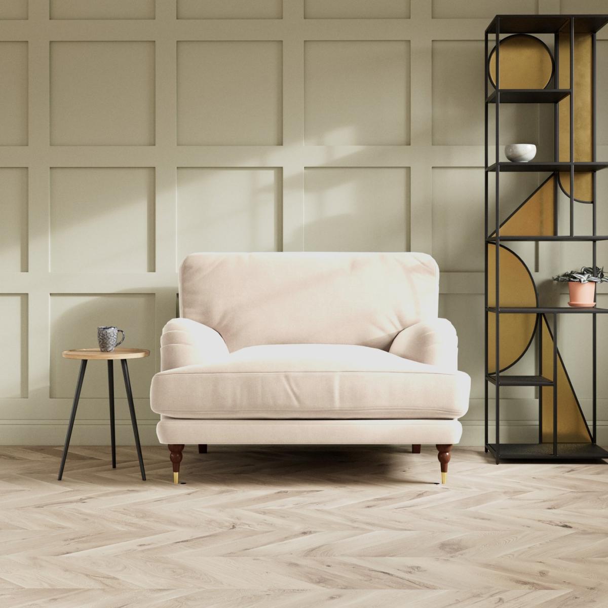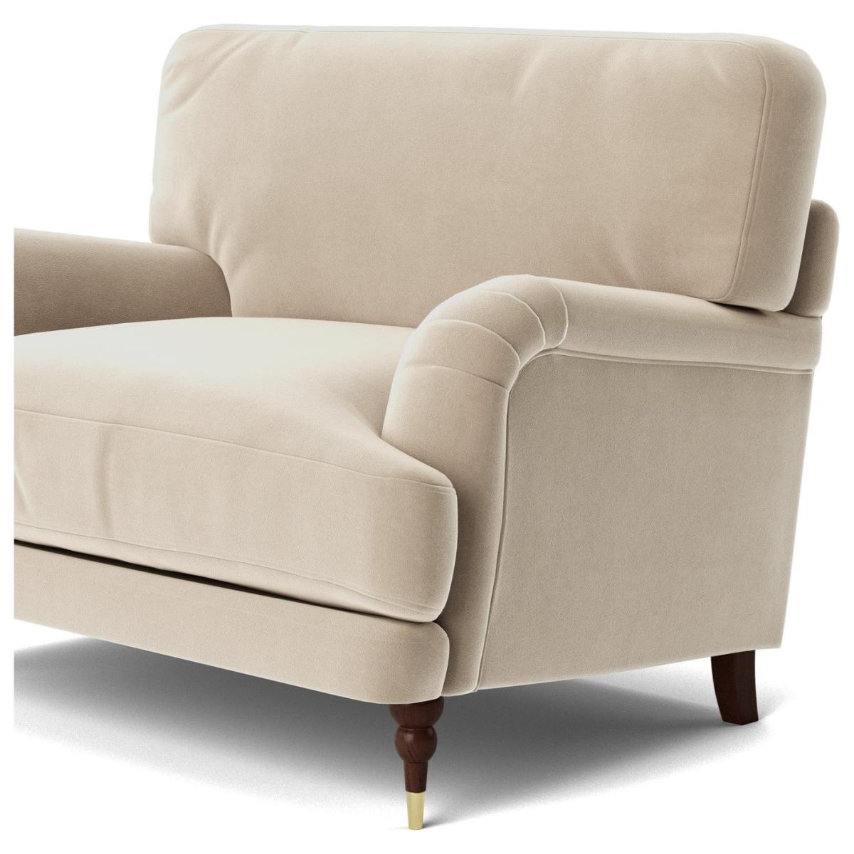 The Charlbury is so elegantly classic – an English roll arm sofa with pleating on the arms, hook cushions, brass leg caps and charm. In absolute abundance. Deep and shapely sink-into cushions on a base that's crisp and slender, the best blend of comfort and refinement. Want more? Have a look at designs from Swoon's Charlbury Classic sofa range. See the collection of ottomans, armchairs, love seats, 2, 3 and 4-seater couches, chaise and corner sofas. Don't forget to order a free fabric swatch. Part of the Charlbury collection. Material: Made from 100% polyester. Wooden feet. Removable seat with foam and fibre filling. Dimensions: Size H87, W122, D90cm. Floor to seat height: 46cm. Depth of seat: 65cm. Height of seat back: 41cm. Width of seating area between arms: 90cm. Height of arm rest: 56cm. Weight: 35kg. Packaged dimensions: Package size H60, W127, D92cm. General information: Professional clean only. Plump cushions regularly to maintain shape. Self-assembly. Maximum individual user weight 180kg. Manufacturer's 10 year frame guarantee.
