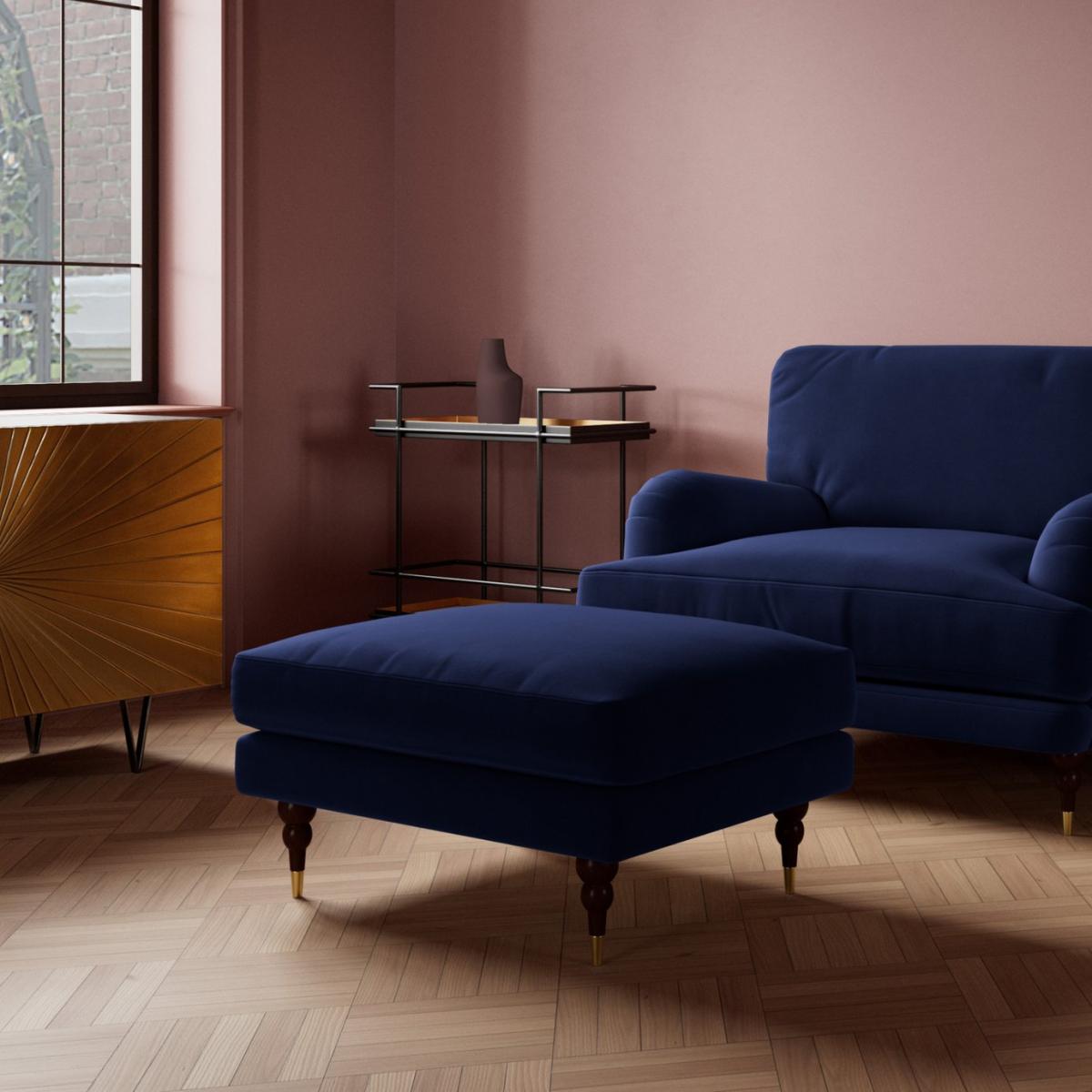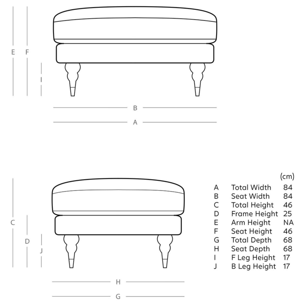 You thought you weren't one for tradition. So did we, until we designed (and met) the Charlbury. It's so elegantly classic - a British-designed foot rest with a defined and deep cushion, brass leg caps and charm. Want more? Have a look at designs from Swoon's Charlbury Classic sofa range. See the collection of ottomans, armchairs, love seats, 2, 3 and 4-seater couches, chaise and corner sofas. Don't forget to order a free fabric swatch. Part of the Charlbury collection. Material: Made from 100% polyester. Wooden feet. Fixed cushion(s) with foam and fibre filling. Dimensions: Size H46, W84, D68cm. Weight: 10kg. General information: Professional clean only. Minimal assembly. Maximum individual user weight: 90kg. Manufacturer's 10 year frame guarantee. Packaged dimensions: Package size H35, W86, D70cm.