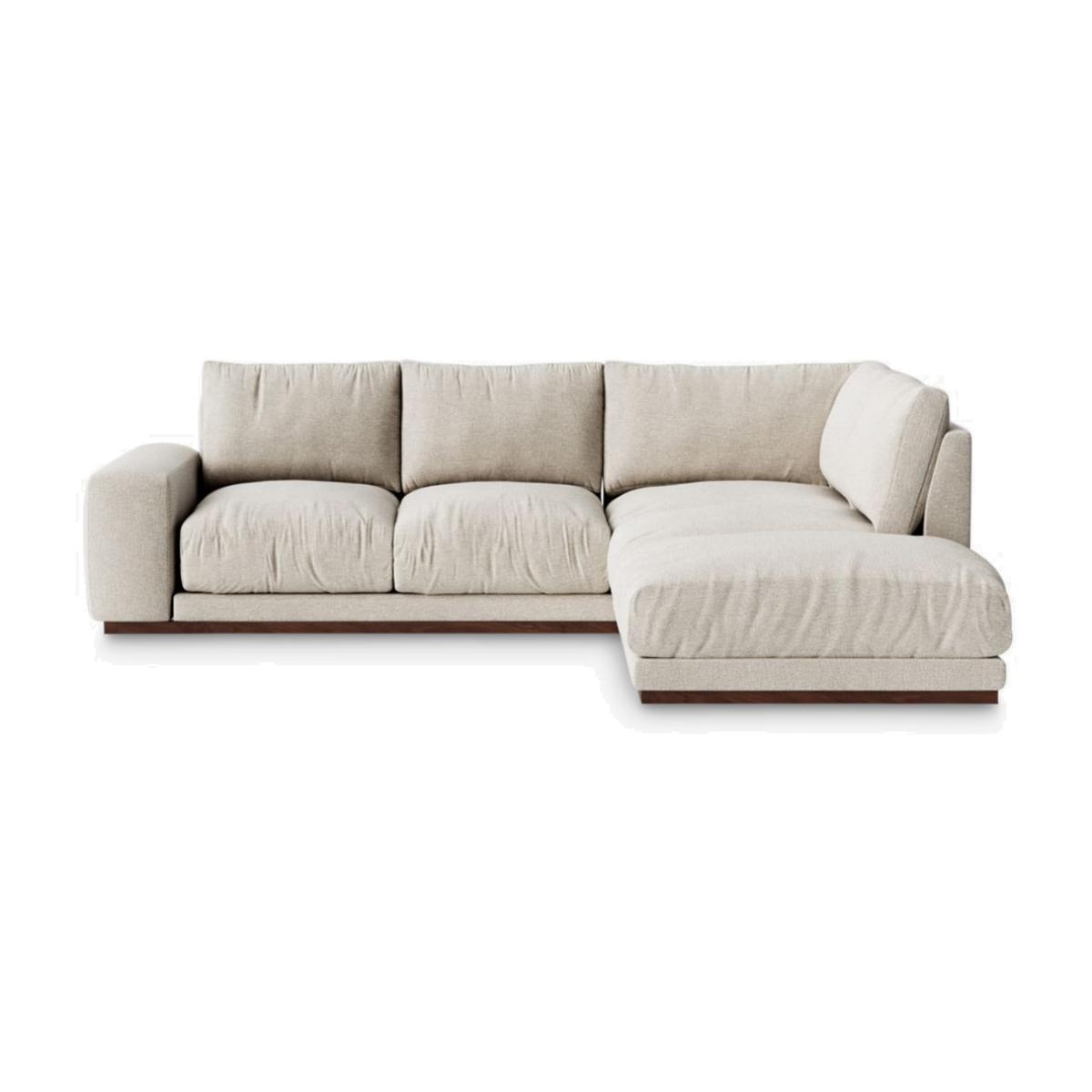 I love this sofa for its versatile and contemporary design, making it a great focal point in both modern and eclectic interiors. Its spacious seating and neutral tone mean it pairs well with a variety of colour schemes and accessories, from textured throws to statement cushions. The corner layout maximises seating in open-plan living spaces, providing a cosy yet spacious feel. For styling tips, consider contrasting the soft upholstery with a textured rug or sleek coffee table to create visual interest. Also, adding a few patterned cushions can introduce colour without overpowering the calm, minimalist aesthetic. Overall, this sofa is both practical and stylish, offering comfort and a clean silhouette that adapts easily to different interior styles.