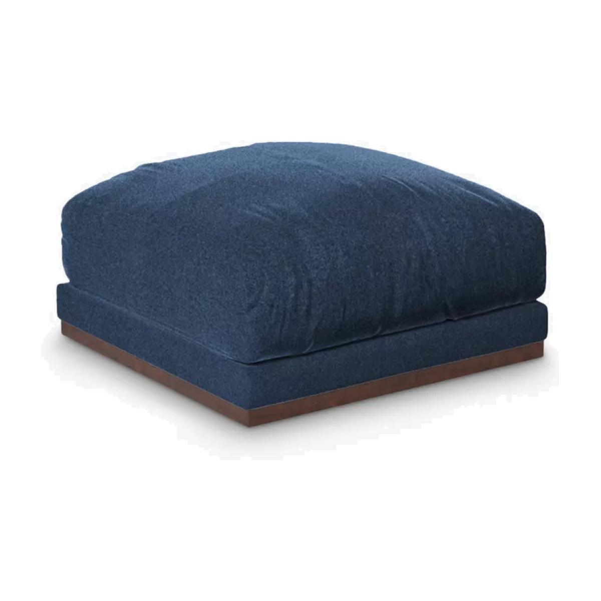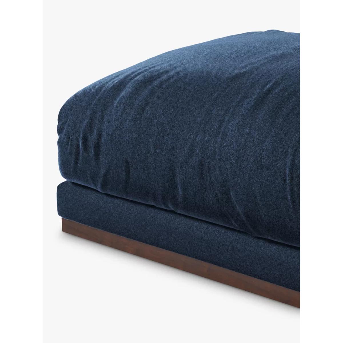 I love this footstool for its versatile and contemporary look, making it a great addition to both modern and eclectic interiors. The deep blue upholstery adds richness without overpowering the space, while its low-profile design offers flexibility - use it as a footrest, extra seating, or even a side table with a tray. To style it effectively, pair it with neutral or contrasting textured fabrics for an inviting feel, and consider placing it near a sofa or lounge chair to create a casual yet polished corner. Practical tips include using a removable cover for ease of cleaning and combining it with other soft furnishings in similar tones or materials to create a cohesive look.