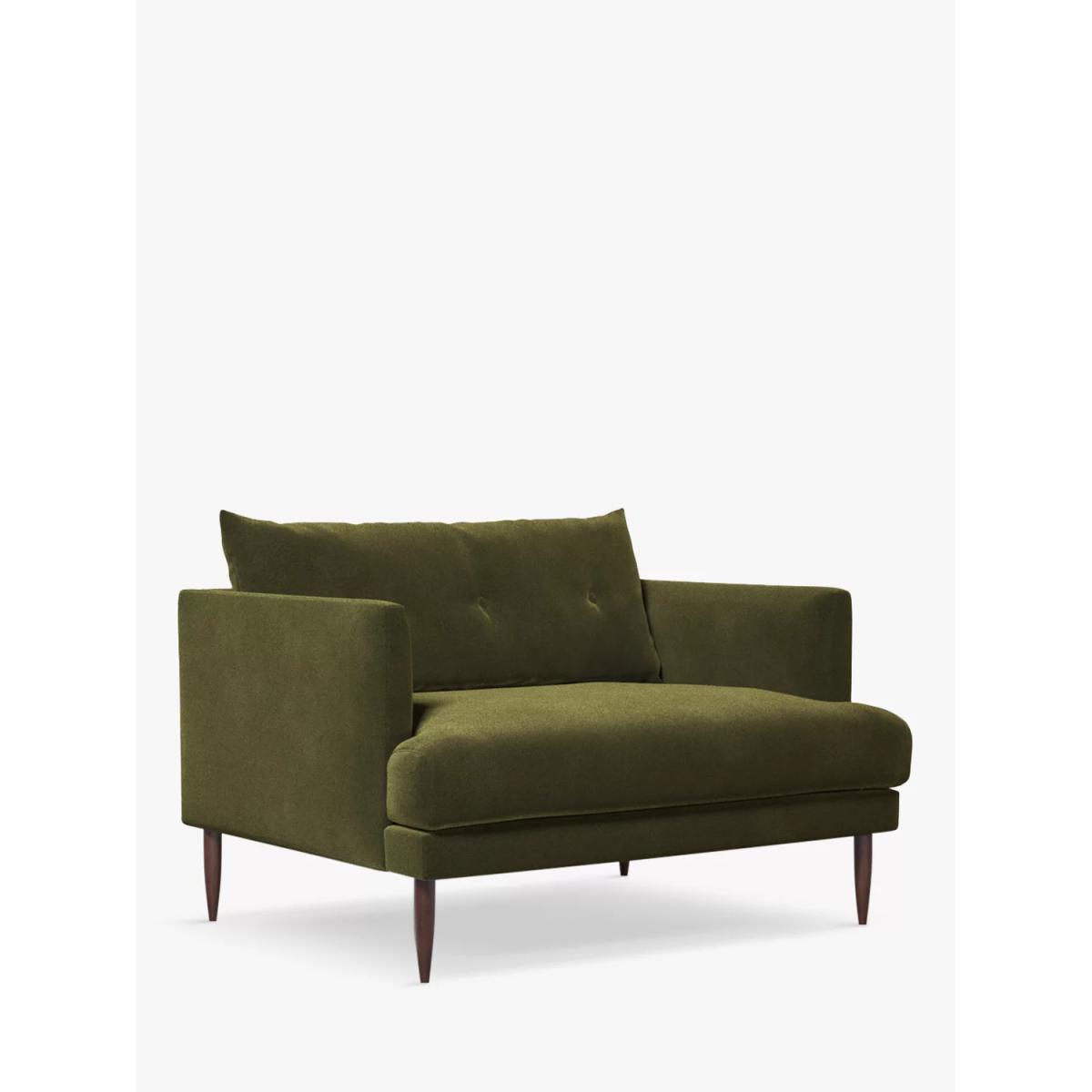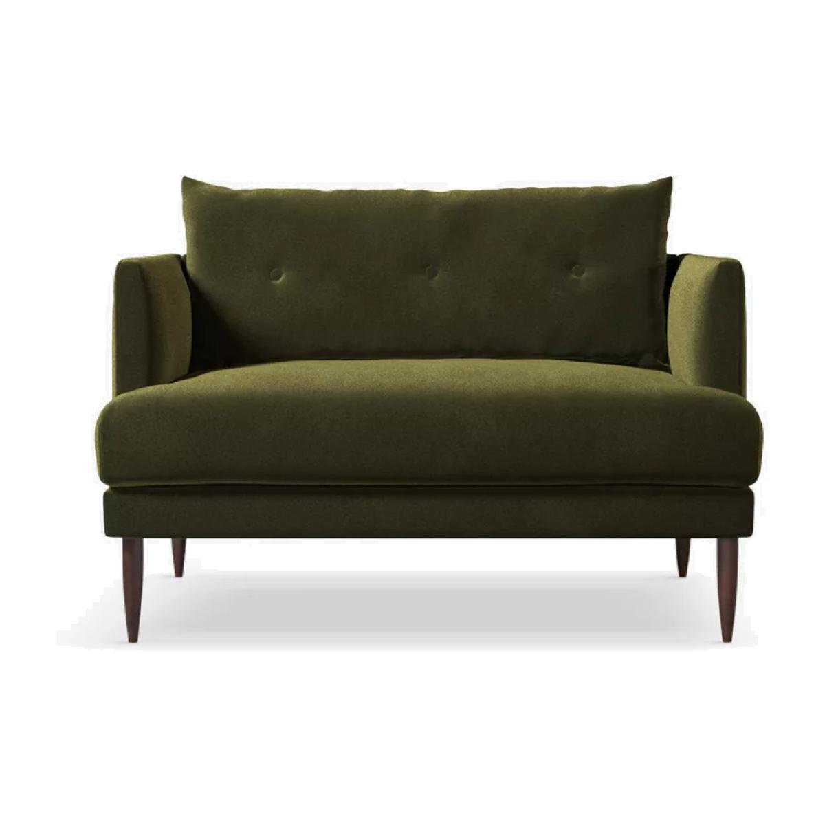 I love this Swoon Kalmar Loveseat for its compact footprint and versatile design, making it ideal for both smaller spaces and cosy corners in larger rooms. Its dark legs provide a contemporary touch that anchors the piece well in modern, Scandinavian, or mid-century inspired interiors. Pair it with textured cushions or a patterned throw to add personality, or keep the colour palette minimal for a sleek, understated look. Practical styling tips include placing it against a light wall to make the deep green tone stand out, and balancing the height with a gallery wall or low-height shelving nearby. It works particularly well in living rooms, bedrooms, or even a chic home office, where it can serve as a statement piece without overwhelming the space.