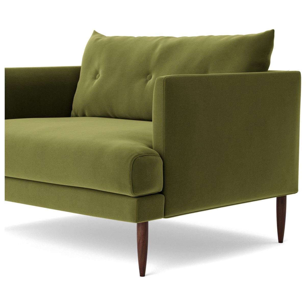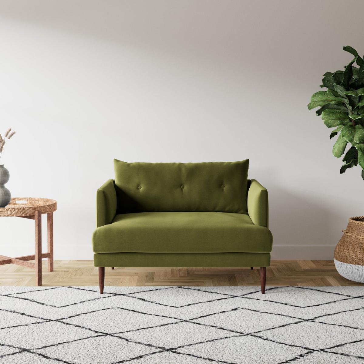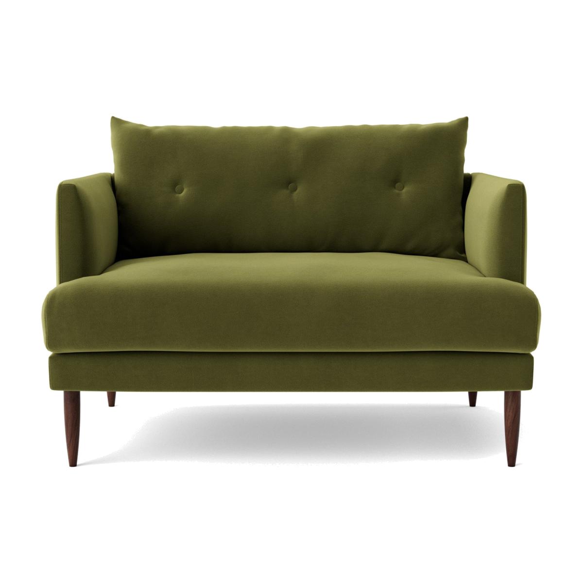 The Kalmar's elegant frame is enjoying all the attention right now. The buttoned back and deep seat have earned this Scandi love seat more than a few home-obsessed fans. Prepare to relax. Want more? Have a look at designs from Swoon's Kalmar Scandi sofa range. See the collection of ottomans, armchairs, 2 and 3-seater couches and chaise corner sofas. Don't forget to order a free fabric swatch. Part of the Kalmar collection. Material: Made from 100% polyester. Wooden feet. Fixed seat with foam and fibre filling. Removable cushion(s) with foam and fibre filling. Dimensions: Size H75, W114, D87cm. Floor to seat height: 38cm. Depth of seat: 62cm. Height of seat back: 37cm. Width of seating area between arms: 89cm. Height of arm rest: 63cm. Weight: 30kg. Packaged dimensions: Package size H68, W119, D92cm. General information: Professional clean only. Plump cushions regularly to maintain shape. Self-assembly. Maximum individual user weight 180kg. Manufacturer's 1 year guarantee.