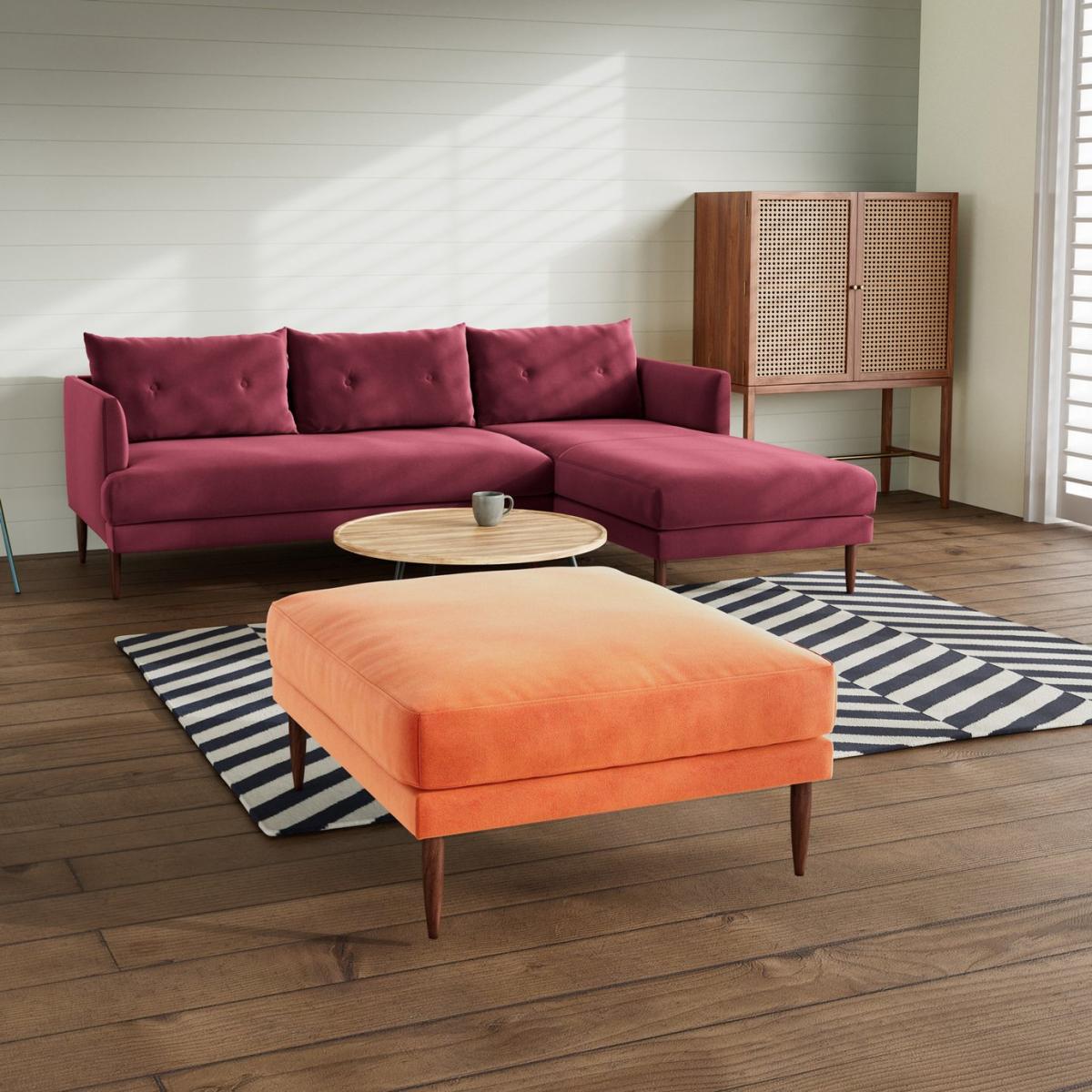 Swoon Kalmar Velvet Ottoman Footstool - Burnt Orange