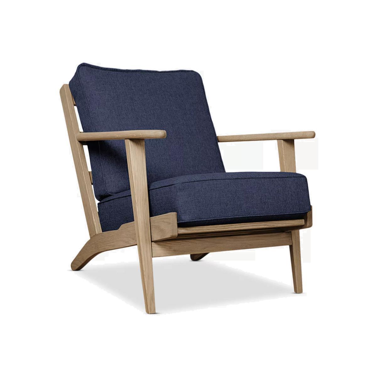 I love this armchair because of its versatile design and understated elegance. It works particularly well in mid-century modern or Scandinavian-inspired interiors, thanks to its natural timber frame and simple silhouette. The navy fabric adds a subtle pop of colour without overwhelming the space, making it ideal as an accent piece. For styling tips, consider pairing it with a cosy throw and a small side table for reading nooks, or positioning it in a corner to balance larger furniture. Its light legs also help it sit seamlessly into both bright and neutral schemes, adding a touch of sophistication without dominating the room.
