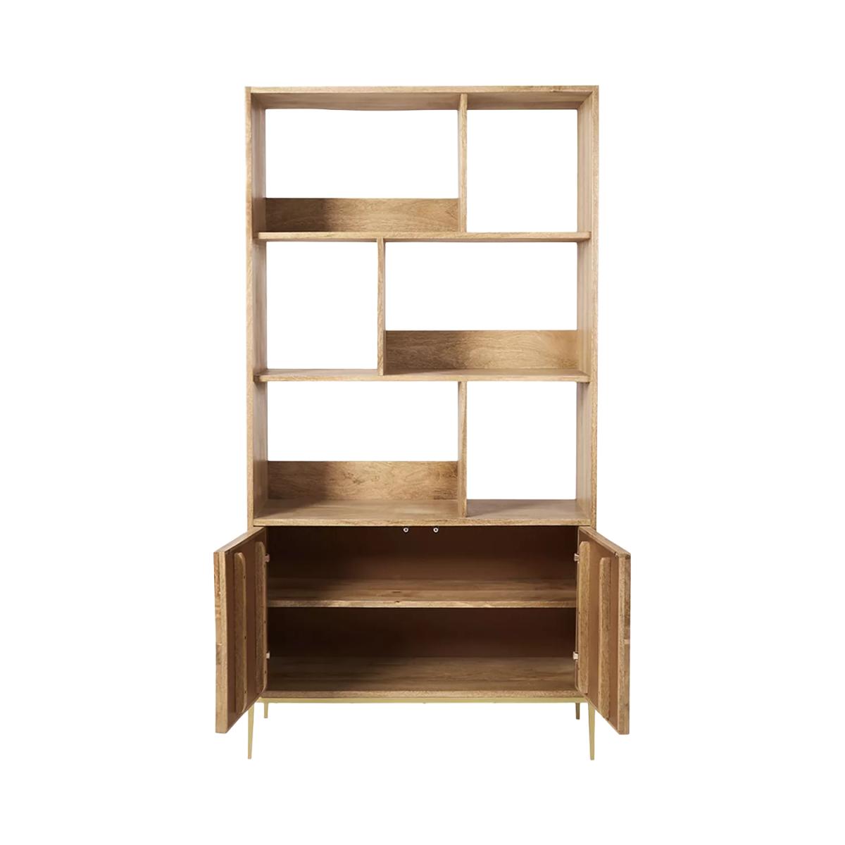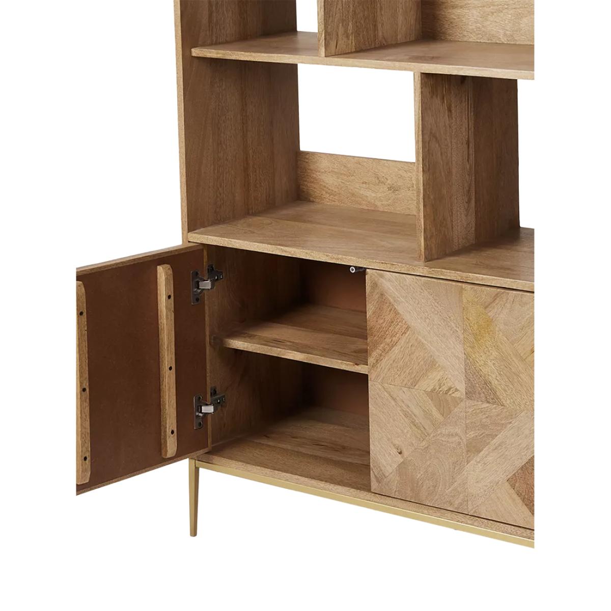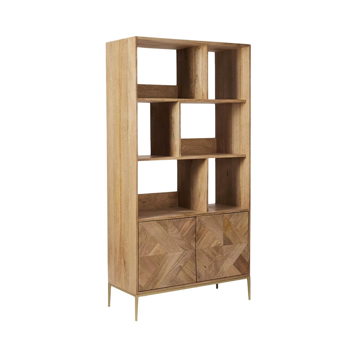 The natural oak-stained mango wood grain on this contemporary Norrebro bookshelf falls head first, into Swoon's "must-have materials" list for the mesmerising graphic patterning on its facade. Created with oscillating tiles of timber, the intriguing parquet zigzag is reflected by a subtle chamfer on its outer frame. Designs are made with natural materials and are handcrafted one at a time. There may be natural variations in colour and texture that are not product flaws, they make your design truly one-of-a-kind. Want to see it first? You may want to see and get a feel for the furniture in one of our shops before ordering. We'll be able to tell you where the range you'd like to view is on display.
