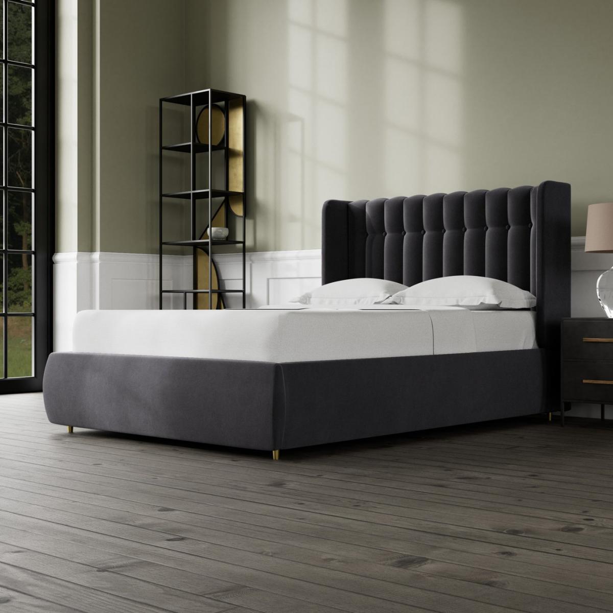Packed with character, the Kipling demands a certain level of attention. It has a perfectly padded frame, while the buttoned headboard, with its wing-like sides, oozes chic, deco class. And there's more. Lift up the end of the bed using its nifty mechanism to reveal loads of storage space underneath. Want more? Have a look at designs from Swoon's Kipling bespoke bed range. See the collection of bed frames and ottoman beds. Don't forget to order a free fabric swatch. Featuring beech frame and plywood sprung slats. Our made to order furniture service means you can choose from different options, such as fabric, size and shape to create a beautiful bespoke piece of furniture. Because this piece is designed just for you, you might notice the delivery time is a little longer than usual. Luxurious and extra durable this deep pile velvet is sensually soft to the touch and doesn't mark or crease like traditional velvets. Part of the Kipling collection. Fabric frame. Easy velvet fabric - 100 % polyester. Base with sprung wooden slats. End lift. Ottoman: end opening. Storage capacity: 840 litres. Size W150, L204, H109.5cm. Height to top of siderail 29cm. 5cm clearance between floor underside of bed. Weight 78kg. Total maximum user weight 220kg. Self-assembly - 2 people recommended. Package Dimension: Package 1 dimension H14, W196, D26cm. Package 1 weight: 31kg. Package 2 dimensions: H38, W205, D19cm. Package 2 weight: 24kg. Package 3 dimension: H11, W150, D105cm. Package 3 weight: 23kg. General information: Manufacturer's 10 year frame guarantee.