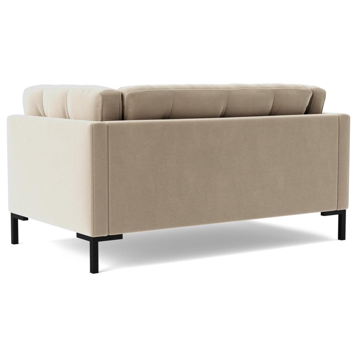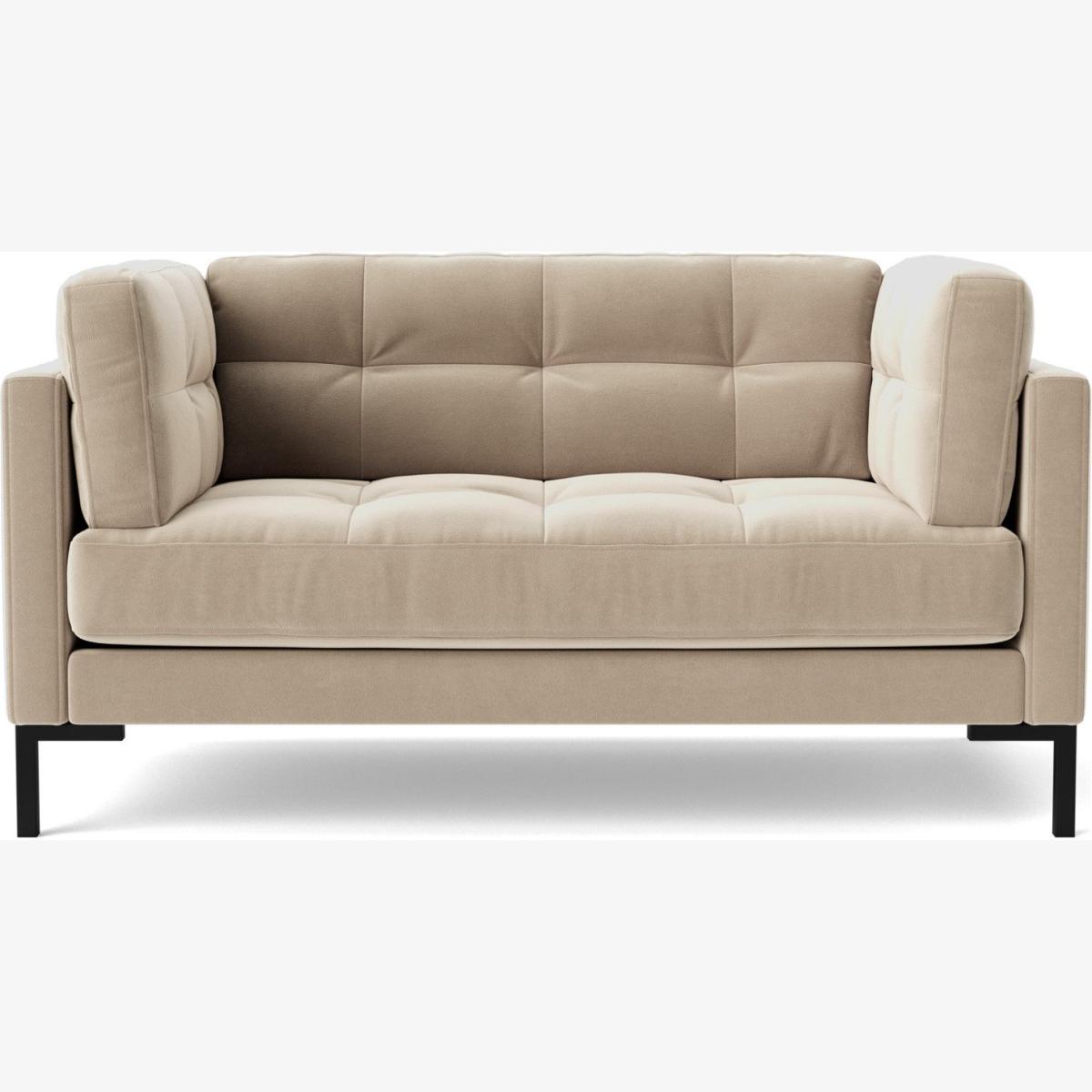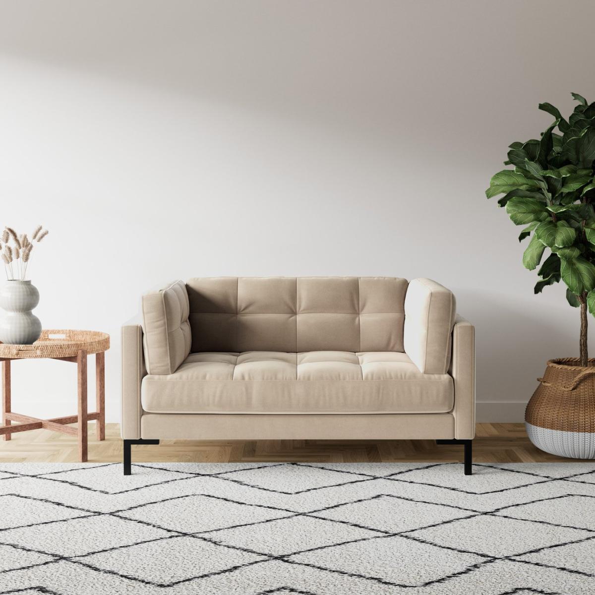 The Landau love seat is your partner in design, every fiber-topped cushion on its beautiful body is stitched by hand over a period of days. A simple, low-slung frame paves way for such mid-century detailing to really shine - while a solo seat cushion means a) no more lost phones and b) fewer crevices for runaway crumbs to escape into. Want more? Have a look at designs from Swoon's Landau Mid Century sofa range. See the collection of ottomans, armchairs, love seats, 2, 3 and 4-seater couches, chaise and corner sofas. Don't forget to order a free fabric swatch. Part of the Landau collection. Material: Made from 100% polyester. Wooden feet. Fixed seat with foam and fibre filling. Fixed cushion(s) with foam and fibre filling. Dimensions: Size H79, W133, D92cm. Floor to seat height: 42cm. Depth of seat: 63cm. Height of seat back: 37cm. Width of seating area between arms: 73cm. Height of arm rest: 63cm. Weight: 25kg. Packaged dimensions: Package size H68, W138, D97cm. General information: Professional clean only. Plump cushions regularly to maintain shape. Self-assembly. Maximum individual user weight 180kg. Manufacturer's 10 year frame guarantee.