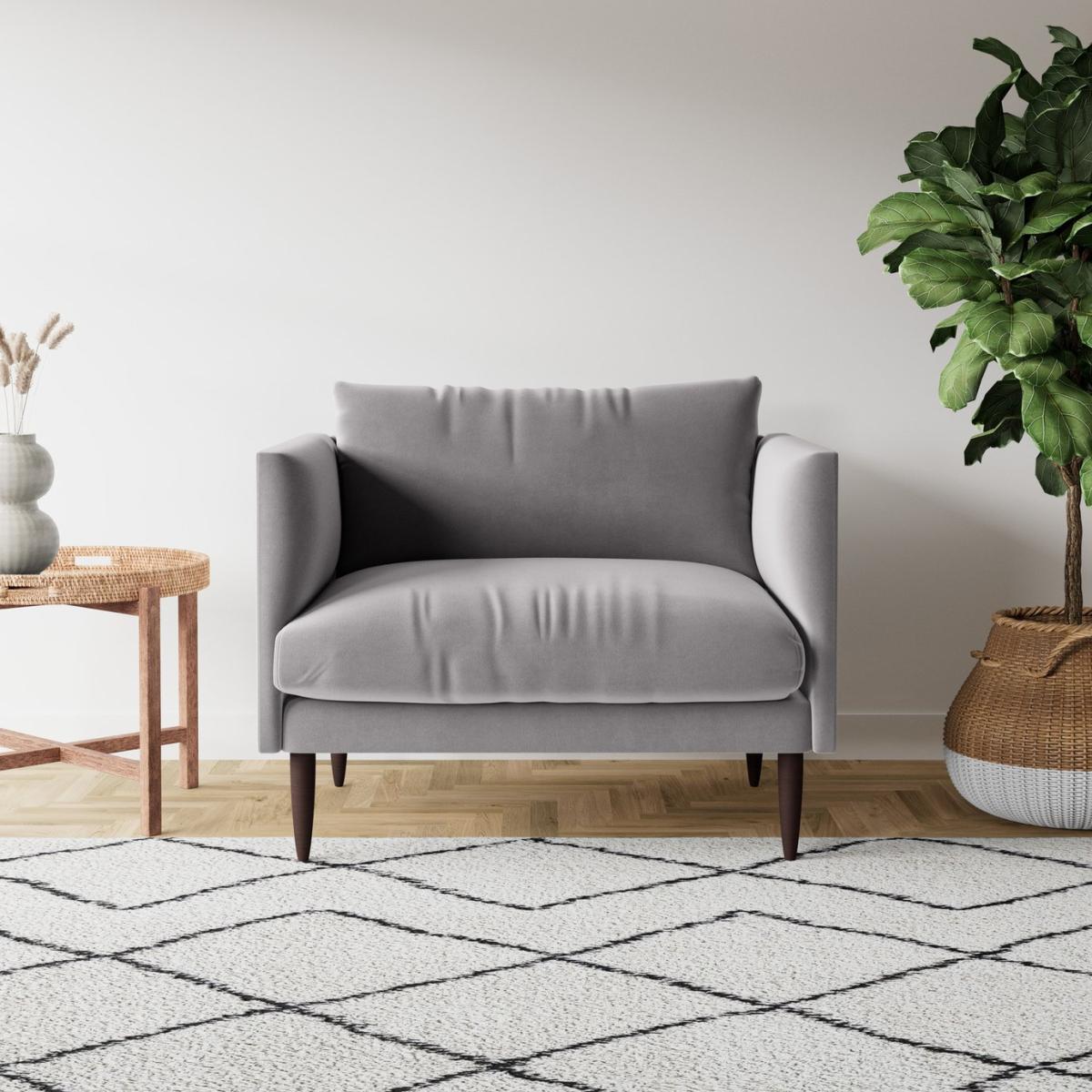 Curves. Our designs are more than just embracing them simply look at the Luna love seat. Tapered, shapely legs: tick. Cushions so plump they look round:oh yes. And our personal favourite: the ultra-refined, crescent-shaped arms - padded for your comfort and lending a lunar look to your living space. Soft angles, offset by a rectangular frame and a super slim base. There's a fine line between dreaming and designing. Want more? Have a look at designs from Swoon's Luna Scandi sofa range. See the collection of armchairs, love seats, 2 and 3-seater couches and chaise corner sofas. Don't forget to order a free fabric swatch. Part of the Luna collection. Material: Made from 100% polyester. Wooden feet. Removable seat with foam and fibre filling. Removable cushion(s) with foam and fibre filling. Dimensions: Size H78, W100, D80cm. Floor to seat height: 45cm. Depth of seat: 56cm. Height of seat back: 33cm. Width of seating area between arms: 81cm. Height of arm rest: 68cm. Weight: 38kg. Packaged dimensions: Package size H53, W104, D85cm. General information: Professional clean only. Plump cushions regularly to maintain shape. Self-assembly. Maximum individual user weight 180kg. Manufacturer's 10 year frame guarantee.