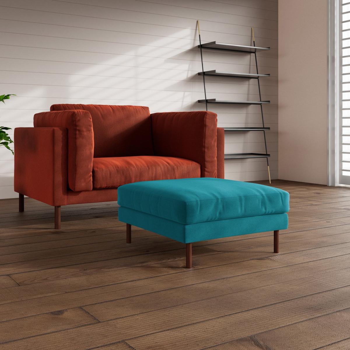 A sleek, contemporary ottoman the Munich offers a stylish place that's perfect for modern magpies to put their feet up on. Team with our Munich range or other styles for a more eclectic feel. Want more? Have a look at designs from Swoon's Munich Mid Century sofa range. See the collection of ottomans, armchairs, love seats, 2, 3 and 4-seater couches, chaise and corner sofas. Don't forget to order a free fabric swatch. Part of the Swoon Munich collection. Material: Made from 100% polyester. Wooden feet. Fixed cushion(s) with foam fibre wrap filling. Dimensions: Size H49, W67, D67cm. Weight: 8kg. General information: Professional clean only. Minimal assembly. Maximum individual user weight: 90kg. Manufacturer's 10 year frame guarantee. Packaged dimensions: Package size H47, W72, D72cm.