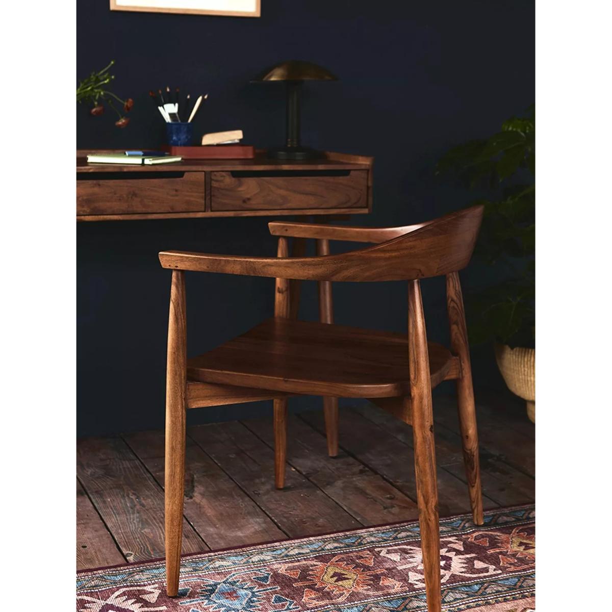Simple lines and a sleek design define the Olsen, a quintessentially mid-century design that welcomes you to take a seat with its cocooning shape. A beautiful addition to your dining table or perched in the corner of any room. Made with solid wood and handcrafted one at a time, there may be natural variations in colour and texture that are not product flaws, they make your design truly one-of-a-kind. Please ensure you check measurements and the chair fits underneath your table/desk with enough leg room as well as between the legs of any table. Want to see it first? You may want to see and get a feel for the furniture in one of our shops before ordering. We'll be able to tell you where the range you'd like to view is on display.