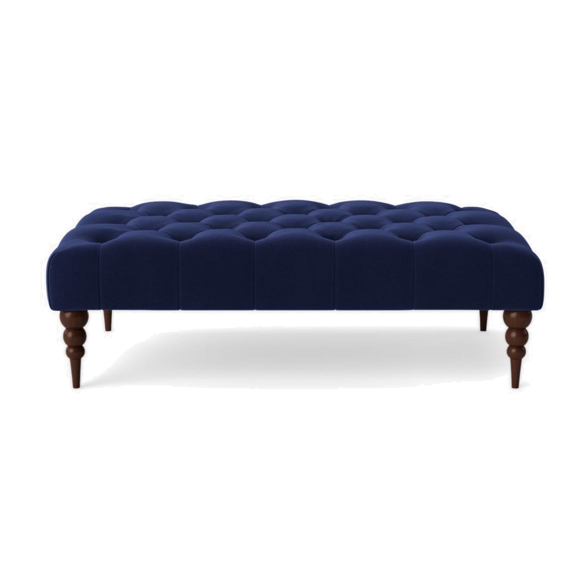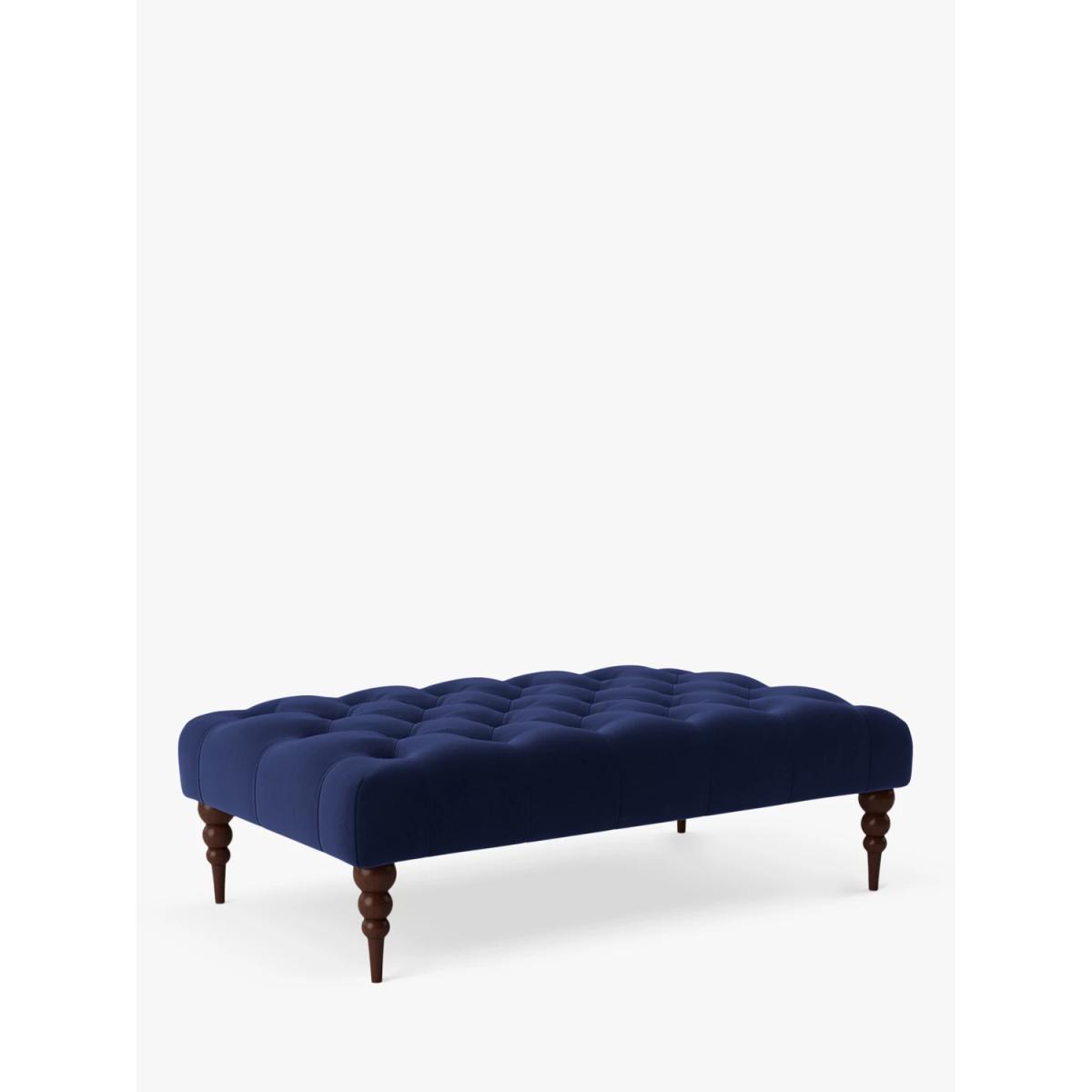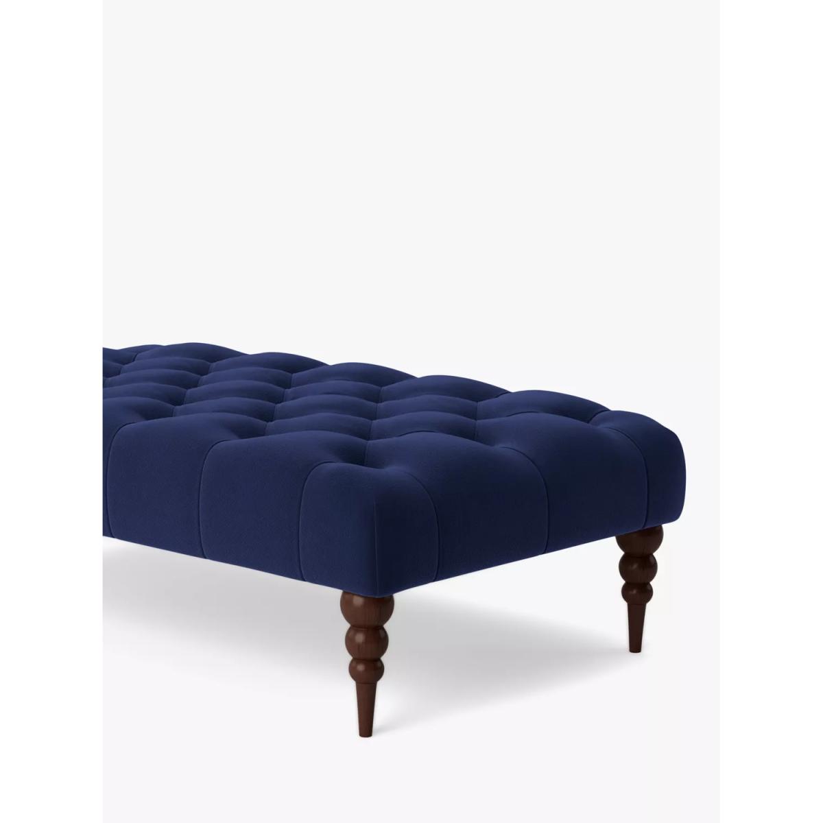 I love this little footstool for its versatility and timeless style. It works particularly well in interiors that combine classic elegance with a relaxed feel, such as traditional living rooms or eclectic spaces. Its tufted navy upholstery adds depth and a touch of sophistication, making it an ideal accent piece. Practical styling tips include placing it near a sofa or armchair for added comfort, or using it as a stepping stone to access high shelves. It also pairs nicely with both patterned and monochrome schemes, bringing a rich pop of colour while remaining elegant. Its compact size makes it perfect for smaller spaces or as an additional seating option without overwhelming the room.