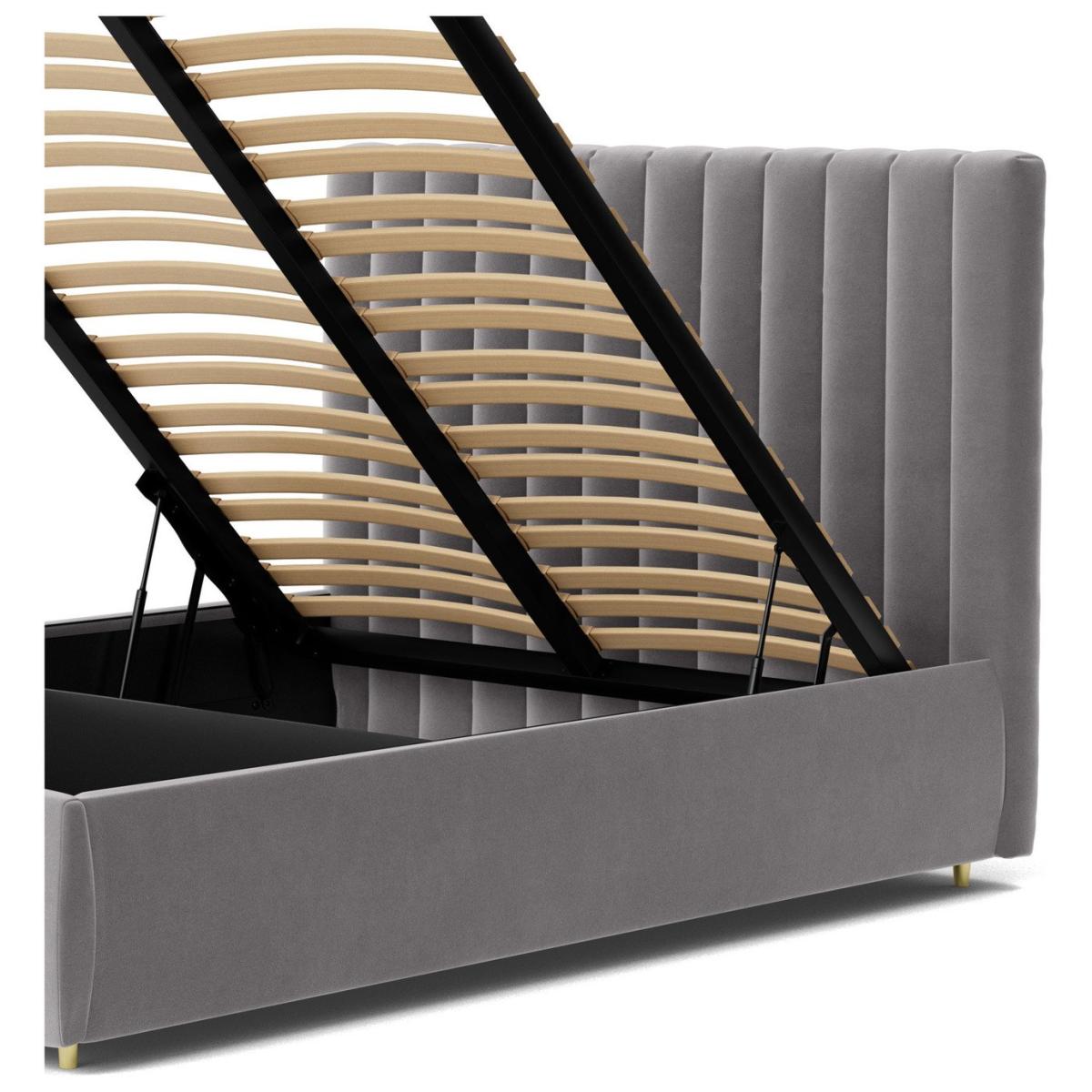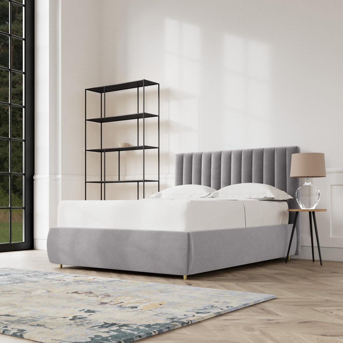 Sleek and polished, the Porlock speaks to those looking to inject some glamour into their bedrooms. It has an elegant, padded frame and a pleated headboard that oozes chic, deco class. And there's more. Lift up the end of the bed using its nifty mechanism to reveal loads of storage space underneath. Want more? Have a look at designs from Swoon's Porlock bespoke bed range. See the collection of bed frames and ottoman beds. Don't forget to order a free fabric swatch. Featuring beech frame and plywood sprung slats. Our made to order furniture service means you can choose from different options, such as fabric, size and shape to create a beautiful bespoke piece of furniture. Because this piece is designed just for you, you might notice the delivery time is a little longer than usual. Luxurious and extra durable this deep pile velvet is sensually soft to the touch and doesn't mark or crease like traditional velvets. Part of the Porlock collection. Fabric frame. Easy velvet fabric - 100 % polyester. Dark wood and brass feet. Base with sprung wooden slats. End lift. Ottoman: end opening. Storage capacity: 840 litres. Size W150, L204, H109.5cm. Height to top of siderail 29cm. 5cm clearance between floor underside of bed. Weight 75kg. Total maximum user weight 220kg. Self-assembly - 2 people recommended. Package Dimension: Package 1 dimension H14, W196, D26cm. Package 1 weight: 31kg. Package 2 dimensions: H38, W205, D19cm. Package 2 weight: 24kg. Package 3 dimension: H11, W150, D105cm. Package 3 weight: 20kg. General information: Manufacturer's 10 year frame guarantee.