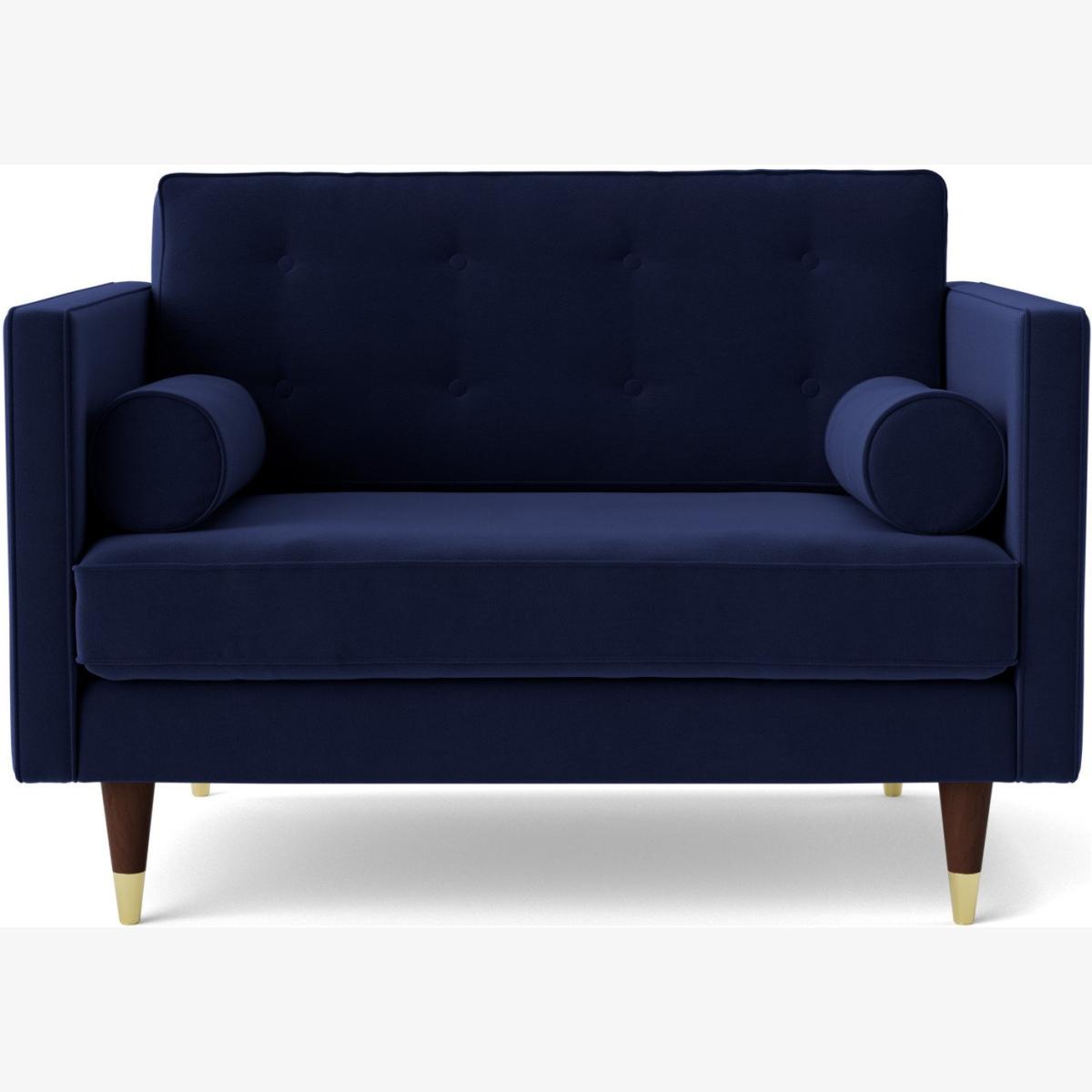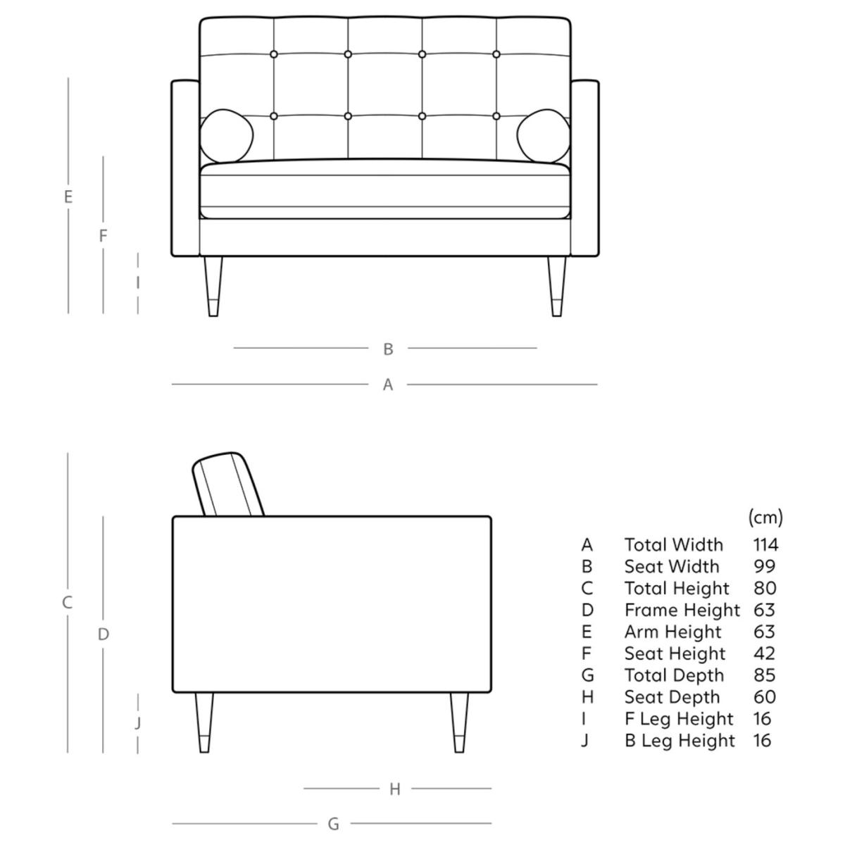 We're constantly falling back in love with the love seat and this one really sweeps us off our feet. Button-backed, brass-capped and stacked full of character - we like the Porto. Inspired by the opulent casino lounge armchairs of 1950s Las Vegas, the bolster cushions are what define this Mid-Century piece. Want more? Have a look at designs from Swoon's Porto Mid Century sofa range. See the collection of armchairs, love seats, 2, 3 and 4-seater couches, chaise and corner sofas. Don't forget to order a free fabric swatch. Part of the Porto collection. Material: Made from 100% polyester. Wooden feet. Removable seat with foam and fibre filling. Removable cushion(s) with foam and fibre filling. Dimensions: Size H80, W114, D85cm. Floor to seat height: 42cm. Depth of seat: 60cm. Height of seat back: 36cm. Width of seating area between arms: 99cm. Height of arm rest: 63cm. Weight: 32kg. Packaged dimensions: Package size H55, W119, D90cm. General information: Professional clean only. Plump cushions regularly to maintain shape. Self-assembly. Maximum individual user weight 180kg. Manufacturer's 10 year frame guarantee.