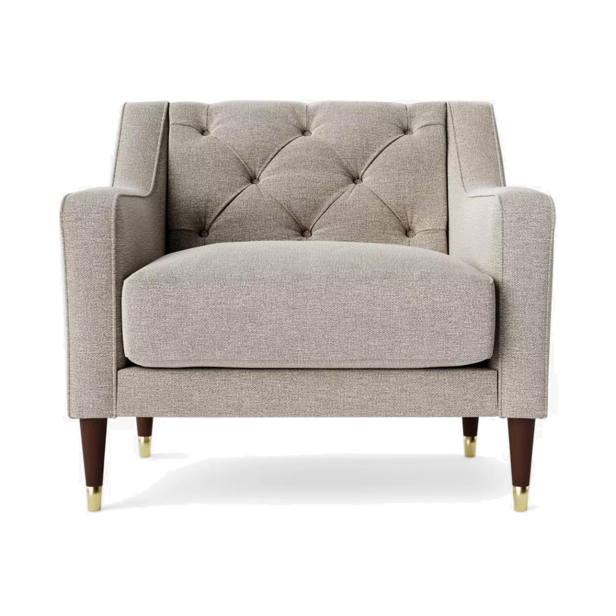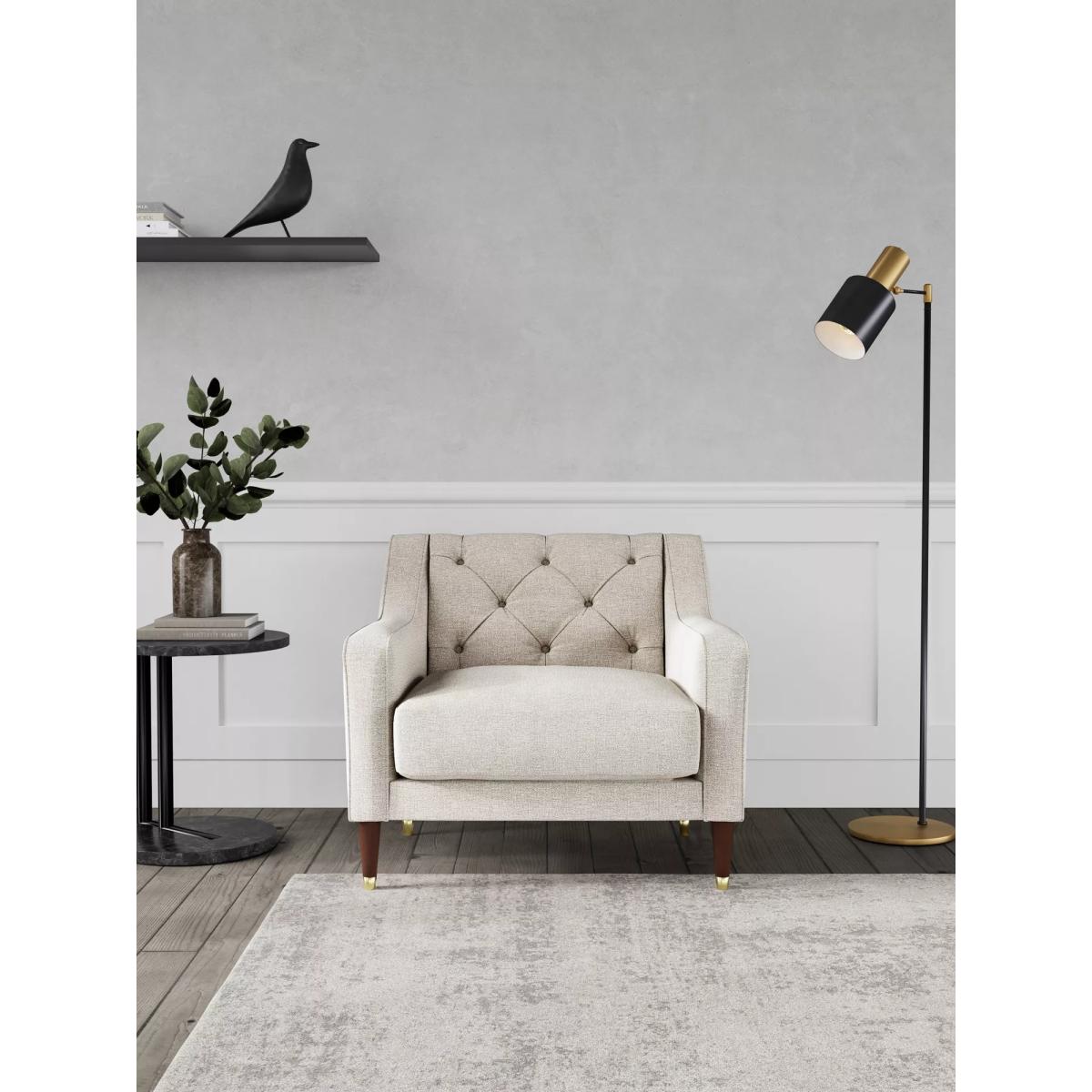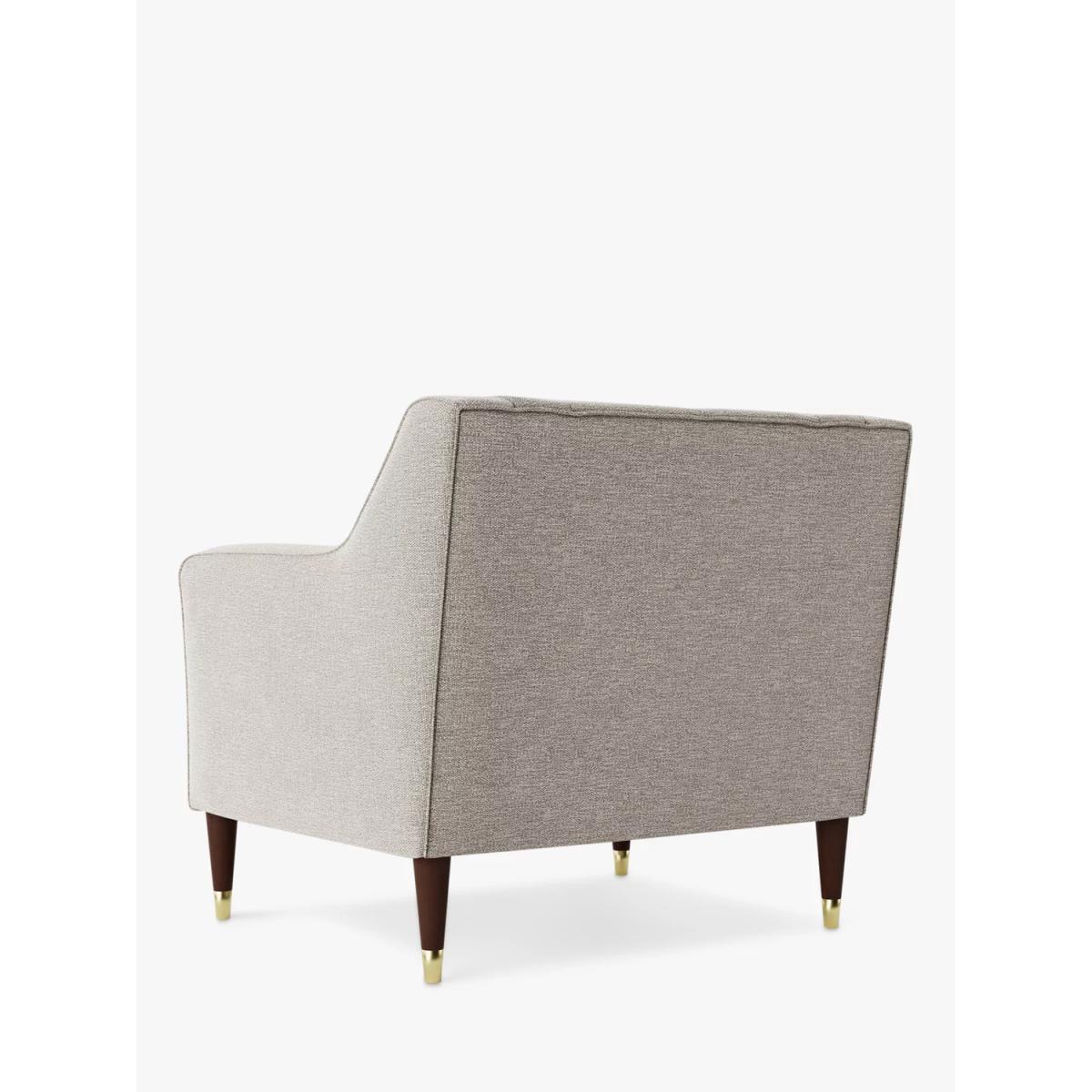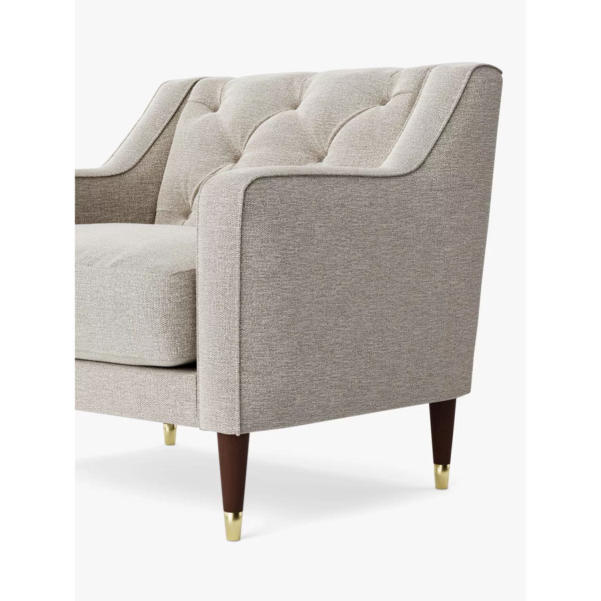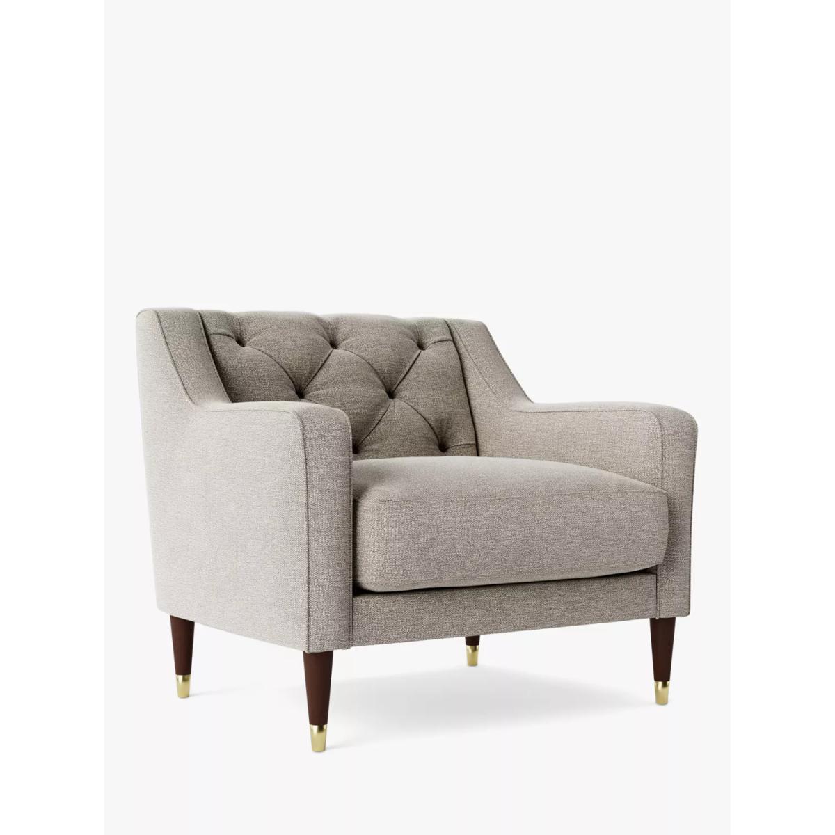 I’m a fan of the Pritchard armchair for its clean lines, deep tufting and dark-stained legs with brass ferrules - it feels both contemporary and classic. The muted upholstery works brilliantly in Scandi, mid-century or even a more pared-back urban loft, anchoring a seating area without overwhelming the space. For styling, I’d add a slim linen cushion in a contrasting tone and drape a textured throw over one arm to soften the look. Place it next to a slender side table with a sculptural lamp and a couple of art books to create a cosy reading nook that’s as practical as it is inviting.