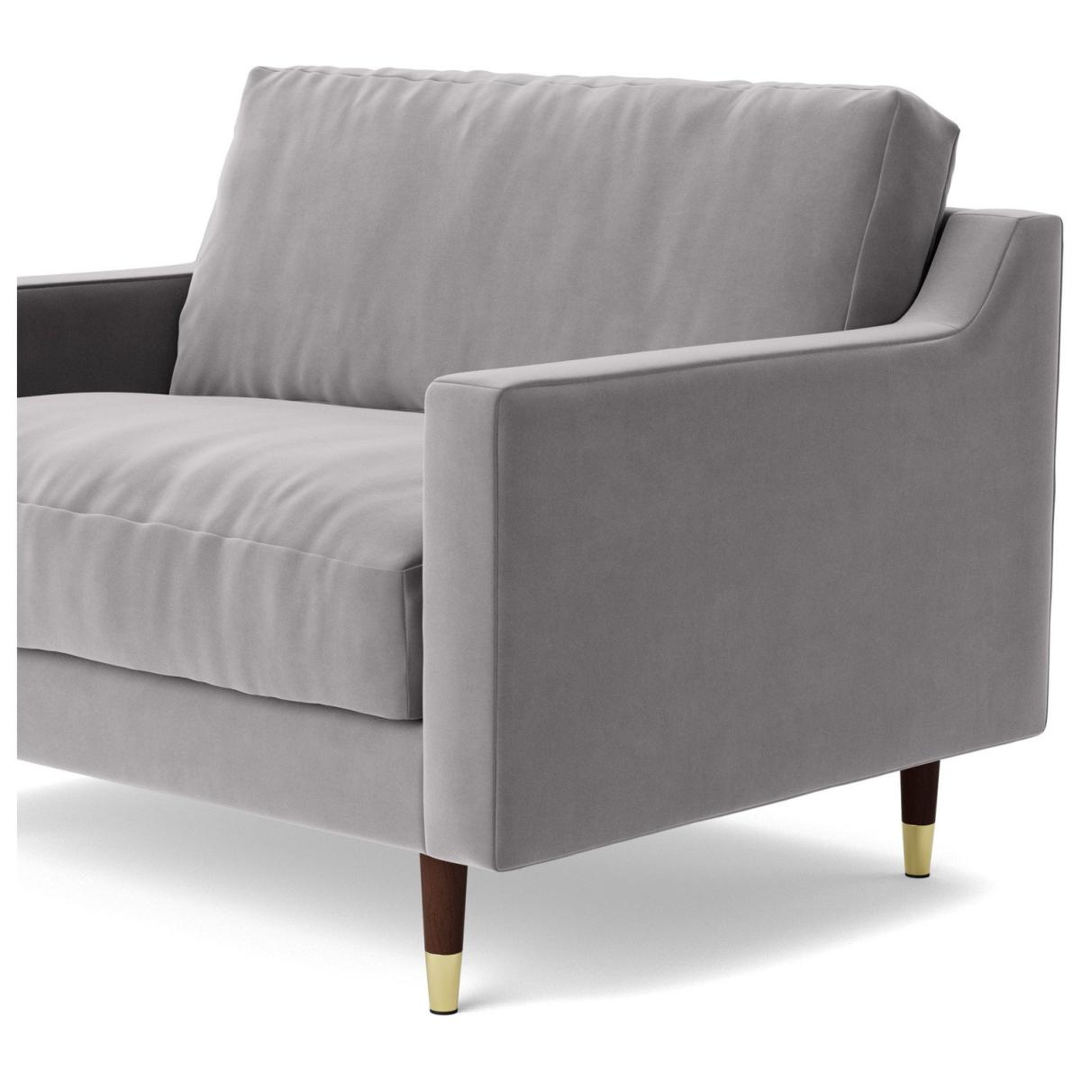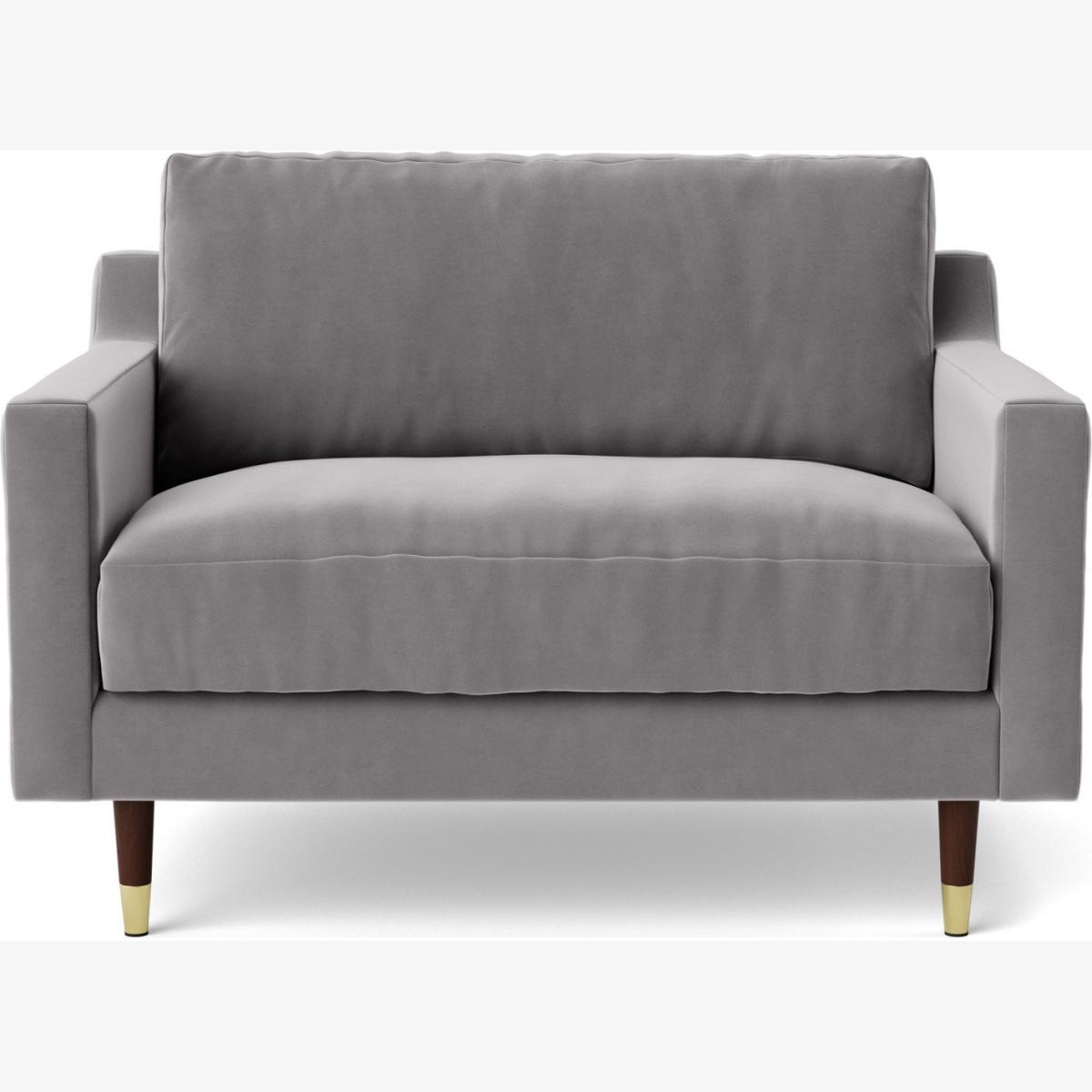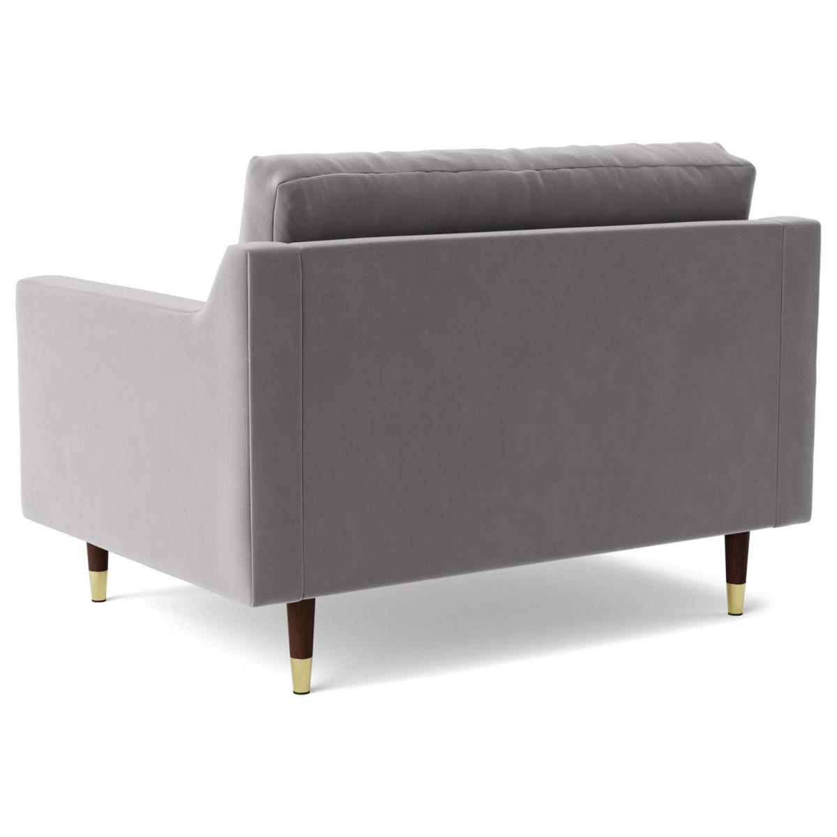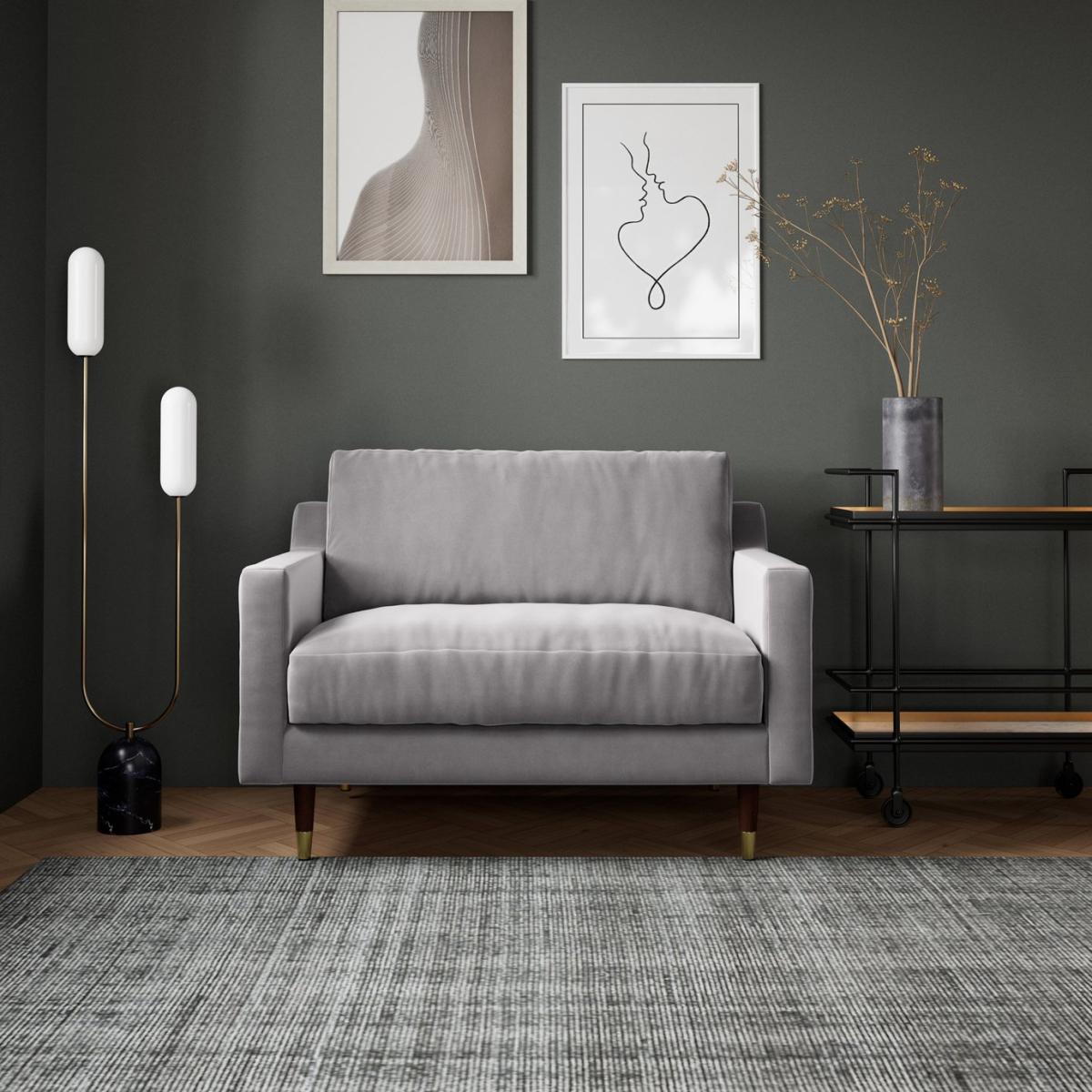 This chair marries both lazy lounging and supportive structure, with loose fibre in its back cushion for a total sink-in sesh but foam-filled seats to keep you bouncy. Our favourite part is the diagonal steps up from arm to back of arm, back of arm to cushion a gorgeous detail, not to be overlooked. It's kind of like Tetris for your downtime pleasure. Want more? Have a look at designs from Swoon's Rieti Mid Century sofa range. See the collection of ottomans, armchairs, love seats, 2, 3 and 4-seater couches, chaise and corner sofas. Don't forget to order a free fabric swatch. Part of the Rieti collection. Material: Made from 100% polyester. Wooden feet. Removable seat with foam and fibre filling. Dimensions: Size H82, W117, D87cm. Floor to seat height: 45cm. Depth of seat: 54cm. Height of seat back: 36cm. Width of seating area between arms: 97cm. Height of arm rest: 60cm. Weight: 40kg. Packaged dimensions: Package size H90, W58, D120cm. General information: Professional clean only. Plump cushions regularly to maintain shape. Self-assembly. Maximum individual user weight 180kg. Manufacturer's 10 year frame guarantee.