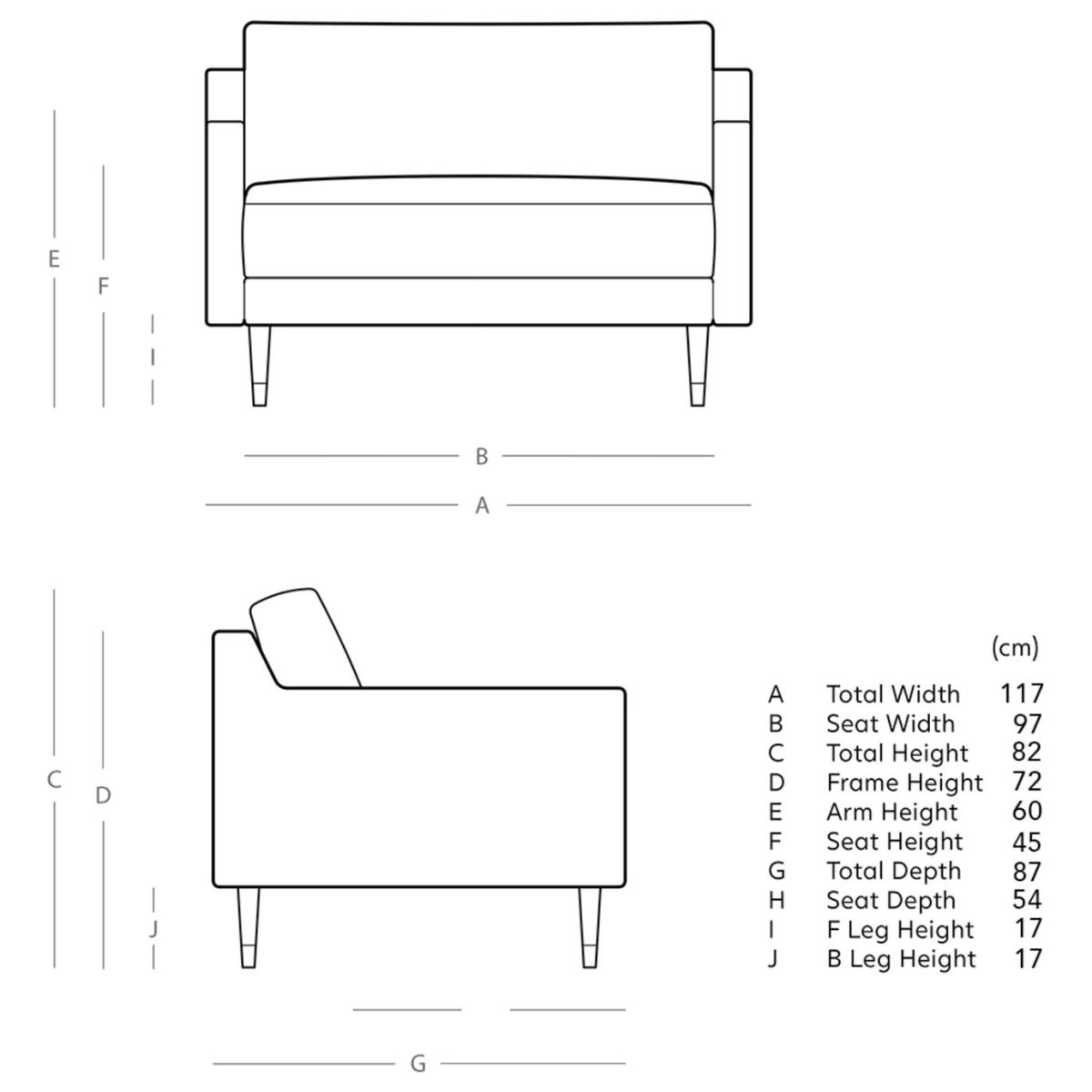 This chair marries both lazy lounging and supportive structure, with loose fibre in its back cushion for a total sink-in sesh but foam-filled seats to keep you bouncy. Our favourite part is the diagonal steps up from arm to back of arm, back of arm to cushion a gorgeous detail, not to be overlooked. It's kind of like Tetris for your downtime pleasure. Want more? Have a look at designs from Swoon's Rieti Mid Century sofa range. See the collection of ottomans, armchairs, love seats, 2, 3 and 4-seater couches, chaise and corner sofas. Don't forget to order a free fabric swatch. Part of the Rieti collection. Material: Made from 100% polyester. Wooden feet. Removable seat with foam and fibre filling. Dimensions: Size H82, W117, D87cm. Floor to seat height: 45cm. Depth of seat: 54cm. Height of seat back: 36cm. Width of seating area between arms: 97cm. Height of arm rest: 60cm. Weight: 40kg. Packaged dimensions: Package size H90, W58, D120cm. General information: Professional clean only. Plump cushions regularly to maintain shape. Self-assembly. Maximum individual user weight 180kg. Manufacturer's 10 year frame guarantee.