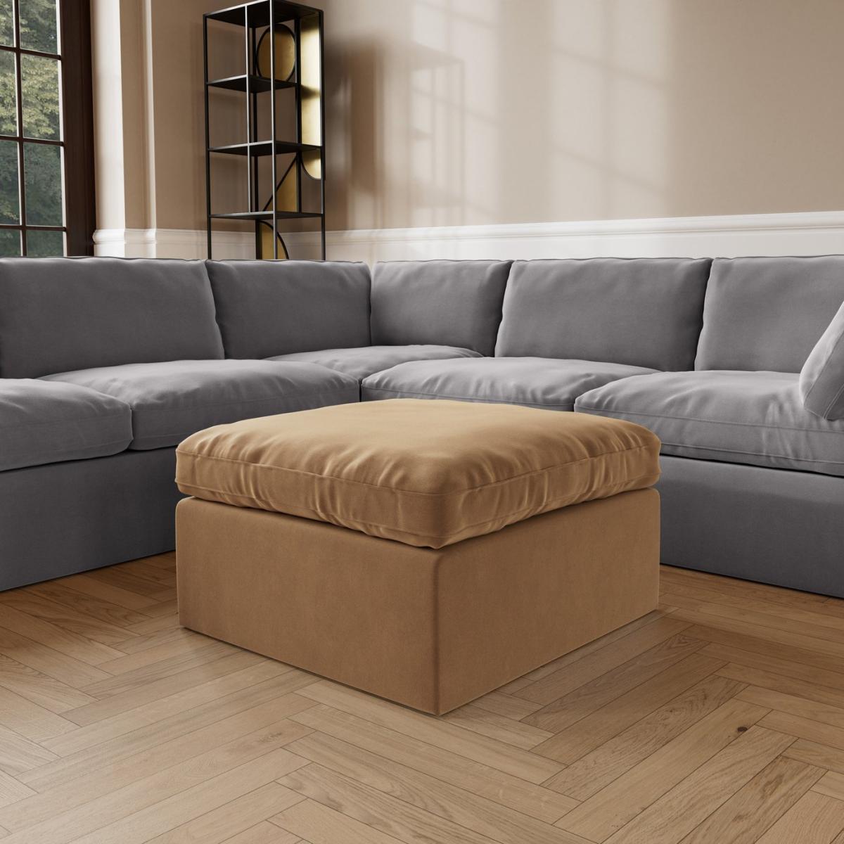 Swoon Seattle Velvet Ottoman Footstool - Biscuit