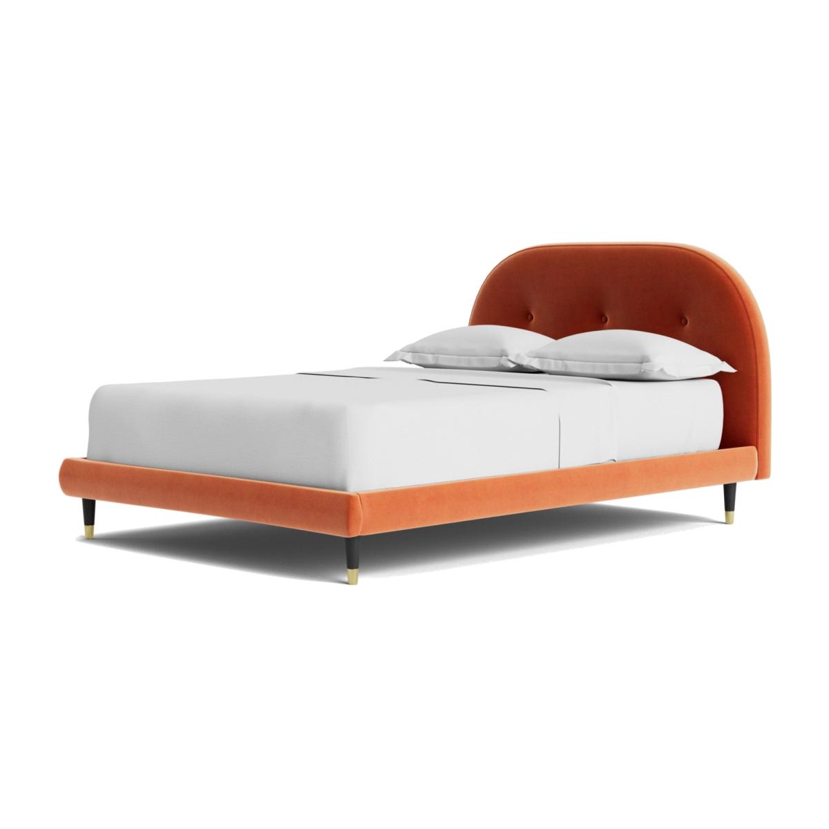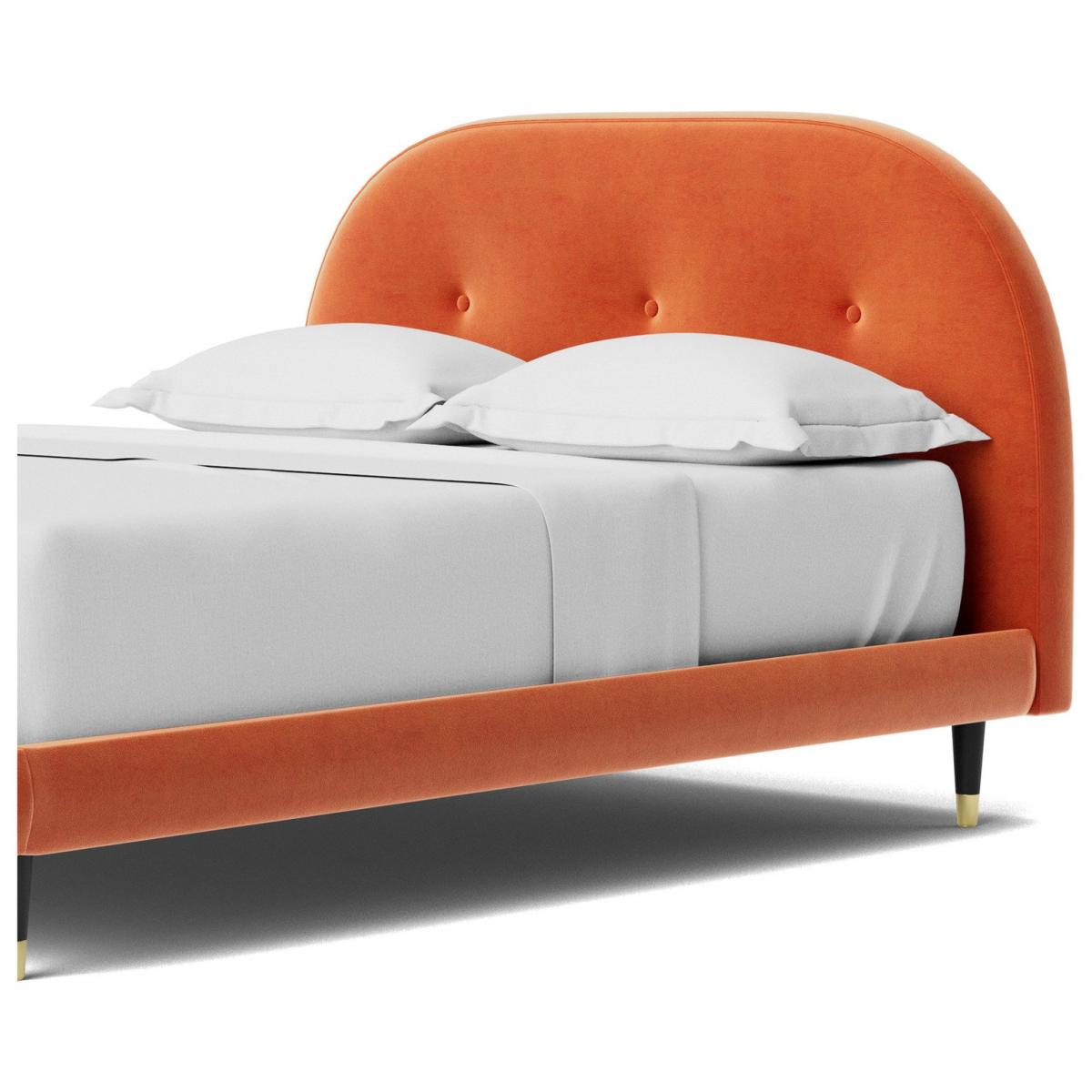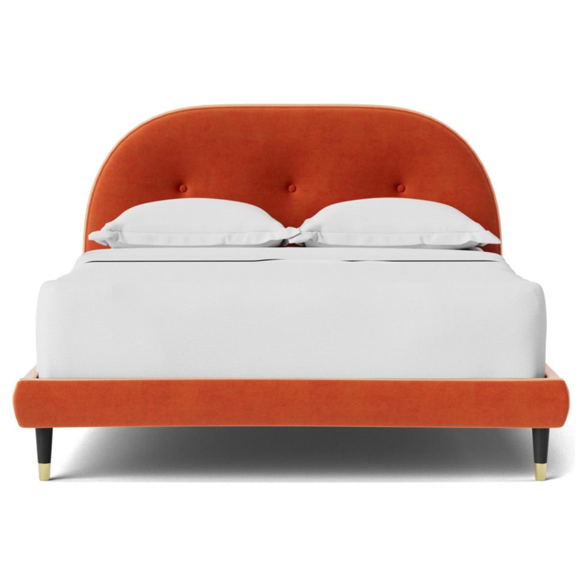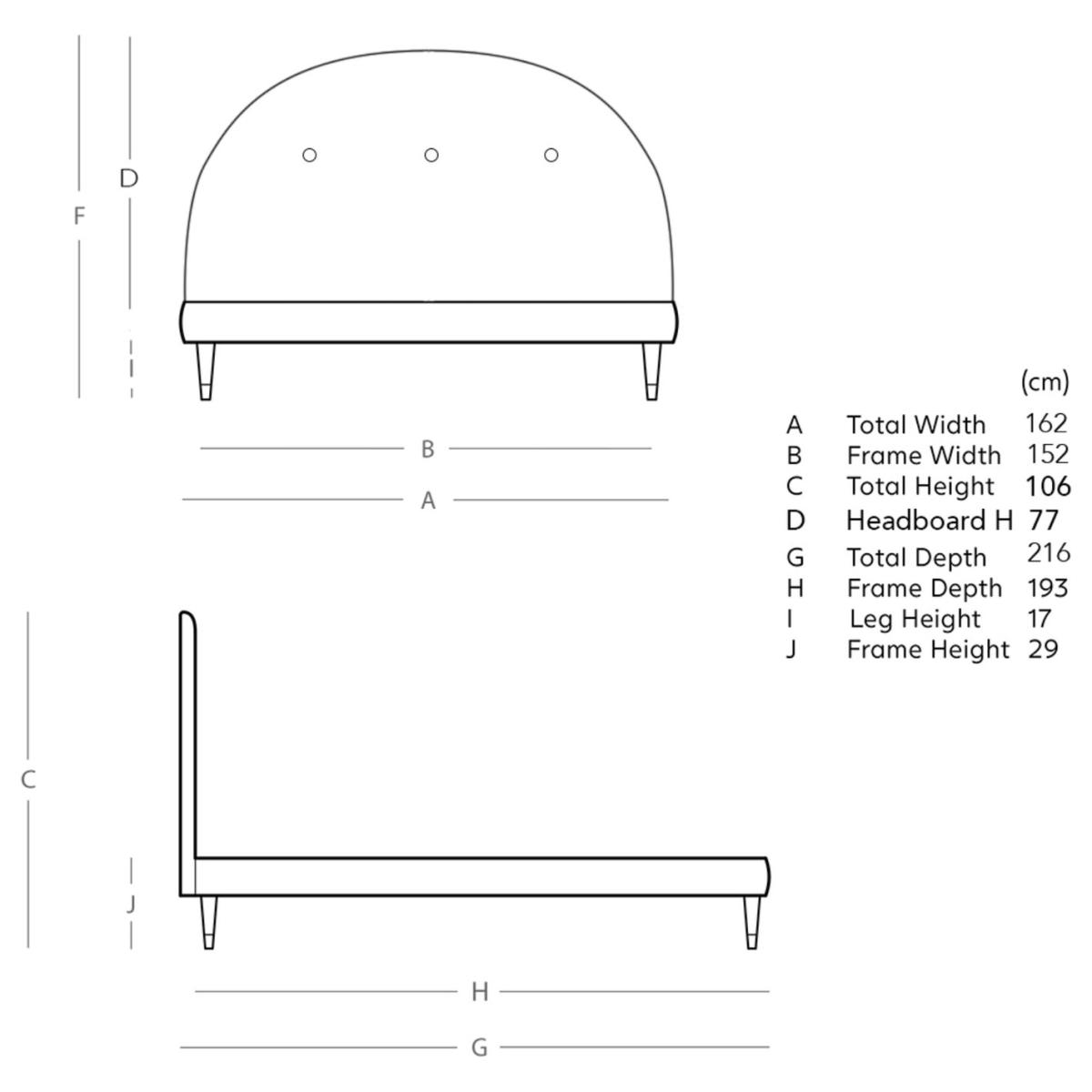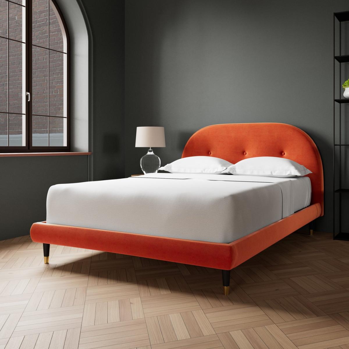 A celebration of Swoon's refined, bold and beautifully detailed look, the Southwark is inspired by the simple elegance of mid-century Scandinavian style. A slim, perfectly padded frame is further softened by the subtly rounded headboard, while the large button details add an extra layer of texture. Want more? Have a look at designs from Swoon's Southwark bespoke bed range. See the collection of bed frames and ottoman beds. Don't forget to order a free fabric swatch. Features beech plywood sprung slats. Our made to order furniture service means you can choose from different options, such as fabric, size and shape to create a beautiful bespoke piece of furniture. Because this piece is designed just for you, you might notice the delivery time is a little longer than usual. Luxurious and extra durable this deep pile velvet is sensually soft to the touch and doesn't mark or crease like traditional velvets. Part of the Southwark collection. Fabric frame. Easy velvet fabric - 100% polyester. Dark wood and brass feet. Base with sprung wooden slats. No storage. Size W162, L216, H106cm. Height to top of siderail 29cm. 17cm clearance between floor and underside of bed. Weight 61.5kg. Total maximum user weight 220kg. Self-assembly - 2 people recommended. Package Dimensions: Package 1 dimensions: H11, W162, D90cm. Package 1 weight: 21.5kg. Package 2 dimensions: H14, W206.5, D43cm. Package 2 weight: 40kg. General Information: Manufacturer's 1 year guarantee.