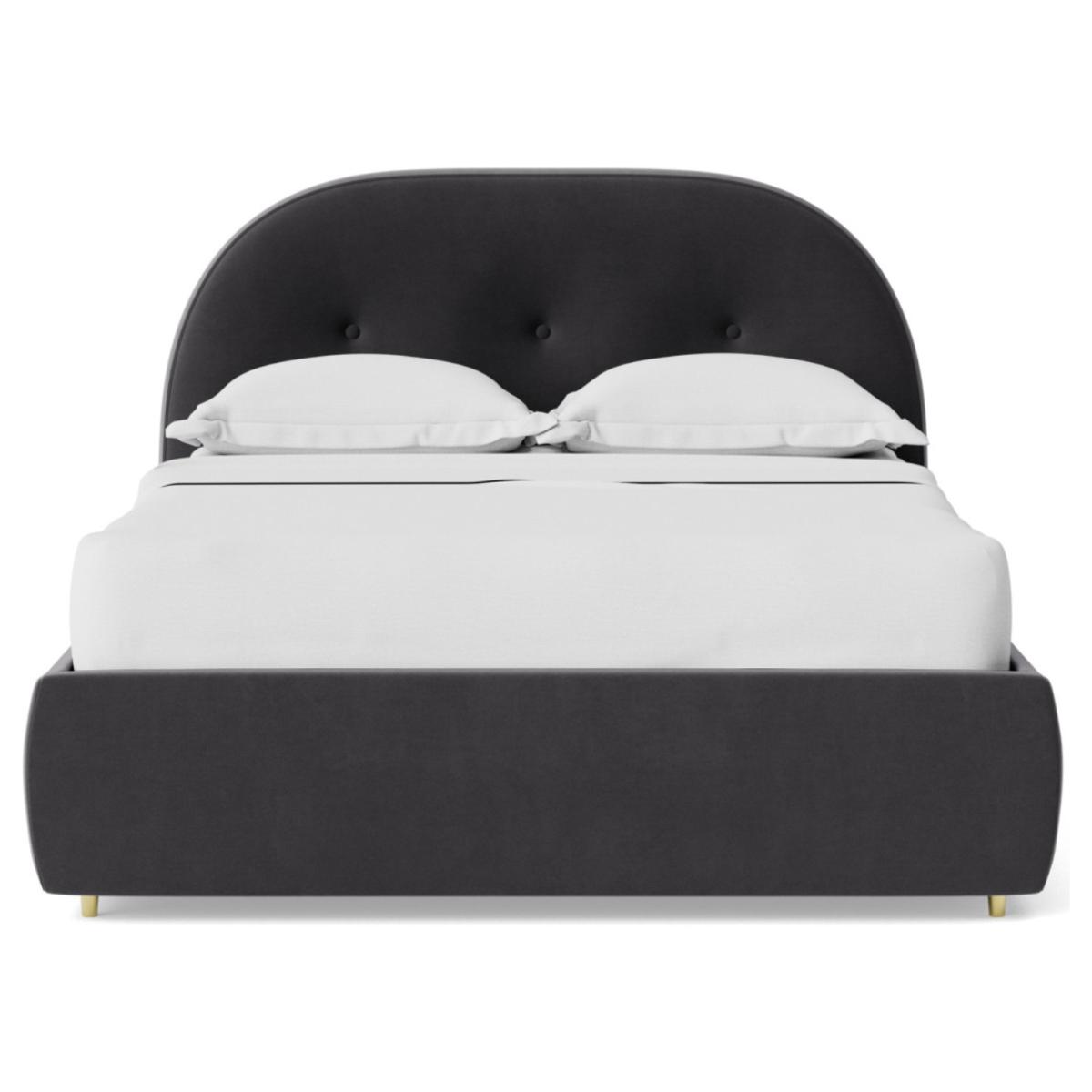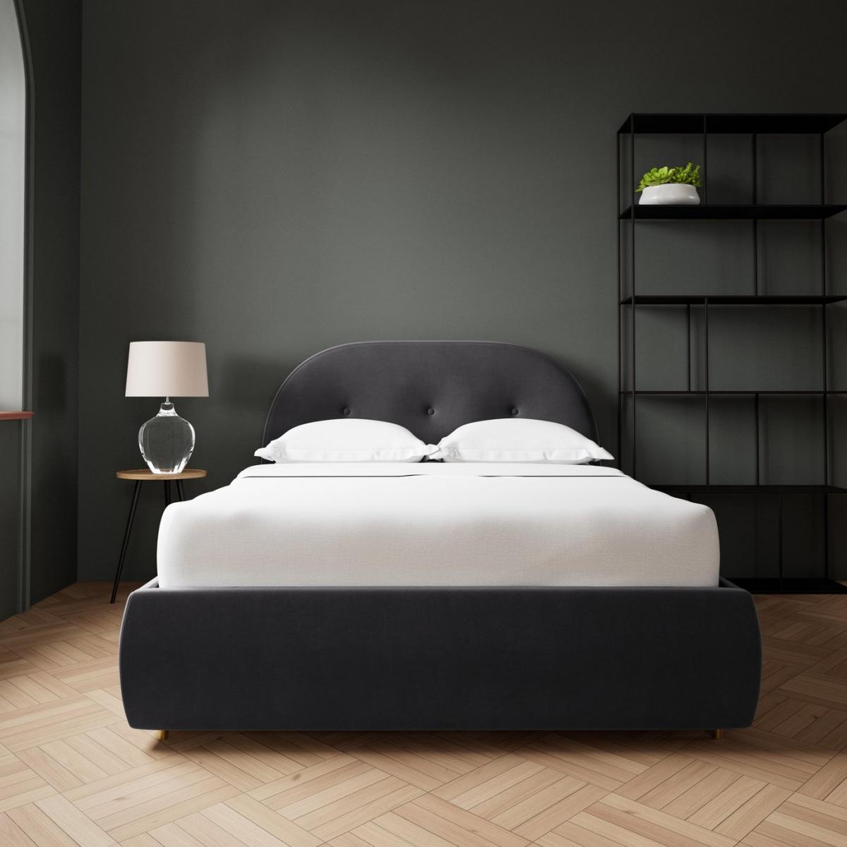 A celebration of Swoon's refined, bold and beautifully detailed look, the Southwark is inspired by the simple elegance of mid-century Scandinavian style. A slim, perfectly padded frame is further softened by the subtly rounded headboard, while the large button details add an extra layer of texture. And there's more. Lift up the end of the bed using its nifty mechanism to reveal loads of storage space underneath. Want more? Have a look at designs from Swoon's Southwark bespoke bed range. See the collection of bed frames and ottoman beds. Don't forget to order a free fabric swatch. Featuring beech frame and plywood sprung slats. Our made to order furniture service means you can choose from different options, such as fabric, size and shape to create a beautiful bespoke piece of furniture. Because this piece is designed just for you, you might notice the delivery time is a little longer than usual. Luxurious and extra durable this deep pile velvet is sensually soft to the touch and doesn't mark or crease like traditional velvets. Part of the Southwark collection. Fabric frame. Easy velvet fabric - 100 % polyester. Base with sprung wooden slats. End lift. Ottoman: end opening. Storage capacity: 945 litres. Size W163, L217, H110cm. Height to top of siderail 29cm. 5cm clearance between floor underside of bed. Weight 87kg. Total maximum user weight 220kg. Self-assembly - 2 people recommended. Package Dimension: Package 1 dimension H11, W164, D104.5cm. Package 1 weight: 25.5kg. Package 2 dimensions: H14, W196, D26cm. Package 2 weight: 35kg. Package 3 dimension: H38, W205, D19cm. Package 3 weight: 26kg. General information: Manufacturer's 10 year frame guarantee.