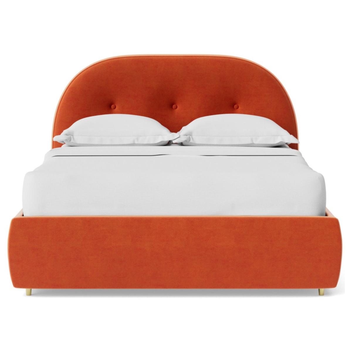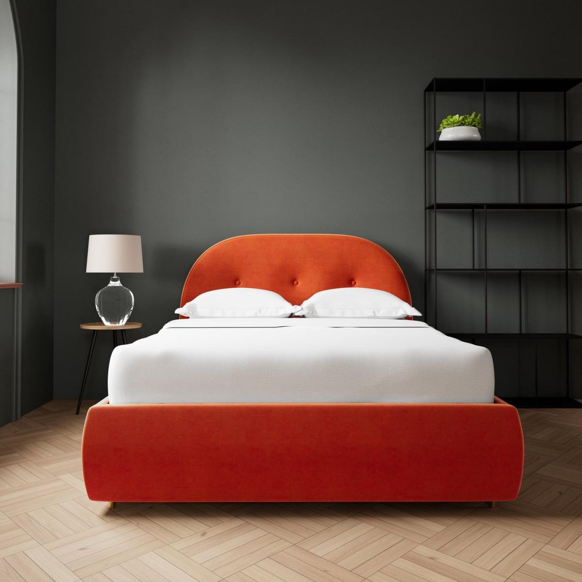A celebration of Swoon's refined, bold and beautifully detailed look, the Southwark is inspired by the simple elegance of mid-century Scandinavian style. A slim, perfectly padded frame is further softened by the subtly rounded headboard, while the large button details add an extra layer of texture. And there's more. Lift up the end of the bed using its nifty mechanism to reveal loads of storage space underneath. Want more? Have a look at designs from Swoon's Southwark bespoke bed range. See the collection of bed frames and ottoman beds. Don't forget to order a free fabric swatch. Featuring beech frame and plywood sprung slats. Our made to order furniture service means you can choose from different options, such as fabric, size and shape to create a beautiful bespoke piece of furniture. Because this piece is designed just for you, you might notice the delivery time is a little longer than usual. Luxurious and extra durable this deep pile velvet is sensually soft to the touch and doesn't mark or crease like traditional velvets. Part of the Southwark collection. Fabric frame. Easy velvet fabric - 100 % polyester. Base with sprung wooden slats. End lift. Ottoman: end opening. Storage capacity: 945 litres. Size W163, L217, H110cm. Height to top of siderail 29cm. 5cm clearance between floor underside of bed. Weight 87kg. Total maximum user weight 220kg. Self-assembly - 2 people recommended. Package Dimension: Package 1 dimension H11, W164, D104.5cm. Package 1 weight: 25.5kg. Package 2 dimensions: H14, W196, D26cm. Package 2 weight: 35kg. Package 3 dimension: H38, W205, D19cm. Package 3 weight: 26kg. General information: Manufacturer's 10 year frame guarantee.