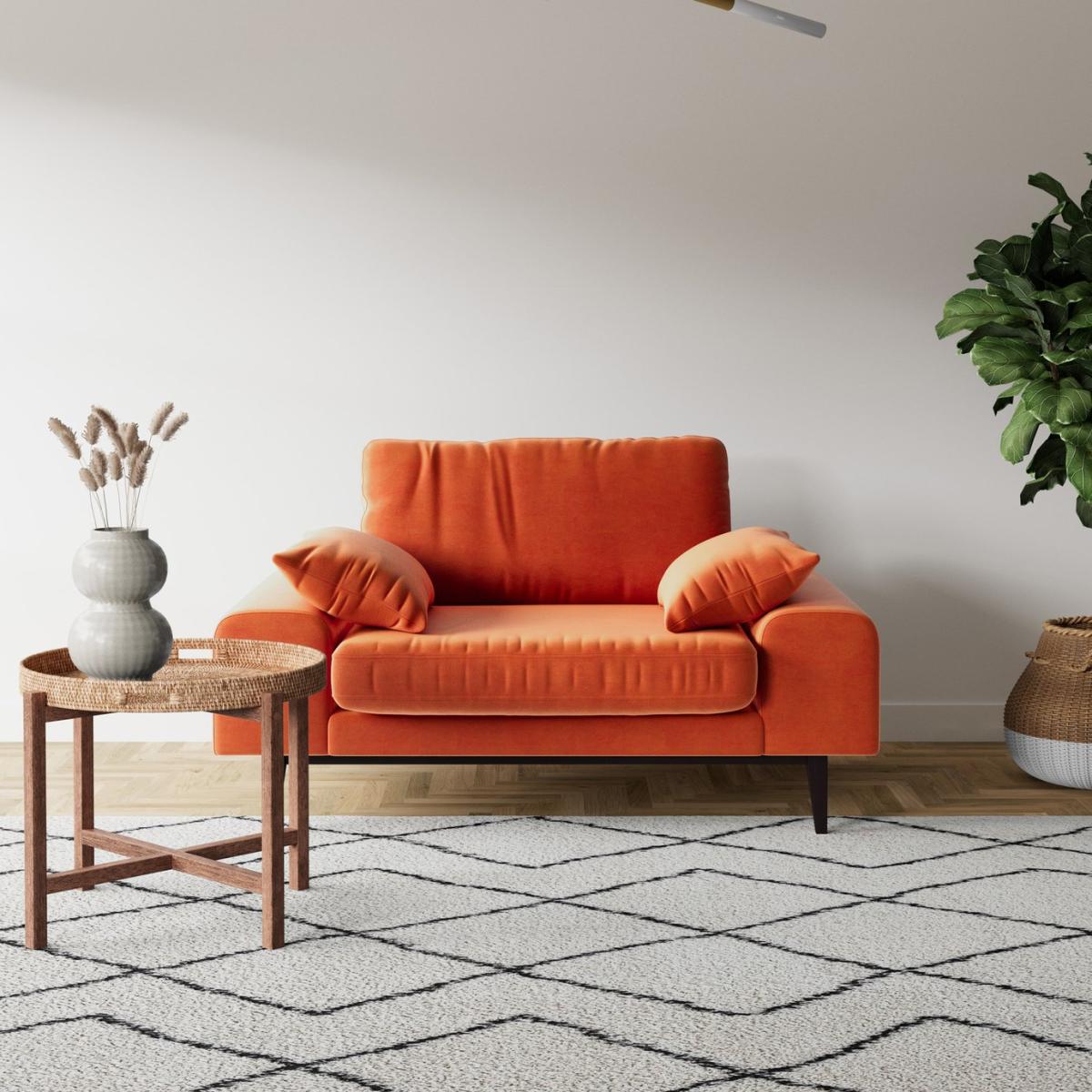 Spread out you're lounging on the beach in a love seat. That's how the Tulum makes you feel, this comfortable creation results in unrivalled relaxation. But a medium-firm seat cushion maintains this love seat's shape when you stand up and gives you support while you sit. Wide arms for perching or piling books with tilted back of clean lines. This seating solution is shaped like the Mayan ruins in our favourite Mexican destination. Want more? Have a look at designs from Swoon's Tulum Mid Century sofa range. See the collection of love seats, 2 and 3-seater couches and chaise corner sofas. Don't forget to order a free fabric swatch. Part of the Tulum collection. Material: Made from 100% polyester. Wooden feet. Removable seat with foam and fibre filling. Removable cushion(s) with foam and fibre filling. Dimensions: Size H82, W144, D93cm. Floor to seat height: 40cm. Depth of seat: 55cm. Height of seat back: 42cm. Width of seating area between arms: 88cm. Height of arm rest: 50cm. Weight: 36kg. Packaged dimensions: Package size H50, W149, D98cm. General information: Professional clean only. Plump cushions regularly to maintain shape. Self-assembly. Maximum individual user weight 180kg. Manufacturer's 10 year frame guarantee.