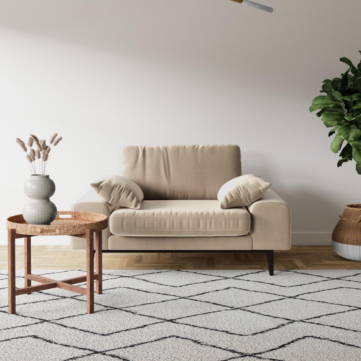 Spread out you're lounging on the beach in a love seat. That's how the Tulum makes you feel, this comfortable creation results in unrivalled relaxation. But a medium-firm seat cushion maintains this love seat's shape when you stand up and gives you support while you sit. Wide arms for perching or piling books with tilted back of clean lines. This seating solution is shaped like the Mayan ruins in our favourite Mexican destination. Want more? Have a look at designs from Swoon's Tulum Mid Century sofa range. See the collection of love seats, 2 and 3-seater couches and chaise corner sofas. Don't forget to order a free fabric swatch. Part of the Tulum collection. Material: Made from 100% polyester. Wooden feet. Removable seat with foam and fibre filling. Removable cushion(s) with foam and fibre filling. Dimensions: Size H82, W144, D93cm. Floor to seat height: 40cm. Depth of seat: 55cm. Height of seat back: 42cm. Width of seating area between arms: 88cm. Height of arm rest: 50cm. Weight: 36kg. Packaged dimensions: Package size H50, W149, D98cm. General information: Professional clean only. Plump cushions regularly to maintain shape. Self-assembly. Maximum individual user weight 180kg. Manufacturer's 10 year frame guarantee.