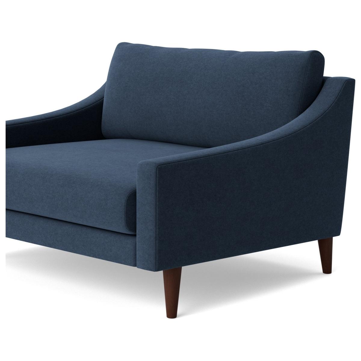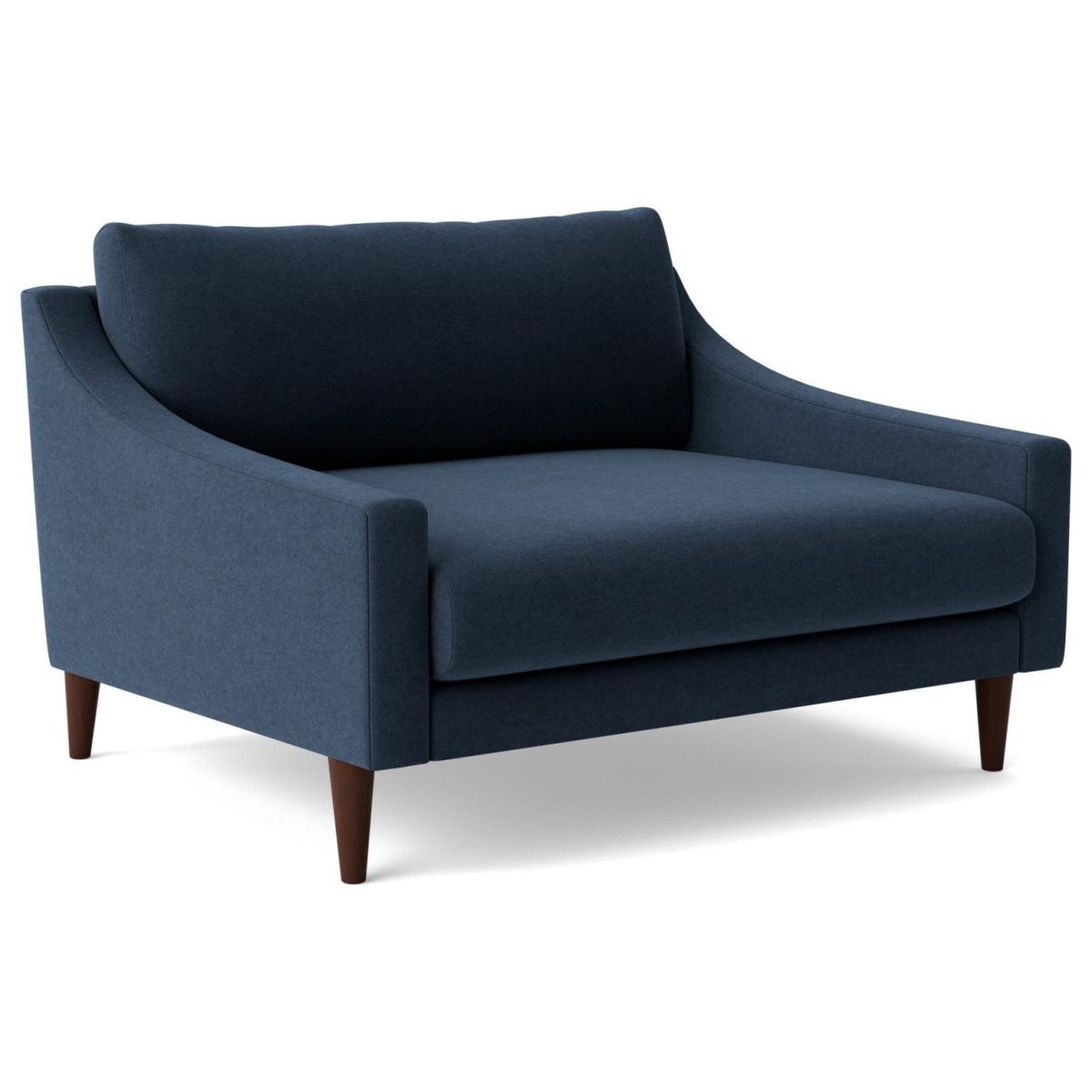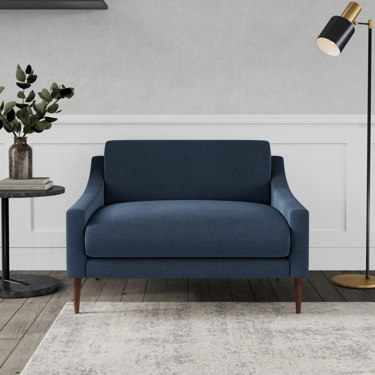 Our designer's take on a classic mid-century shape, the Turin invites you to relax with its sloped arms and seat. Sleek tapered legs and a minimal shape give it an elegant look, while the cushions and seat make it as comfortable as it is stylish. Want more? Have a look at designs from Swoon's Turin Classic sofa range. See the collection of ottomans, armchairs, love seats, 2, 3 and 4-seater couches, chaise corner sofas. Don't forget to order a free fabric swatch. Part of the Turin collection. Material: Made from 100% polyester. Wooden feet. Removable seat with foam and fibre filling. Dimensions: Size H75, W106, D93cm. Floor to seat height: 44cm. Depth of seat: 63cm. Height of seat back: 31cm. Width of seating area between arms: 90cm. Height of arm rest: 50cm. Weight: 27kg. Packaged dimensions: Package size H97, W62, D110cm. General information: Professional clean only. Plump cushions regularly to maintain shape. Self-assembly. Maximum individual user weight 180kg. Manufacturer's 10 year frame guarantee.
