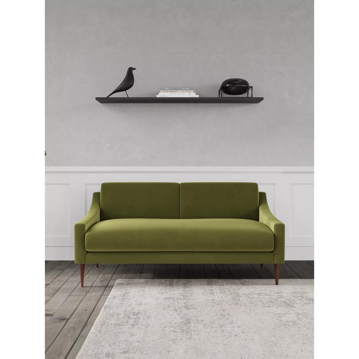 I love this sofa for its clean, modern lines and versatile size, making it an excellent choice for smaller living spaces or open-plan rooms. Its muted green fabric offers a sophisticated pop of colour that works well with neutral palettes or bold, contrasting hues. When styling, consider pairing it with minimalist or Scandinavian-inspired interiors for a fresh look, or dress it up with textured cushions and throws for added comfort. Since it belongs to the ‘sofabeds’ category, it’s a practical piece that can easily transition from daytime seating to overnight guest accommodation, making it a smart and stylish addition to multi-functional rooms.