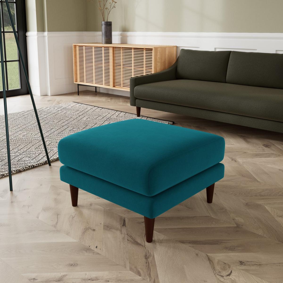 Our designer's take on a classic mid-century shape, the Turin invites you to relax with its sleek tapered legs and minimal shape. Want more? Have a look at designs from Swoon's Turin Classic sofa range. See the collection of ottomans, armchairs, love seats, 2, 3 and 4-seater couches, chaise corner sofas. Don't forget to order a free fabric swatch. Part of the Turin collection. Material: Made from 100% polyester. Wooden feet. Fixed cushion(s) with foam and fibre filling. Dimensions: Size H44, W65, D65cm. Weight: 9kg. General information: Professional clean only. Minimal assembly. Maximum individual user weight: 90kg. Manufacturer's 10 year frame guarantee. Packaged dimensions: Package size H29, W69, D69cm.