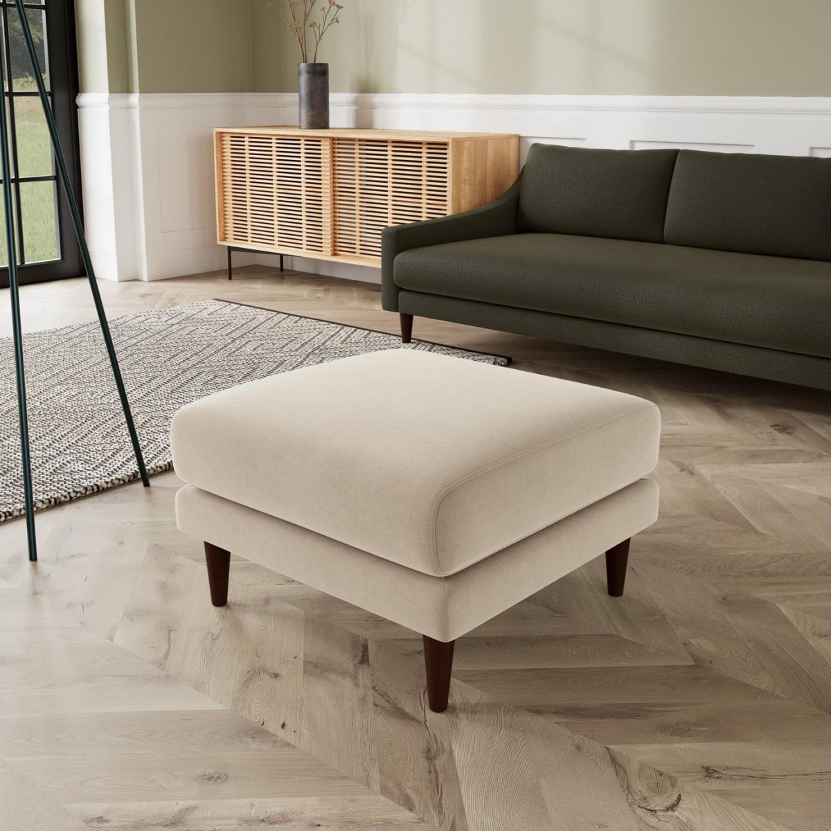 Our designer's take on a classic mid-century shape, the Turin invites you to relax with its sleek tapered legs and minimal shape. Want more? Have a look at designs from Swoon's Turin Classic sofa range. See the collection of ottomans, armchairs, love seats, 2, 3 and 4-seater couches, chaise corner sofas. Don't forget to order a free fabric swatch. Part of the Turin collection. Material: Made from 100% polyester. Wooden feet. Fixed cushion(s) with foam and fibre filling. Dimensions: Size H44, W65, D65cm. Weight: 9kg. General information: Professional clean only. Minimal assembly. Maximum individual user weight: 90kg. Manufacturer's 10 year frame guarantee. Packaged dimensions: Package size H29, W69, D69cm.