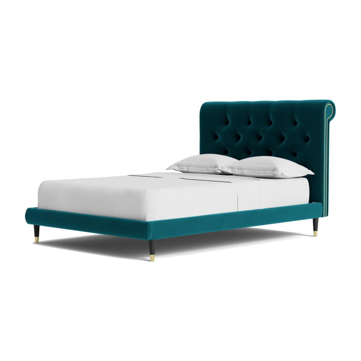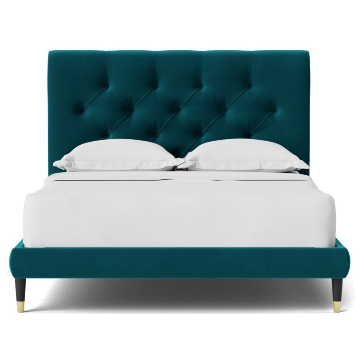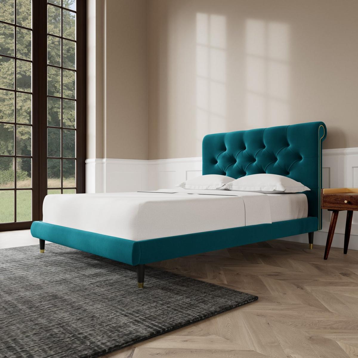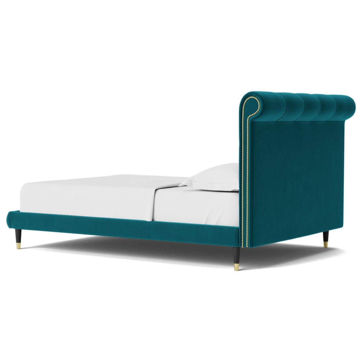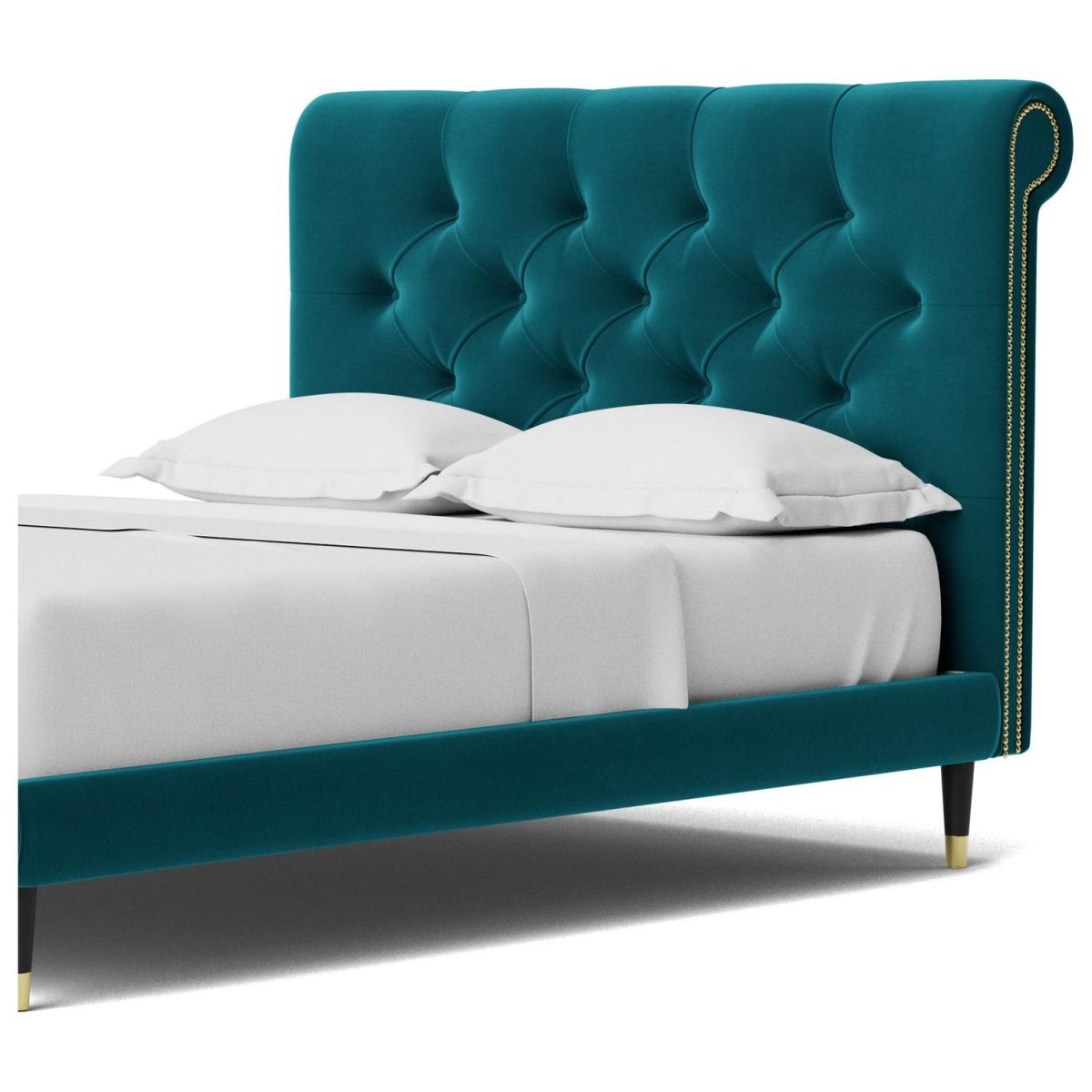 Oozing classic character, the Winston celebrates Chesterfield style in flamboyant fashion. A slim, padded frame proves the perfect plinth for a mattress. But the headboard is where the real party is. Want more? Have a look at designs from Swoon's Winston bespoke bed range. See the collection of bed frames and ottoman beds. Don't forget to order a free fabric swatch. Features beech plywood sprung slats. Our made to order furniture service means you can choose from different options, such as fabric, size and shape to create a beautiful bespoke piece of furniture. Because this piece is designed just for you, you might notice the delivery time is a little longer than usual. Luxurious and extra durable this deep pile velvet is sensually soft to the touch and doesn't mark or crease like traditional velvets. Part of the Winston collection. Fabric frame. Easy velvet fabric - 100% polyester. Dark wood and brass feet. Base with sprung wooden slats. No storage. Size W148, L205.5, H109cm. Height to top of siderail 29cm. 5cm clearance between floor and underside of bed. Weight 55kg. Total maximum user weight 220kg. Self-assembly - 2 people recommended. Package Dimensions: Package 1 dimensions: H21, W152, D93cm. Package 1 weight: 19.5kg. Package 2 dimensions: H14, W196.5, D43cm. Package 2 weight: 35.5kg. General Information: Manufacturer's 1 year guarantee.