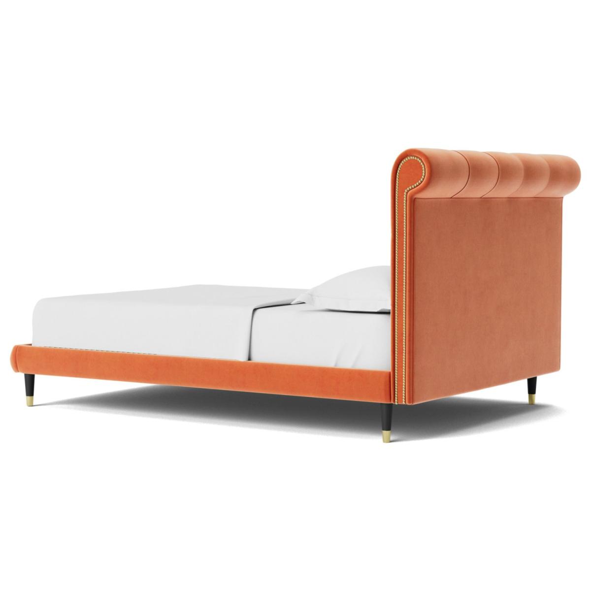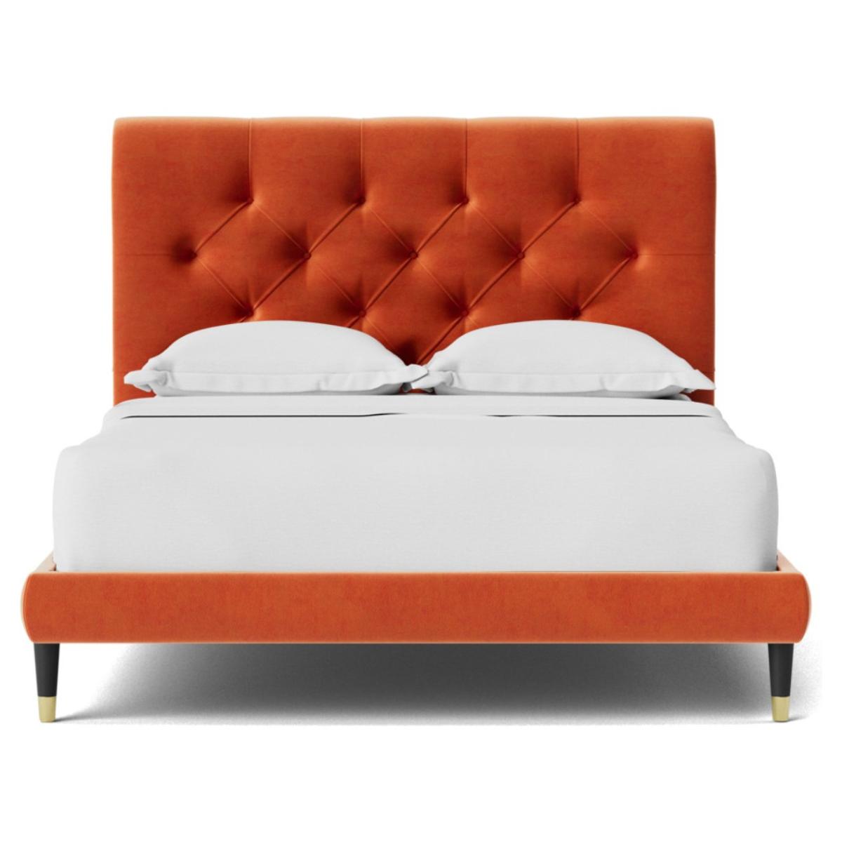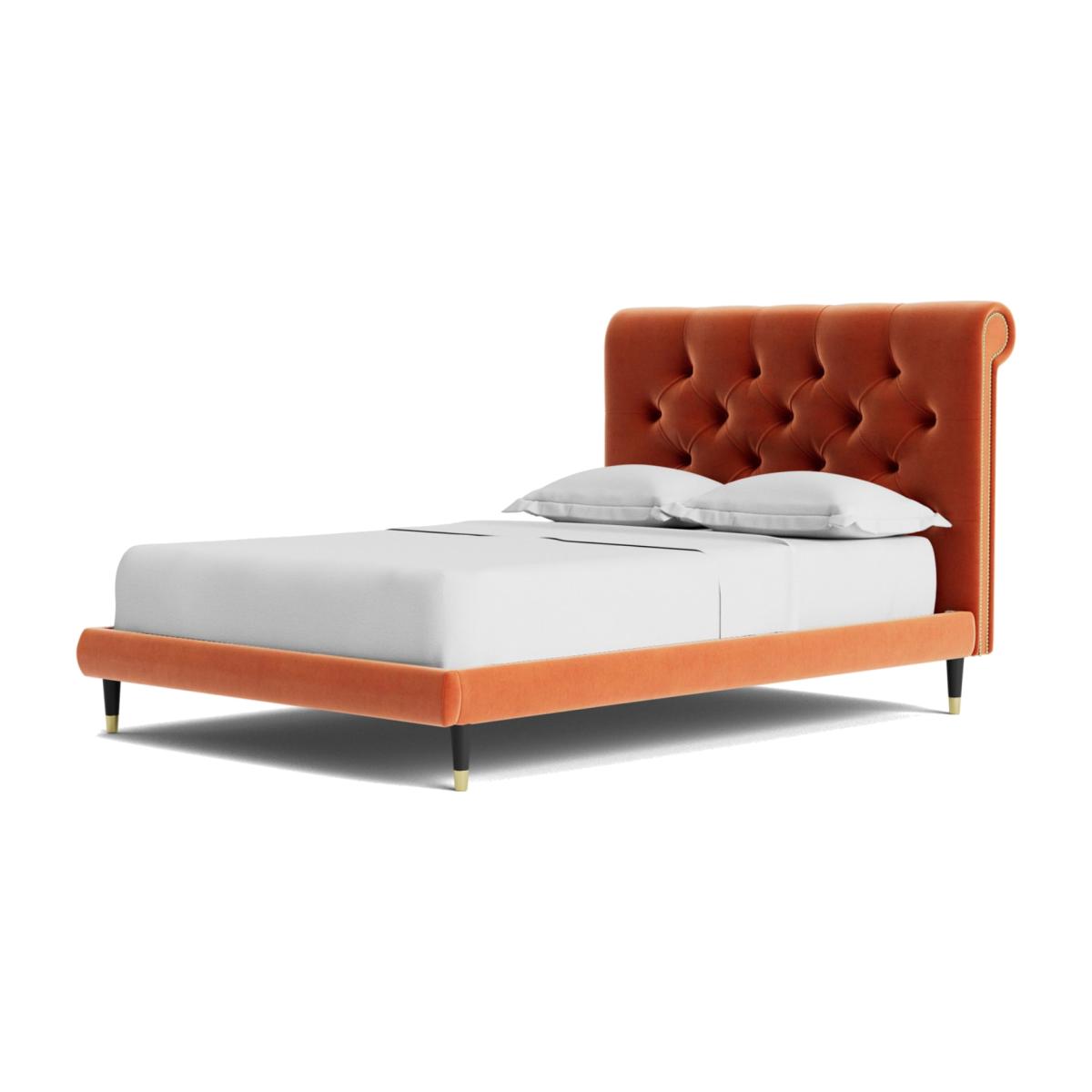 Oozing classic character, the Winston celebrates Chesterfield style in flamboyant fashion. A slim, padded frame proves the perfect plinth for a mattress. But the headboard is where the real party is. Want more? Have a look at designs from Swoon's Winston bespoke bed range. See the collection of bed frames and ottoman beds. Don't forget to order a free fabric swatch. Features beech plywood sprung slats. Our made to order furniture service means you can choose from different options, such as fabric, size and shape to create a beautiful bespoke piece of furniture. Because this piece is designed just for you, you might notice the delivery time is a little longer than usual. Luxurious and extra durable this deep pile velvet is sensually soft to the touch and doesn't mark or crease like traditional velvets. Part of the Winston collection. Fabric frame. Easy velvet fabric - 100% polyester. Dark wood and brass feet. Base with sprung wooden slats. No storage. Size W163, L215.5, H109cm. Height to top of siderail 29cm. 17cm clearance between floor and underside of bed. Weight 61.5kg. Total maximum user weight 220kg. Self-assembly - 2 people recommended. Package Dimensions: Package 1 dimensions: H21, W167, D93cm. Package 1 weight: 21.5kg. Package 2 dimensions: H14, W206.5, D43cm. Package 2 weight: 40kg. General Information: Manufacturer's 1 year guarantee.