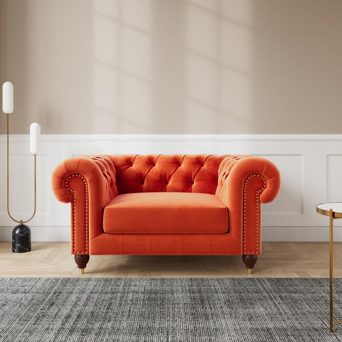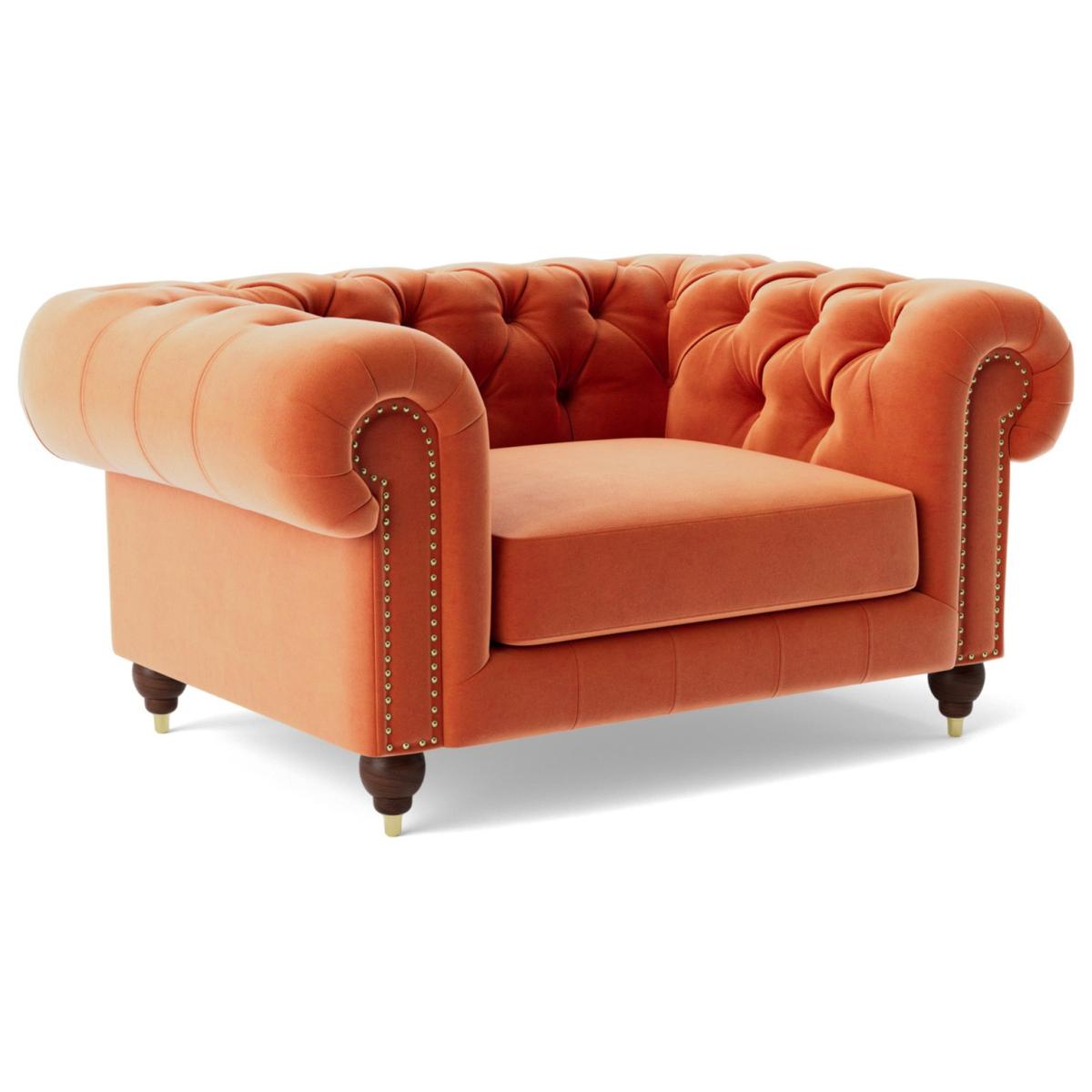 Classic Chesterfield design never goes out of style. It's a total head-turner. The exaggerated scrolled arms, winking metal studs and a buttoned back combine to make for an love seat with a playful vibe. Want more? Have a look at designs from Swoon's Winston Chesterfield sofa range. See the collection of ottomans, armchairs, love seats, 2, 3 and 4-seater couches, corner sofas, bed frames and ottoman beds. Don't forget to order a free fabric swatch. Part of the Winston collection. Material: Made from 100% polyester. Wooden feet. Removable seat with foam and fibre filling. Dimensions: Size H74, W150, D100cm. Floor to seat height: 45cm. Depth of seat: 62cm. Height of seat back: 29cm. Width of seating area between arms: 90cm. Height of arm rest: 74cm. Weight: 45kg. Packaged dimensions: Package size H65, W155, D104cm. General information: Professional clean only. Plump cushions regularly to maintain shape. Self-assembly. Maximum individual user weight 180kg. Manufacturer's 10 year frame guarantee.