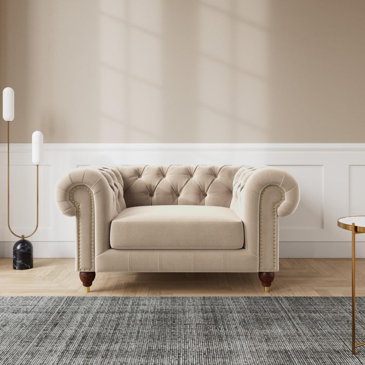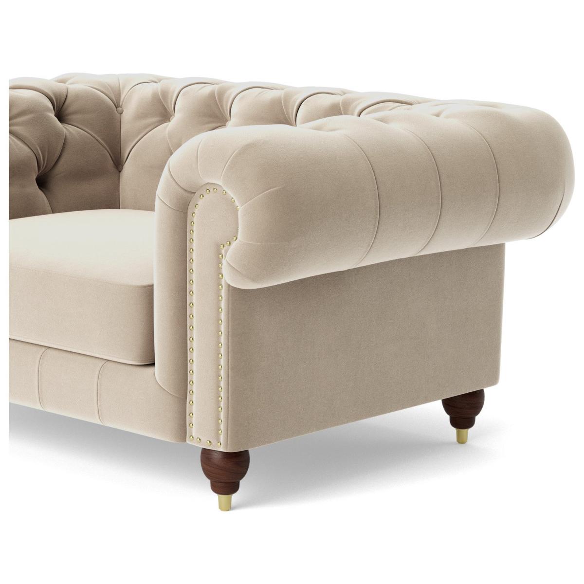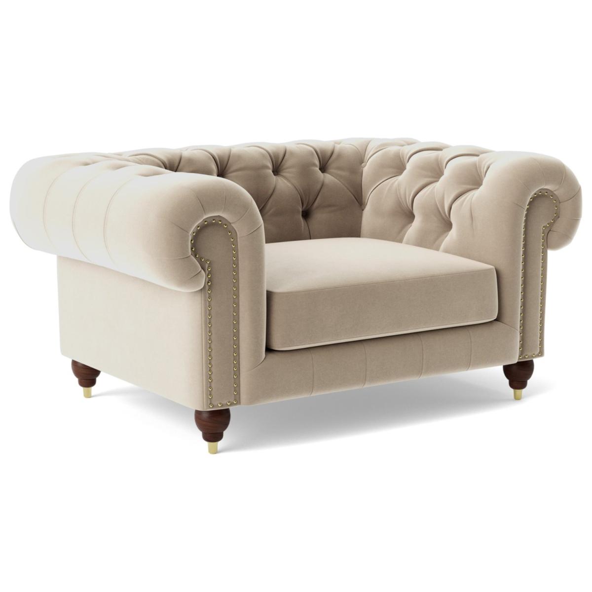 Classic Chesterfield design never goes out of style. It's a total head-turner. The exaggerated scrolled arms, winking metal studs and a buttoned back combine to make for an love seat with a playful vibe. Want more? Have a look at designs from Swoon's Winston Chesterfield sofa range. See the collection of ottomans, armchairs, love seats, 2, 3 and 4-seater couches, corner sofas, bed frames and ottoman beds. Don't forget to order a free fabric swatch. Part of the Winston collection. Material: Made from 100% polyester. Wooden feet. Removable seat with foam and fibre filling. Dimensions: Size H74, W150, D100cm. Floor to seat height: 45cm. Depth of seat: 62cm. Height of seat back: 29cm. Width of seating area between arms: 90cm. Height of arm rest: 74cm. Weight: 45kg. Packaged dimensions: Package size H65, W155, D104cm. General information: Professional clean only. Plump cushions regularly to maintain shape. Self-assembly. Maximum individual user weight 180kg. Manufacturer's 10 year frame guarantee.