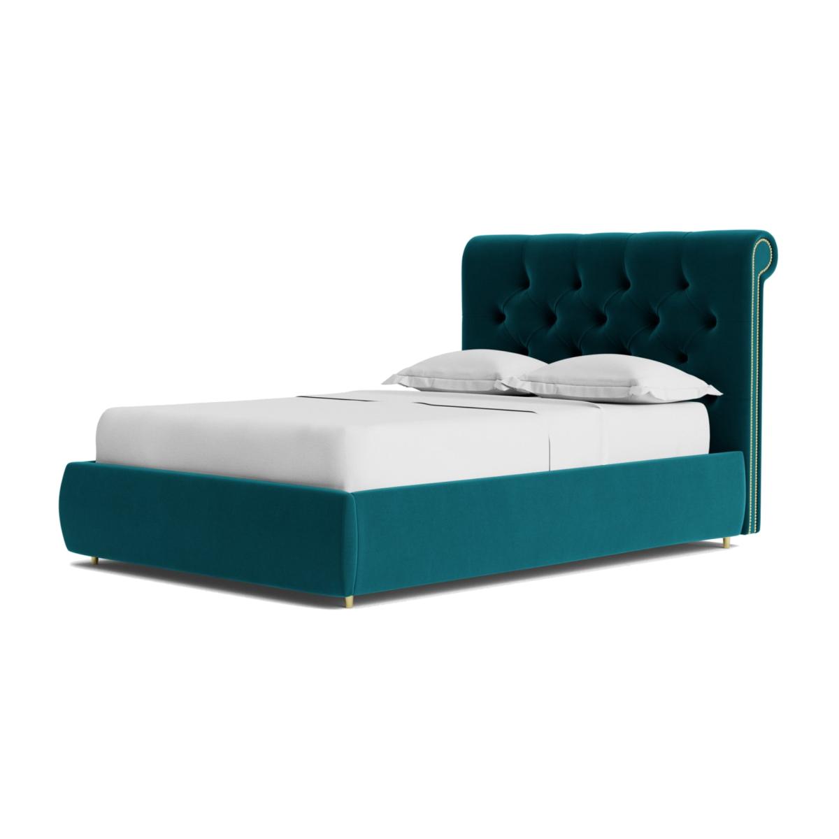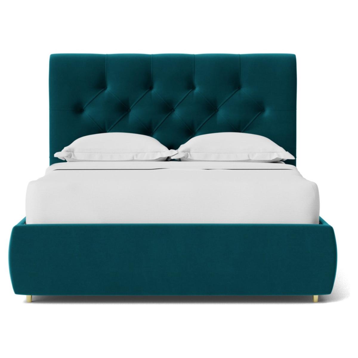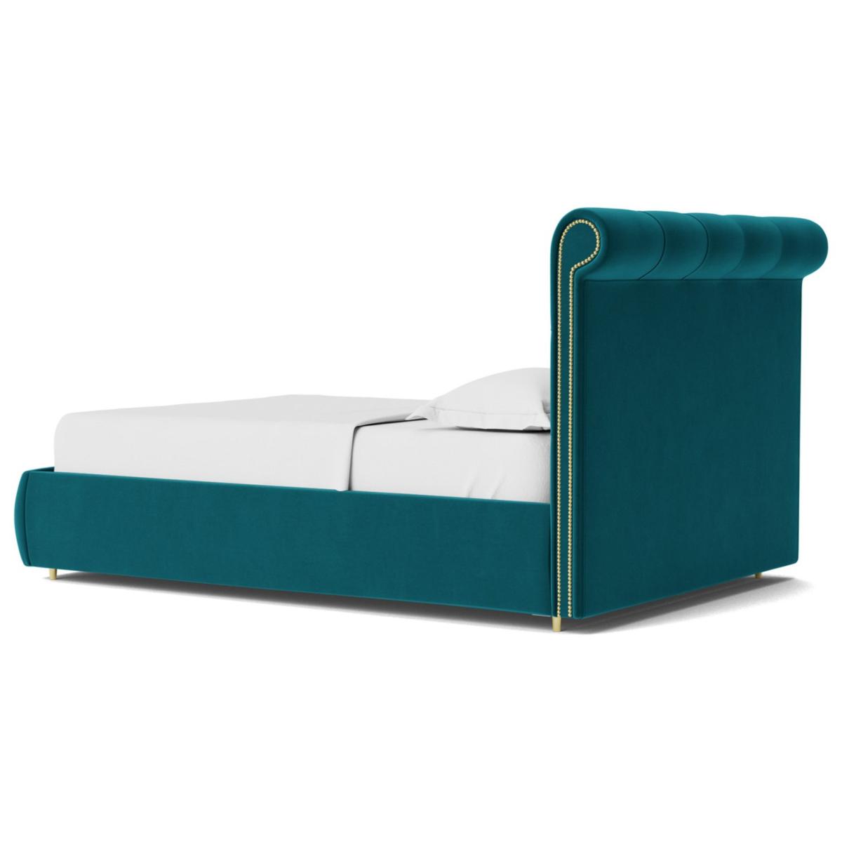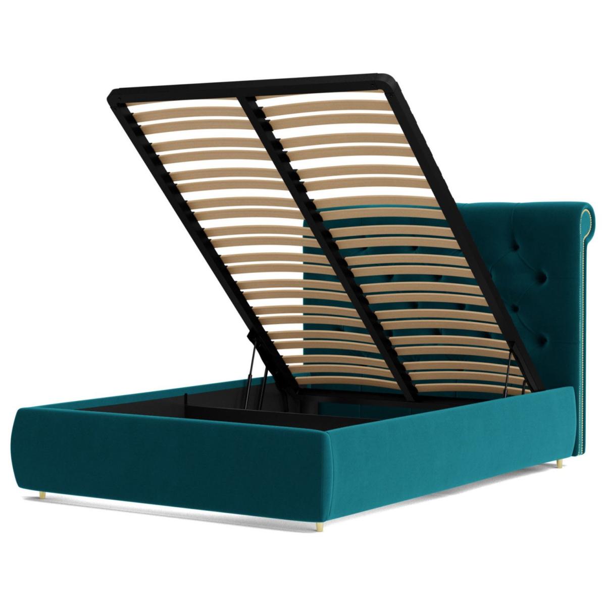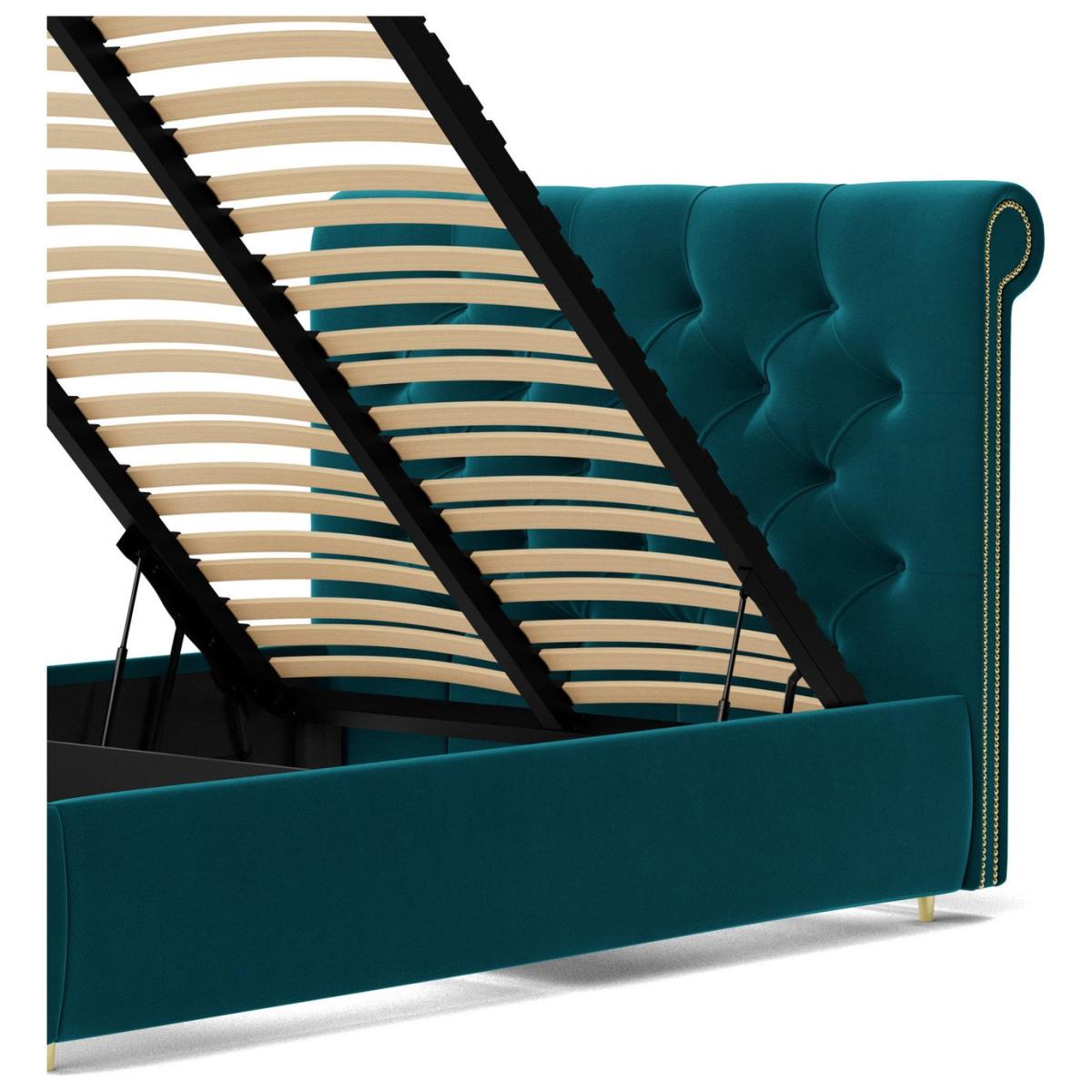 Oozing classic character, the Winston celebrates Chesterfield style in flamboyant fashion. It has a slim, padded frame, but the headboard is where the real party is. The deep-buttoned tufting and exaggerated scroll-top create an instant design impact. And there's more. Lift up the end of the bed using its nifty mechanism to reveal loads of storage space underneath. Want more? Have a look at designs from Swoon's Winston Chesterfield sofa range. See the collection of ottomans, armchairs, love seats, 2, 3 and 4-seater couches, corner sofas, bed frames and ottoman beds. Don't forget to order a free fabric swatch. Features beech plywood sprung slats. Our made to order furniture service means you can choose from different options, such as fabric, size and shape to create a beautiful bespoke piece of furniture. Because this piece is designed just for you, you might notice the delivery time is a little longer than usual. Luxurious and extra durable this deep pile velvet is sensually soft to the touch and doesn't mark or crease like traditional velvets. Part of the Winston collection. Fabric frame. Easy velvet fabric - 100 % polyester. Base with sprung wooden slats. End lift. Ottoman: end opening. Storage capacity: 840 litres. Size W148, L207, H110cm. Height to top of siderail 29cm. 5cm clearance between floor underside of bed. Weight 77.5kg. Total maximum user weight 220kg. Self-assembly - 2 people recommended. Package Dimension: Package 1 dimension H21, W152, D108cm. Package 1 weight: 22.5kg. Package 2 dimensions: H14, W196, D26cm. Package 2 weight: 31kg. Package 3 dimension: H38, W205, D19cm. Package 3 weight: 24kg. General information: Manufacturer's 10 year frame guarantee.