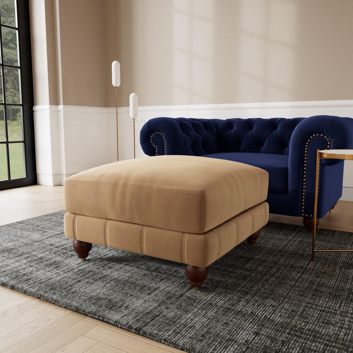 The ottoman that never goes out of style. Offering you a perfect way to accessorise your matching Chesterfield sofa, this piece has a distinctly playful vibe about it. Want more? Have a look at designs from Swoon's Winston Chesterfield sofa range. See the collection of ottomans, armchairs, love seats, 2, 3 and 4-seater couches, corner sofas, bed frames and ottoman beds. Don't forget to order a free fabric swatch. Part of the Winston collection. Material: Made from 100% polyester. Wooden feet. Fixed cushion(s) with foam and fibre filling. Dimensions: Size H45, W80, D80cm. Weight: 15kg. General information: Professional clean only. Minimal assembly. Maximum individual user weight: 90kg. Manufacturer's 10 year frame guarantee. Packaged dimensions: Package size H35, W82, D82cm.