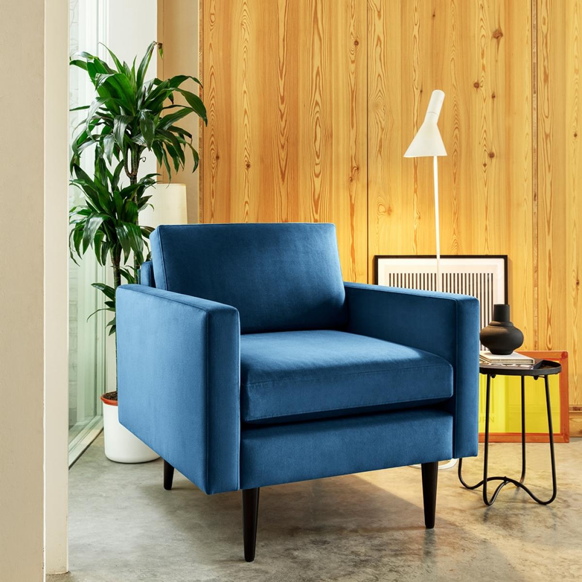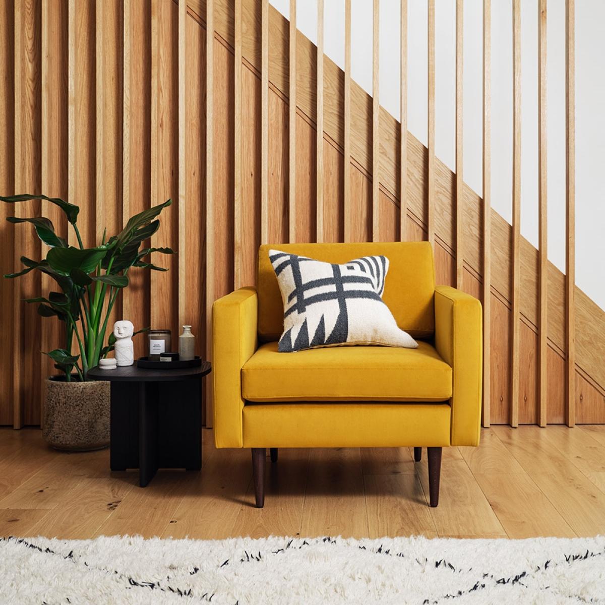 No home is complete without a statement chair, and in our opinion, the Swyft Model 01 Velvet Armchair is the perfect choice! With its boxy clean lines and retro wooden legs, this chair deserves to take pride of place in your humble abode. You'll also love this super eco brand who are well on their way to becoming carbon neutral. All packaging is fully recyclable and designed to be self locking, so you wont find any glue or staples around here! Just like it's extended Model 01 Family, this Armchair comes easily in 2 boxes that you can assemble in a Swyfty 10 minutes completely on your tod. So there's no excuses really!.