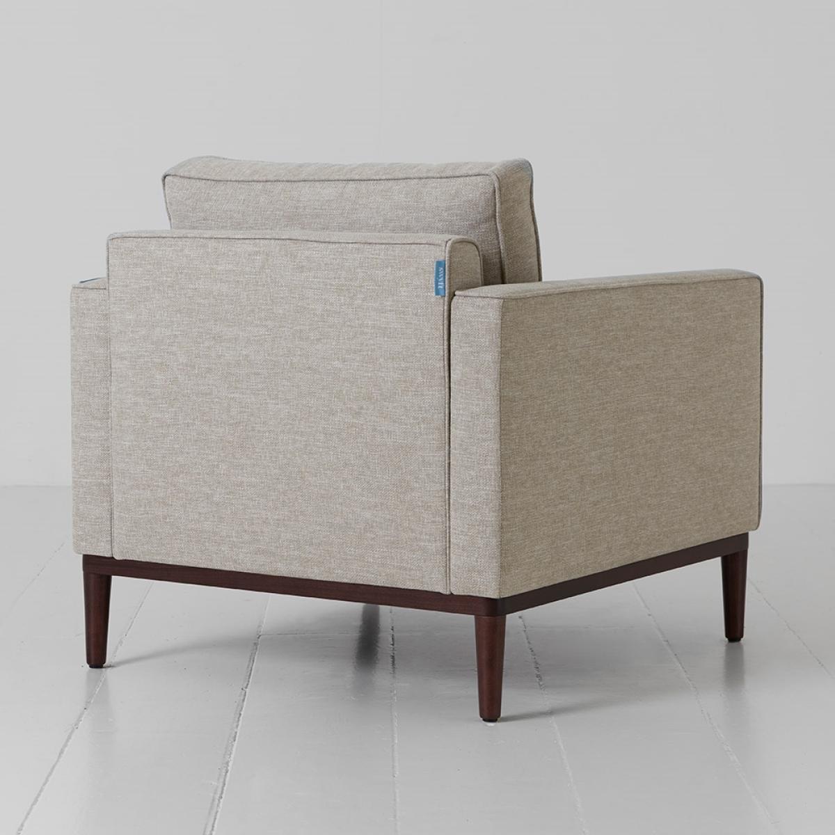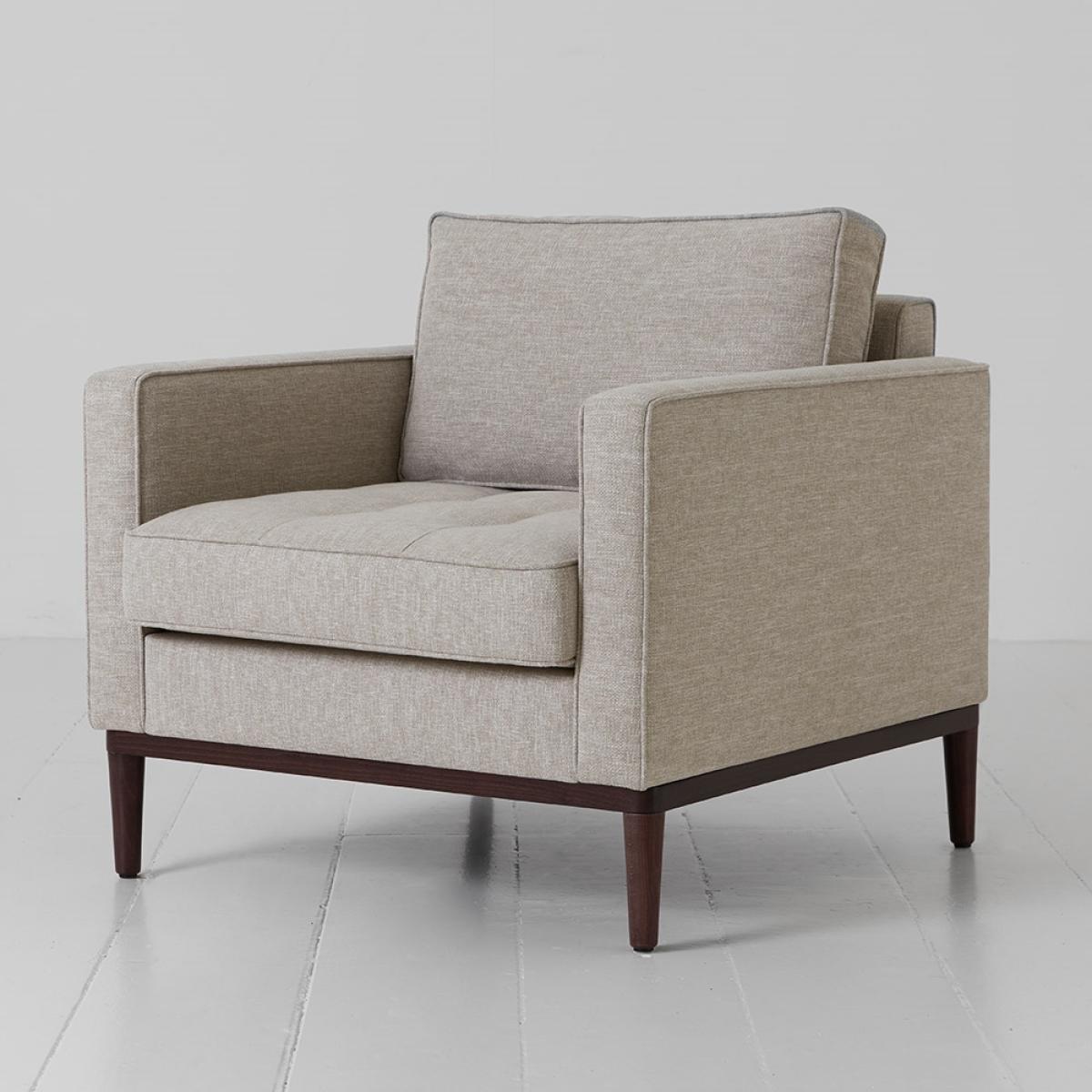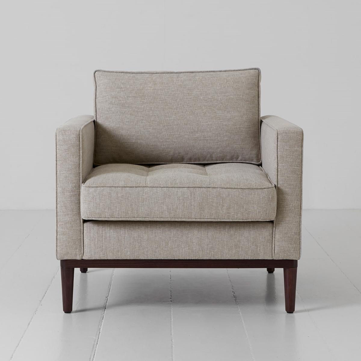 Update an unloved corner with the Swyft Armchair in a Box Model 02 Linen Armchair! The perfect spot to catch up on your latest read with a cuppa; the feather filled back cushions and high density dual layered foam ensure you're comfy and cosy while you take some time for yourself. It's easy on the eye too! With a dark, solid wooden base, square design and piped and pulled seam details, it's just calling out to be sat on! Available in a choice of colours and fabrics, all stain resistant making it perfect for homes with kiddies and pets, select the style to suit your interiors. Pair yours with the matching footstool or ottoman and pop your feet up while you relax and unwind.