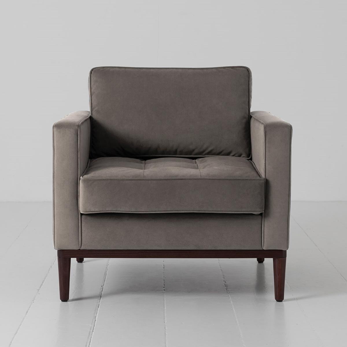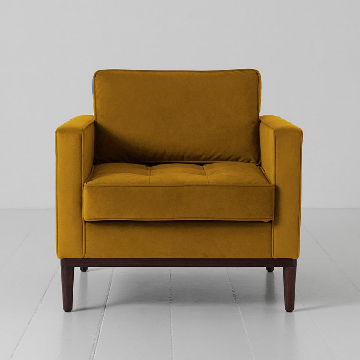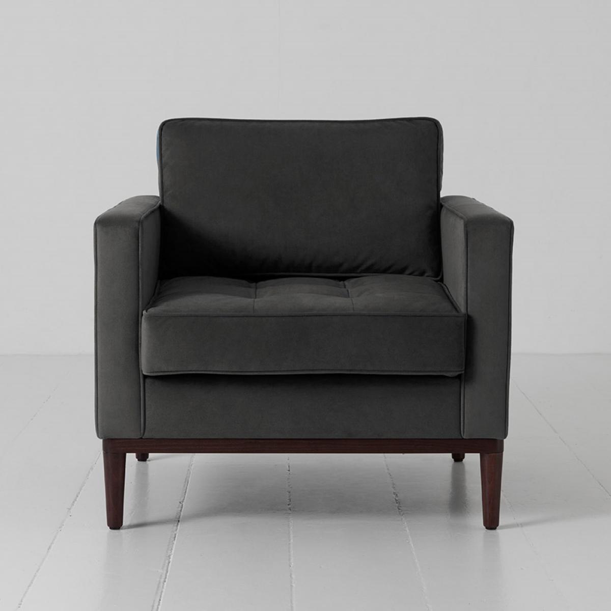 Update an unloved corner with theSwyft Armchair in a Box Model 02 Velvet Armchair! The perfect spot to catch up on your latest read with a cuppa; the feather filled back cushions and high density dual layered foam ensure you're comfy and cosy while you take some time for yourself. It's easy on the eye too! With a dark, solid wooden base, square design and piped and pulled seam details, it's just calling out to be sat on! Available in a choice of colours and fabrics, all stain resistant making it perfect for homes with kiddies and pets, select the style to suit your interiors. Pair yours with the matching footstool or ottoman and pop your feet up while you relax and unwind.