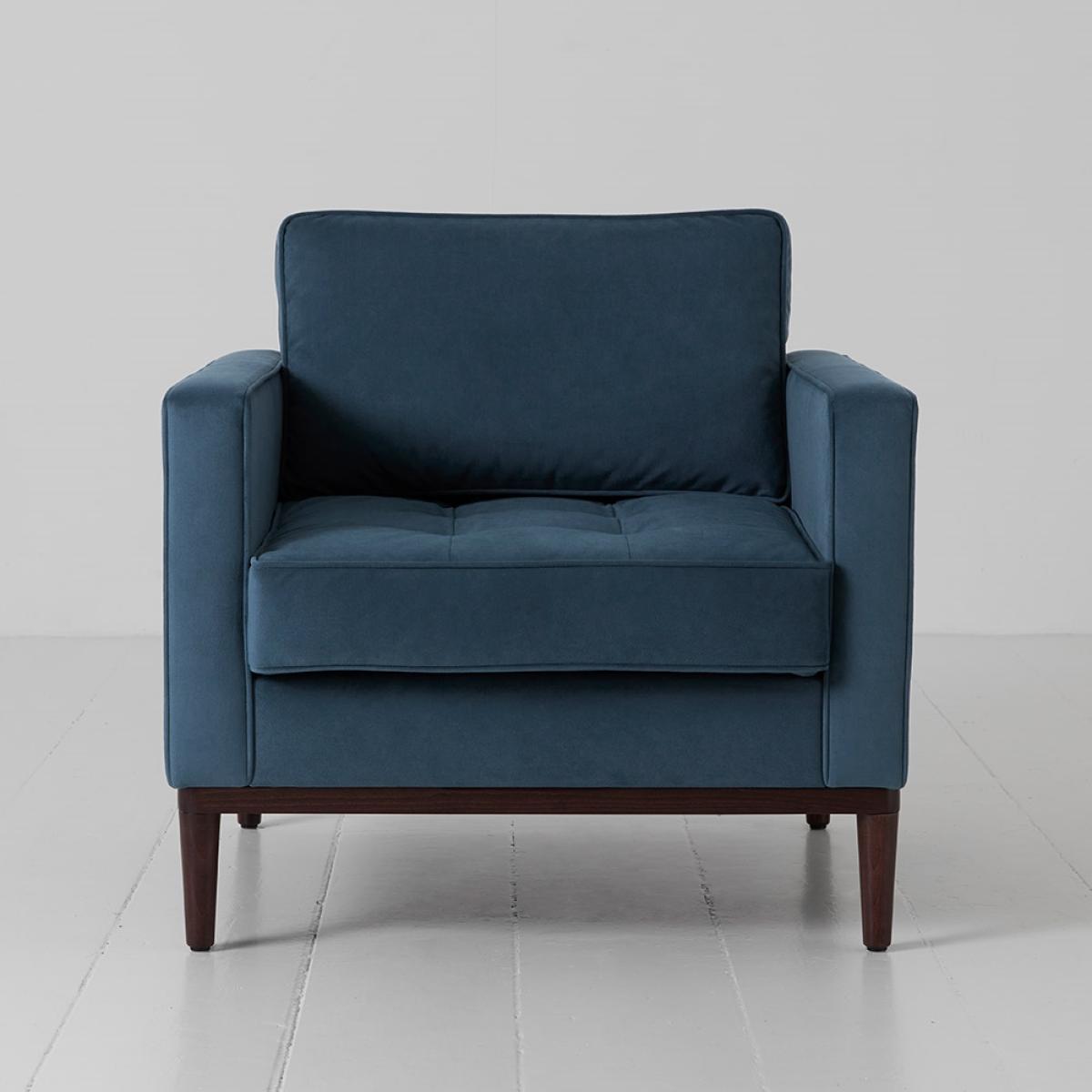 Update an unloved corner with theSwyft Armchair in a Box Model 02 Velvet Armchair! The perfect spot to catch up on your latest read with a cuppa; the feather filled back cushions and high density dual layered foam ensure you're comfy and cosy while you take some time for yourself. It's easy on the eye too! With a dark, solid wooden base, square design and piped and pulled seam details, it's just calling out to be sat on! Available in a choice of colours and fabrics, all stain resistant making it perfect for homes with kiddies and pets, select the style to suit your interiors. Pair yours with the matching footstool or ottoman and pop your feet up while you relax and unwind.