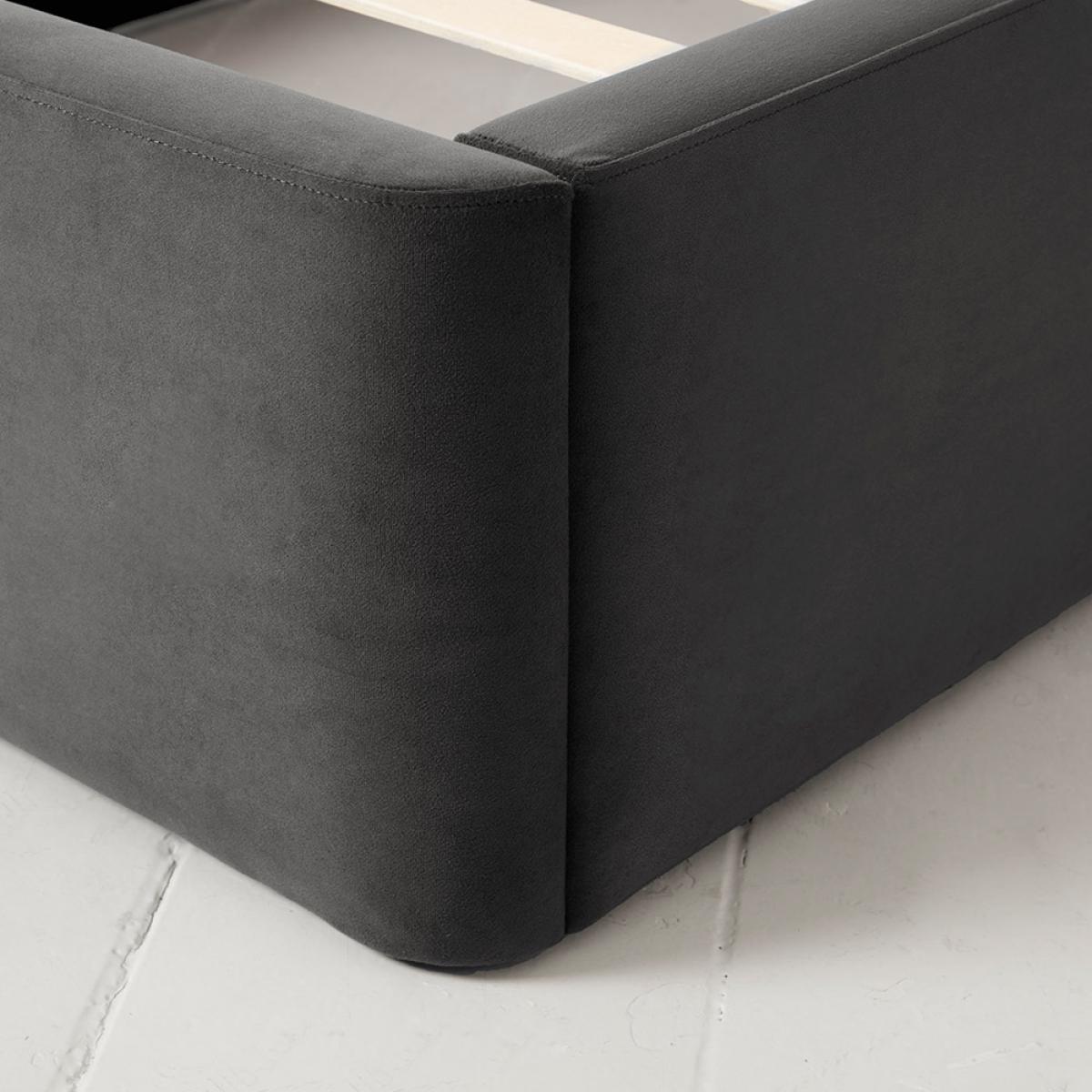 I love this bed frame for its sleek, contemporary look and rich charcoal velvet finish, which instantly adds a sense of sophistication to any bedroom. It works particularly well in modern, minimalist interiors or for creating a luxe hotel-inspired vibe. To style around it, consider pairing with crisp white or soft grey bedding and adding textured cushions or throws in complementary colours to soften the look. Practical tips include keeping the space around the bed clear for a clean aesthetic and using subtle bedside lighting to highlight its plush upholstery. This piece is versatile enough to work with both bold colour schemes and more subdued, calming palettes.