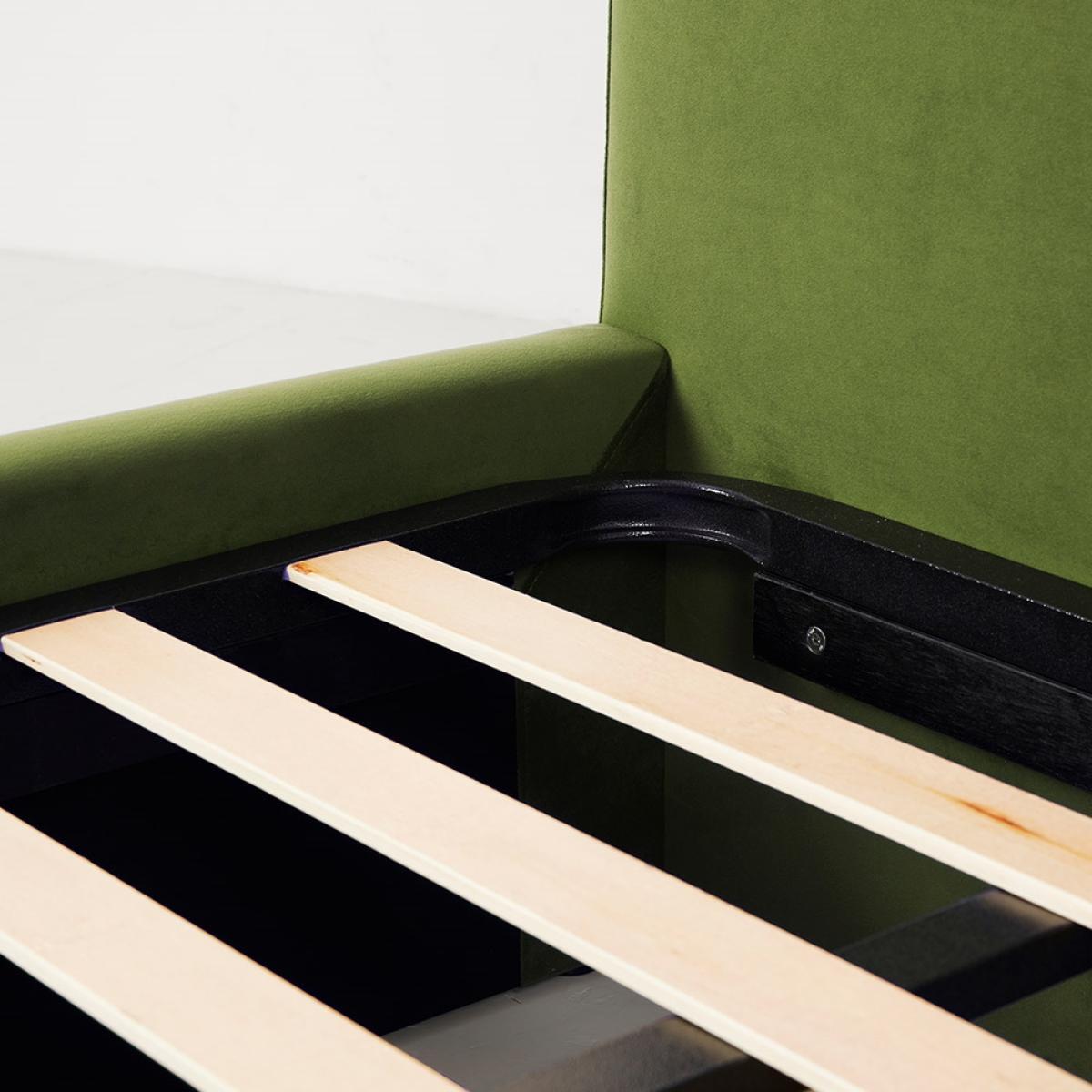 The Swyft bed in green velvet is a bold yet versatile choice that works particularly well in contemporary and eclectic interiors. Its rich, tactile fabric adds a sense of luxury and can serve as a statement piece in a bedroom with minimalist or neutral palettes. I love pairing it with brass or black accents for a modern look, or with textured bedding and layered textiles to soften its boldness. Practical styling tips include keeping bedside tables simple to let the bed be the focal point or adding a few colourful cushions to introduce pattern and personality. This bed frame works well in spaces where you want a mix of comfort and visual impact, making it a great investment for creating a chic, cosy retreat.