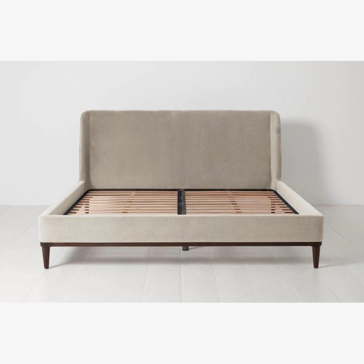 Bed 02 features a skillfully upholstered winged headboard that really makes a statement. It adds a classic mid-century design, sitting atop a solid Ash plinth with stylish tapered legs. Fabrics come in every colour to suit your bedroom vision. Choose cool linens such as natural, stone and midnight for a simple clean feel and versatile base. Or you can opt for stand-out velvet fabric in vine, teal, charcoal, mustard or bone colours- the choice is yours. Can’t decide which colour to go for? Request a free fabric sample box and get 17 slices of swatch perfection. Choose from linen, velvet, royal velvet or faux leather. Contact us here to request a swatch sample box. Single Dimensions:Height: 104cm. Width: 104cm. Length: 220CM Double Dimensions:Height: 104cm. Width: 149cm. Length: 220CM King Size Dimensions:Height: 104cm. Width: 164cm. Length: 230CM Super King Size Dimensions;Height: 104cm. Width: 194cm. Length: 230CM Frame Height: 37cm / Headboard Height: 85cm. All screens vary in colour reproduction and whilst every effort has been made to display the colour as accurately as possible it is for guidance only.