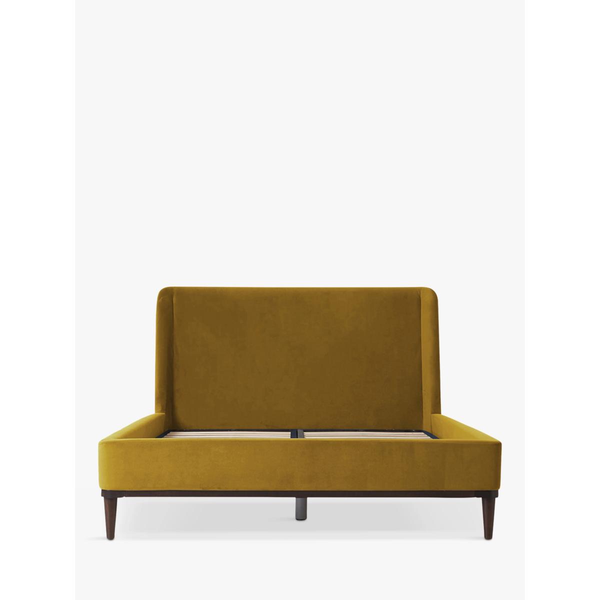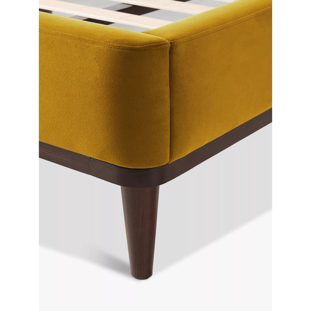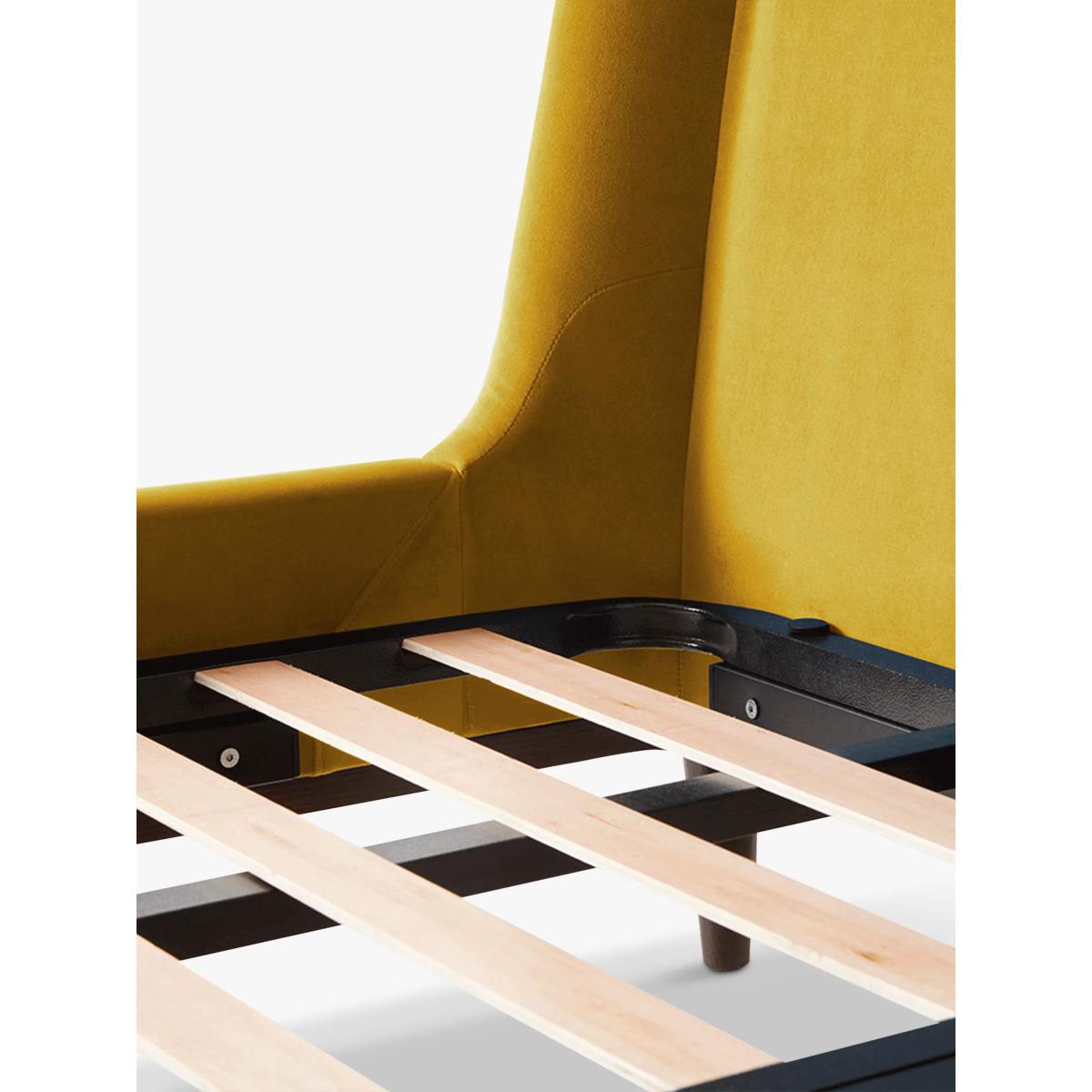 Getting your beauty sleep never looked so good. Bed 02 from Swyft is upholstered in either cool linen or sumptuous velvet in a range of calming neutrals or punchy tones, and it's designed with a contemporary winged headboard that nods to Mid-Century style. Sweet dreams in minutes Thanks to their signature Swyft-fix system, this bed frame can be easily assembled or disassembled in a matter of minutes. There's no need for small parts or screwdrivers so you're free to throw complicated instructionsto the wind. Just like theirsofas, simply slot each frame piece together, and you're done. No flat-pack stresses here. Built to last A dedicated team in Portugal made Bed 02, and they really know their stuff. Not only will this bed make a statement in your space, it has practicality covered too. It sits atop a solid ash wood plinth with stylish tapered legs and it has supportive sprung slats in the base. The headboard is also foam-filled so those breakfast-in-bed mornings can be enjoyed in comfort. Want to see it first? You may want to see and get a feel for this piece of furniture in one of our shops before ordering. We'll be able to tell you where the range you'd like to view is on display.