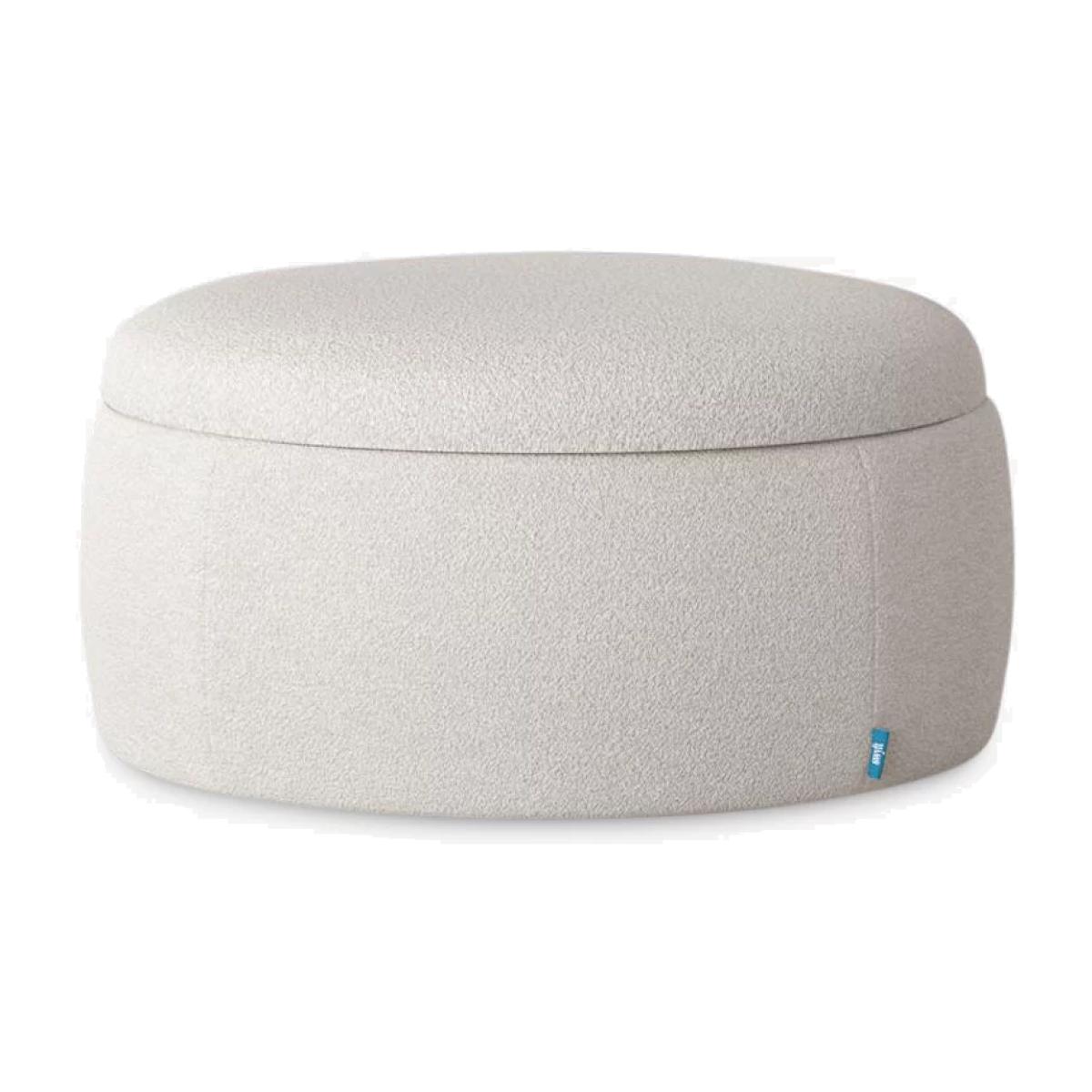 Product Information Say goodbye to less-than-beautiful storage solutions with Swyft's Storage 01.Designed in a round shape it has a comfortable foam top for solo sitting, or for those well-deserved feet-up moments. Inside, you’ll find a sturdy hardwood and solid beech frame that’s made to last, with a soft fabric lining. About Swyft's fabric optionsAll inherently durable and resilient to everyday life, the boucles, wools, chenilles, and soft linens offer a softer, more textured option. The velvets, linens, suedes, and cottons are all made with stain-resistant threads so you don't need to worry about your clumsy friend, over-excited child or boisterous pet making a mess. About Swyft's Eco-VelvetsThese fabrics are woven from 100% recycled polyester and are GRS (Global Recycled Standard) certified. The yarns are extruded from post-consumer PET bottles, repurposing thousands of plastic bottles that would otherwise end up in the ocean or landfill. These fabrics are also OEKO-TEX 100 certified, meaning they've been thoroughly tested beyond national and international requirements to ensure all components are fully free from any substances which may be harmful to human health. Those are some pretty impressive conditions, but they still perform as you would expect from velvets as they're durable yet have that soft matt touch with a plush dense pile. Delivered in a boxNo matter how tight your entry space, or how many flights of stairs you need to contend with, Swyft sofas are easily delivered as they will come in a box that can be lifted by one person, or a series of boxes depending on the size. It'll take some assembly when it gets to you, but it does mean you don't need to worry about the logistics of actually getting your new sofa into your home. And you won't need any tools as every Swyft product uses the innovative Swyft-lok mechanism which makes assembly quick and easy. Try before you buyWe're confident in our furniture's quality, but it's always a good idea to check that it's a good personal fit for you. Measuring Up for Furniture Guide Upholstery Care Guide