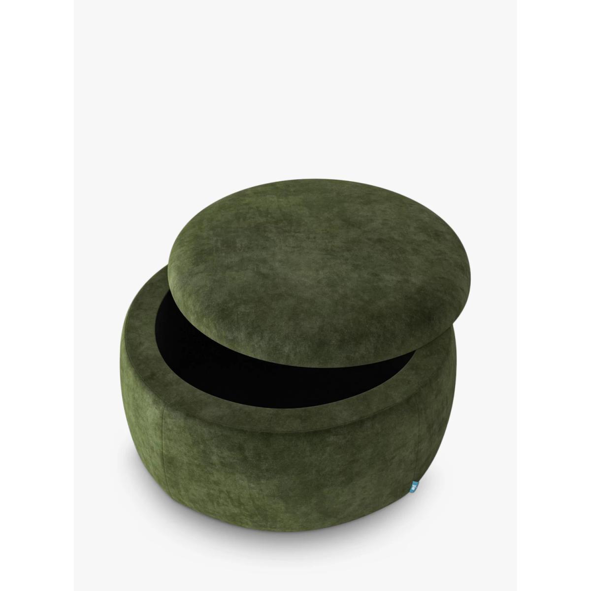 Product Information Say goodbye to less-than-beautiful storage solutions with Swyft's Storage 01.Designed in a round shape it has a comfortable foam top for solo sitting, or for those well-deserved feet-up moments. Inside, you’ll find a sturdy hardwood and solid beech frame that’s made to last, with a soft fabric lining. About Swyft's fabric optionsAll inherently durable and resilient to everyday life, the boucles, wools, chenilles, and soft linens offer a softer, more textured option. The velvets, linens, suedes, and cottons are all made with stain-resistant threads so you don't need to worry about your clumsy friend, over-excited child or boisterous pet making a mess. About Swyft's Eco-VelvetsThese fabrics are woven from 100% recycled polyester and are GRS (Global Recycled Standard) certified. The yarns are extruded from post-consumer PET bottles, repurposing thousands of plastic bottles that would otherwise end up in the ocean or landfill. These fabrics are also OEKO-TEX 100 certified, meaning they've been thoroughly tested beyond national and international requirements to ensure all components are fully free from any substances which may be harmful to human health. Those are some pretty impressive conditions, but they still perform as you would expect from velvets as they're durable yet have that soft matt touch with a plush dense pile. Delivered in a boxNo matter how tight your entry space, or how many flights of stairs you need to contend with, Swyft sofas are easily delivered as they will come in a box that can be lifted by one person, or a series of boxes depending on the size. It'll take some assembly when it gets to you, but it does mean you don't need to worry about the logistics of actually getting your new sofa into your home. And you won't need any tools as every Swyft product uses the innovative Swyft-lok mechanism which makes assembly quick and easy. Try before you buyWe're confident in our furniture's quality, but it's always a good idea to check that it's a good personal fit for you. Measuring Up for Furniture Guide Upholstery Care Guide