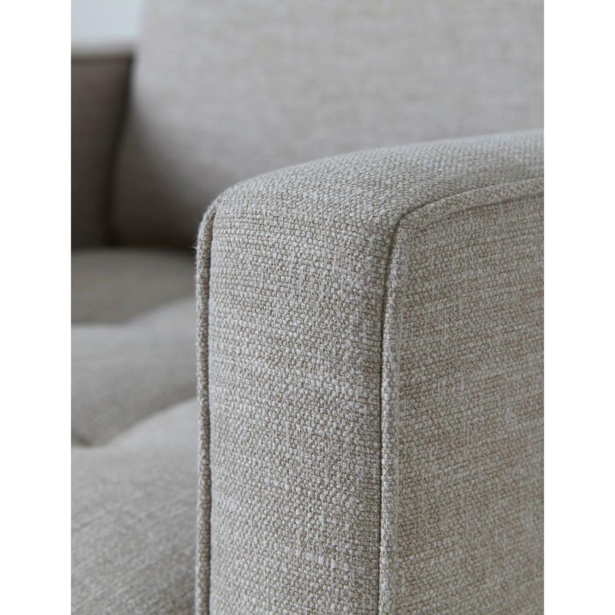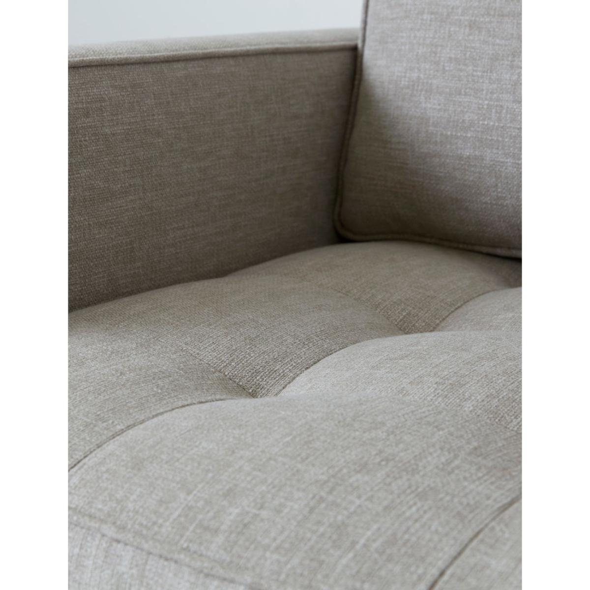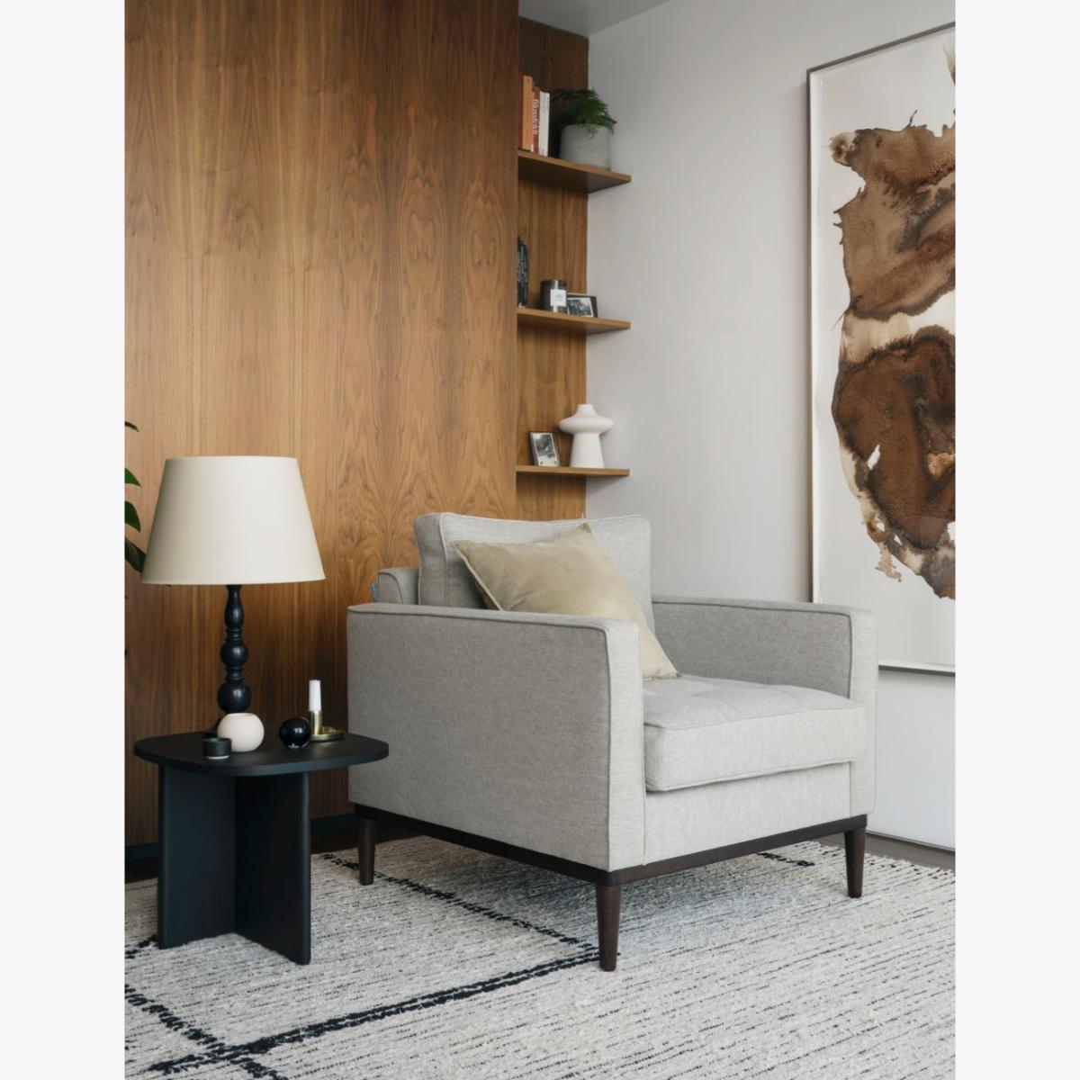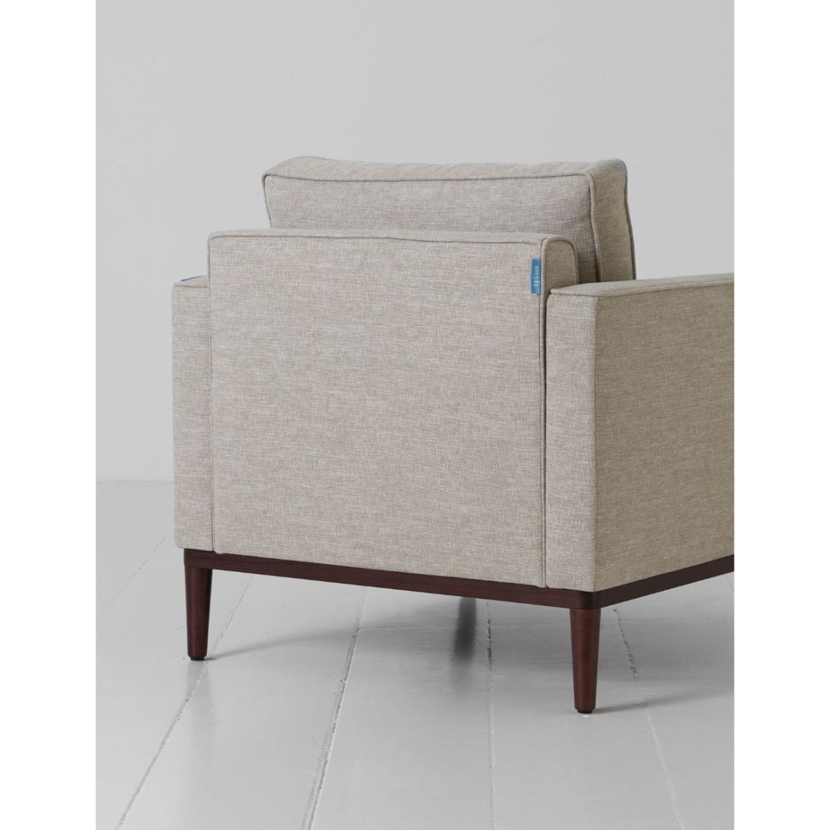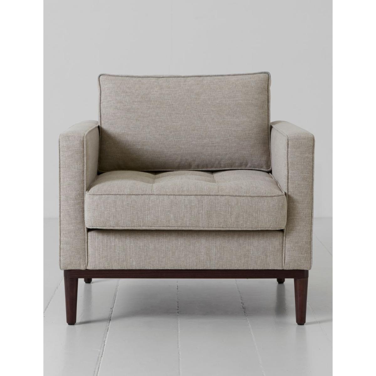 I love this armchair for its clean lines and versatile style, making it a great addition to both modern and Scandinavian-inspired interiors. Its neutral fabric can be easily styled with colourful cushions or throws to add personality, or left understated for a minimalist look. This piece works particularly well in living rooms, reading nooks, or even home offices. Practical styling tips include pairing it with a soft rug to create a cosy zone or placing it opposite a coffee table for a functional seating area. Its subtle elegance and approachable silhouette make it a reliable choice for various schemes, adding comfort without overpowering the space.