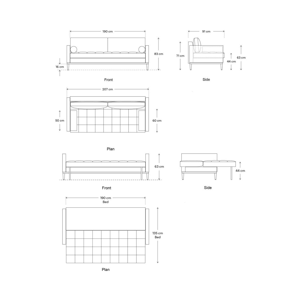 Product Information Transform your lounge into a guest room in seconds. The Model 02 sofa bed is everything you love about mid-century sofa design. Yet, it's a sofa bed. As comfortable as the Model 02 sofa, and with the same pulled-seam and piped detailing, bolster cushions, and solid wood plinth, it doesn't compromise on style either. Thicker than a normal sofa bed, the 7-inch mattress is a mix of pocket springs and foam and folds out to a fully-sized UK double bed. A dream-worthy combination that is ideal for cosy movie nights or unexpected guests. Moulds to the body, snaps back to shapeThis sofa bed has a foam mattress. The foam acts like springs, moulding to the body for a supported sleep, but returning to the mattress's original shape when not in use. Owing to variations in computer screen resolution and settings, the fabric you receive may look slightly different to how it appears here. Prior to purchasing, we strongly recommend that you are order a free sample online. About Swyft's fabric optionsAll inherently durable and resilient to everyday life, the boucles, wools, chenilles, and soft linens offer a softer, more textured option. The velvets, linens, suedes, and cottons are all made with stain-resistant threads so you don't need to worry about your clumsy friend, over-excited child or boisterous pet making a mess. Try before you buyWe're confident in our furniture's quality, but it's always a good idea to check that it's a good personal fit for you. Working in partnership with ClearabeeIf you need help disposing of your old sofa when ordering a new one we have teamed up with Clearabee to offer a convenient and cost effective solution, diverting 100% of products from landfill*. Find out more by visiting our Clearabee partner page below. *Products will be exited via energy from waste exit routes and diverted from landfill in compliance with regulations. Measuring Up for Furniture Guide Sofas, Sofa Beds & Chairs Buying Guide Upholstery Care Guide Clearabee Sofa Collection Service