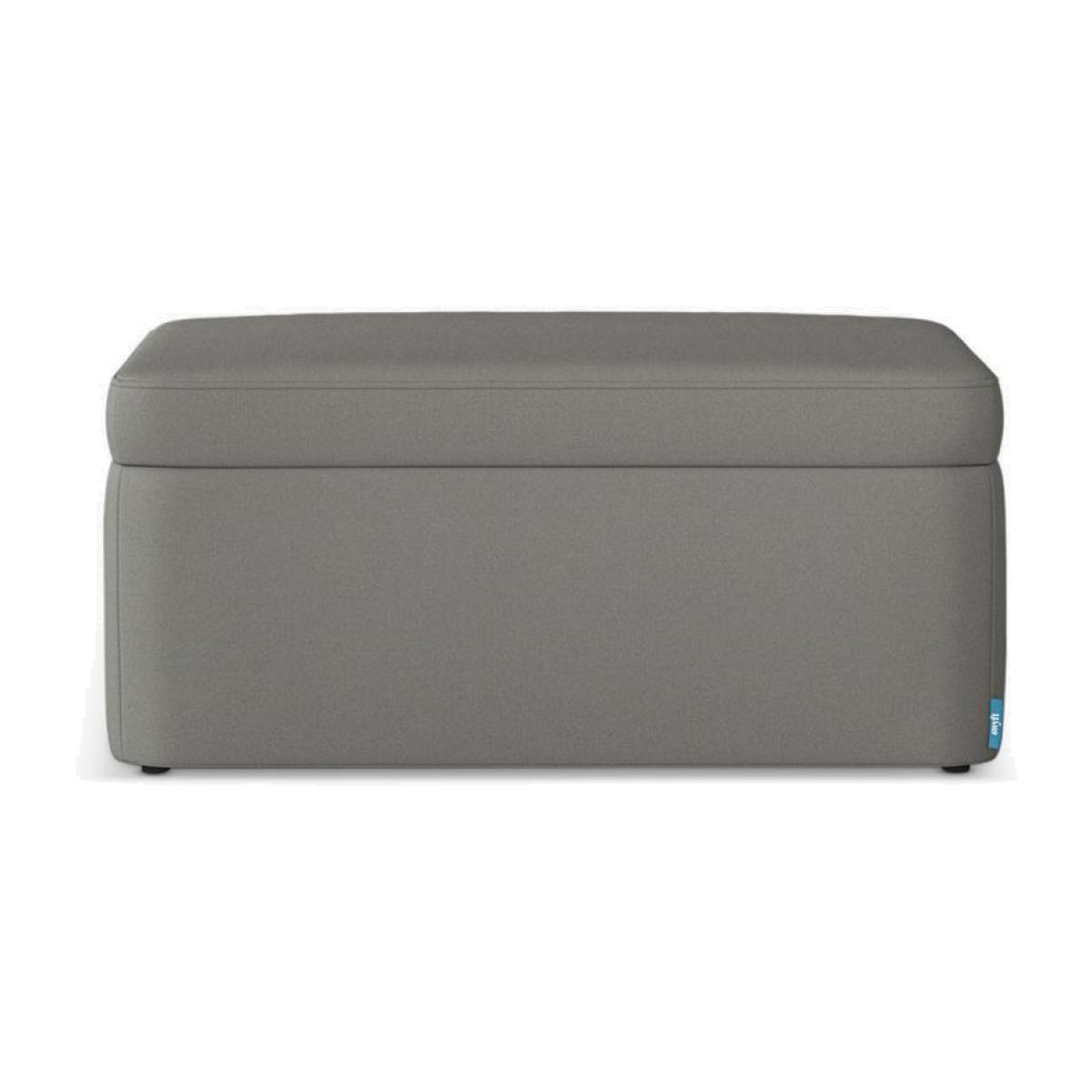 Product Information Form and function come together thanks to Swyft's Storage 02 ottoman. This practical piece doesn't compromise on looks either, with rounded edges and solid beech feet. About Swyft's fabric optionsAll inherently durable and resilient to everyday life, the boucles, wools, chenilles, and soft linens offer a softer, more textured option. The velvets, linens, suedes, and cottons are all made with stain-resistant threads so you don't need to worry about your clumsy friend, over-excited child or boisterous pet making a mess. About Swyft's Eco-VelvetsThese fabrics are woven from 100% recycled polyester and are GRS (Global Recycled Standard) certified. The yarns are extruded from post-consumer PET bottles, repurposing thousands of plastic bottles that would otherwise end up in the ocean or landfill. These fabrics are also OEKO-TEX 100 certified, meaning they've been thoroughly tested beyond national and international requirements to ensure all components are fully free from any substances which may be harmful to human health. Those are some pretty impressive conditions, but they still perform as you would expect from velvets as they're durable yet have that soft matt touch with a plush dense pile. Delivered in a boxNo matter how tight your entry space, or how many flights of stairs you need to contend with, Swyft sofas are easily delivered as they will come in a box that can be lifted by one person, or a series of boxes depending on the size. It'll take some assembly when it gets to you, but it does mean you don't need to worry about the logistics of actually getting your new sofa into your home. And you won't need any tools as every Swyft product uses the innovative Swyft-lok mechanism which makes assembly quick and easy. Try before you buyWe're confident in our furniture's quality, but it's always a good idea to check that it's a good personal fit for you. Measuring Up for Furniture Guide Upholstery Care Guide